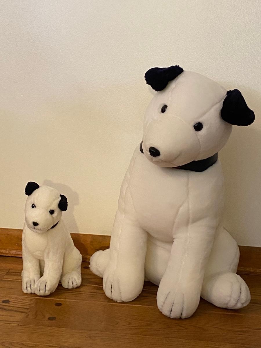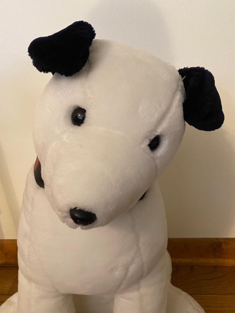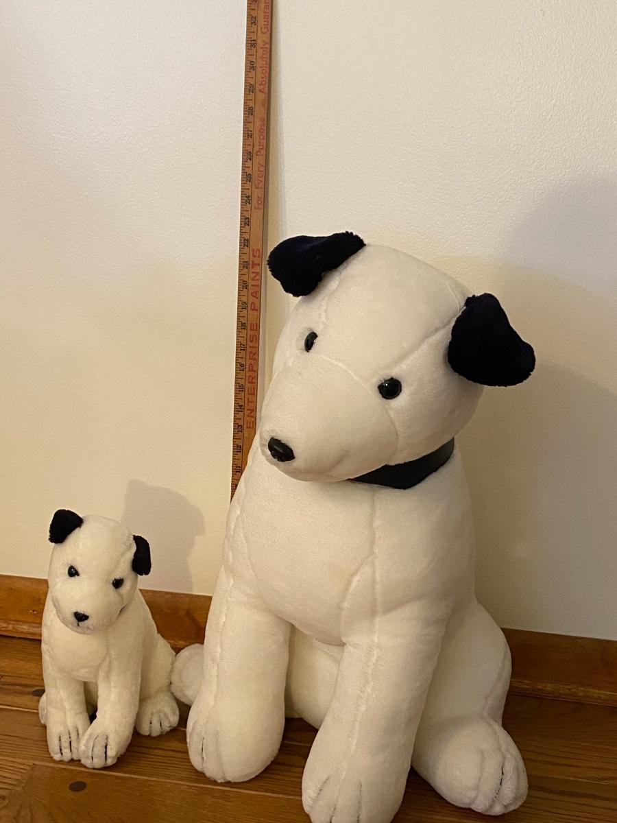 Two plush RCA dogs. Both dogs are wearing RCA collars. Big dog is over 22” high. Please see all pictures as they are the best representation of the items. The pictures show condition, measurements if taken, and what is included in the lot. Due to the large amount that we photograph and the time frame, we are not always able to take measurements. All items unless noted, are pre-owned and have been used. If you purchased furniture, you must bring help. We do not allow one person to carry large furniture out on their own. Bring help, tools and a truck for the safety of our client’s homes, and your personal safety. Company policy. Thank you.