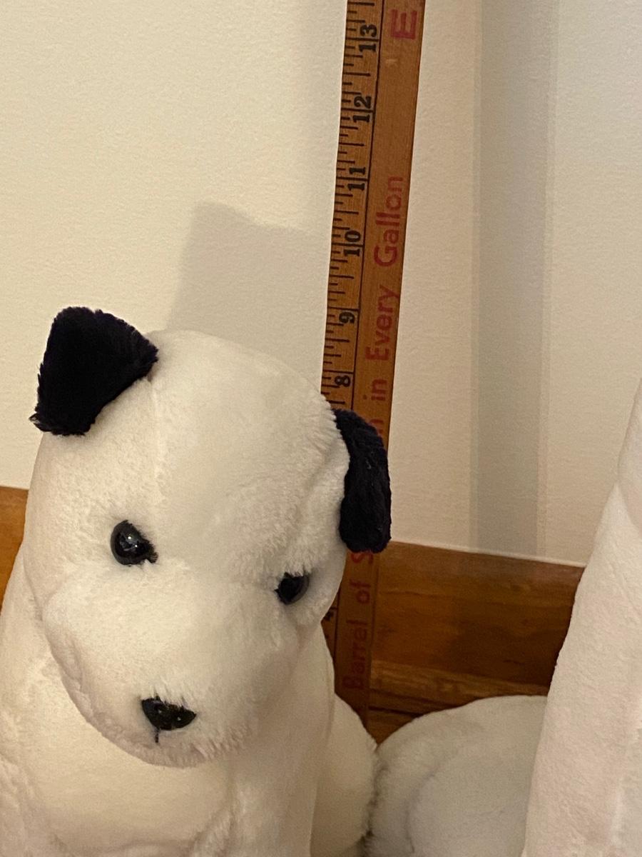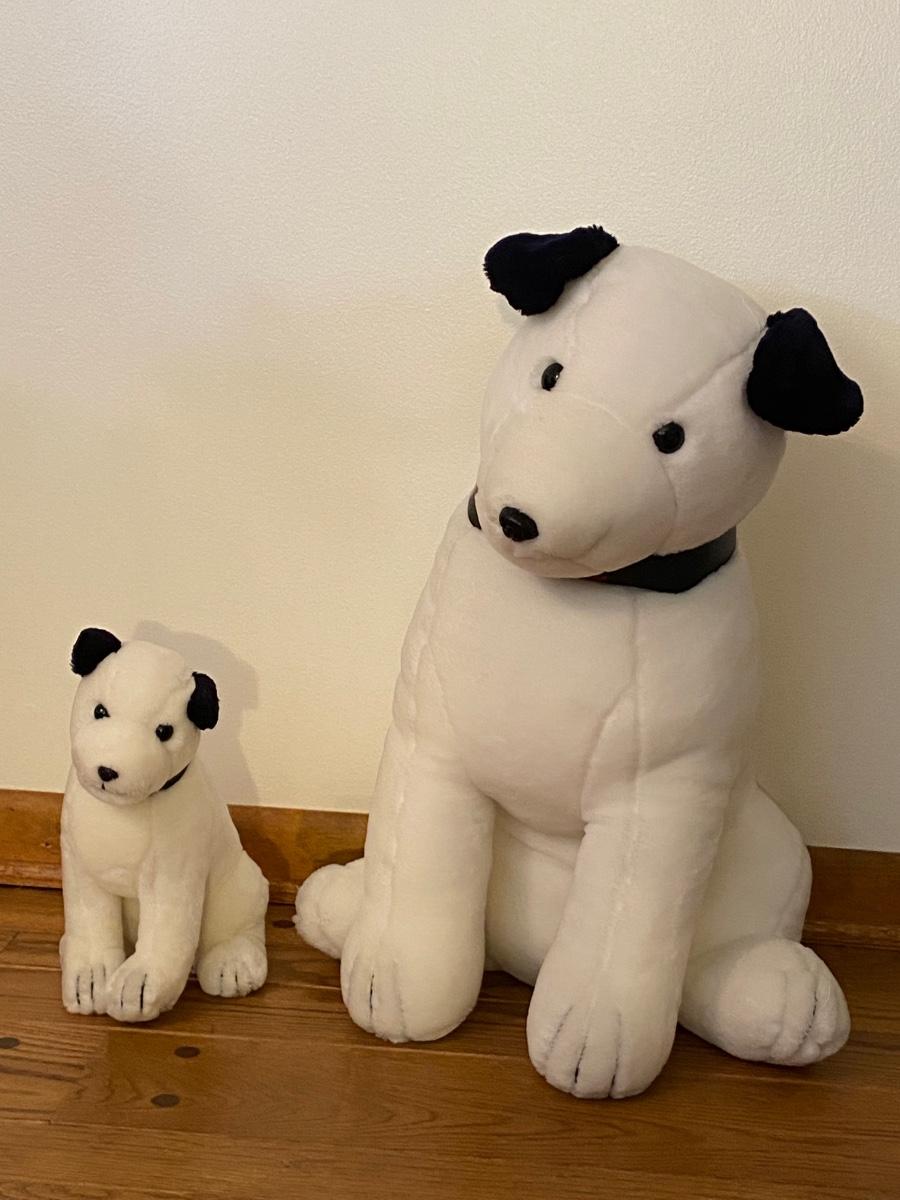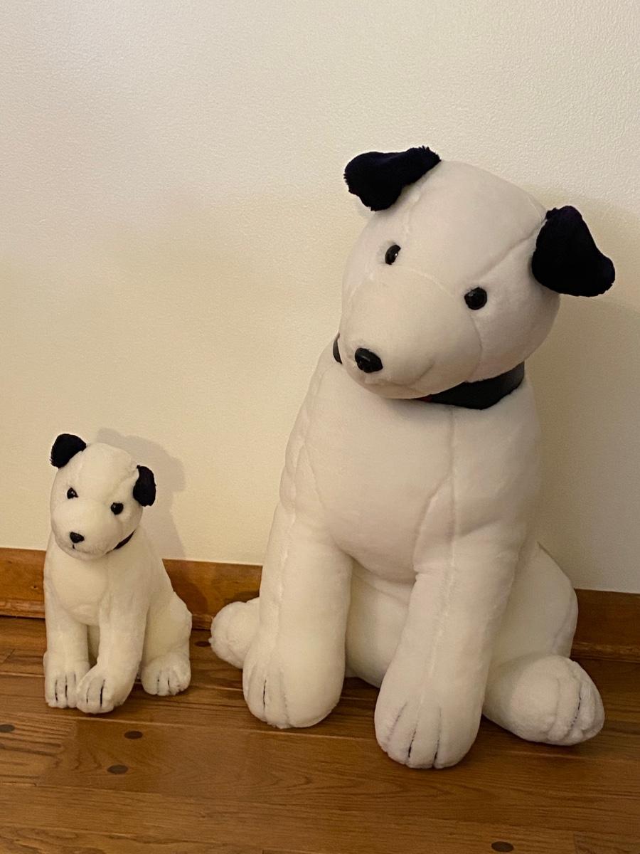 Two plush RCA dogs. Both dogs are wearing RCA collars. Big dog is over 22” high. Please see all pictures as they are the best representation of the items. The pictures show condition, measurements if taken, and what is included in the lot. Due to the large amount that we photograph and the time frame, we are not always able to take measurements. All items unless noted, are pre-owned and have been used. If you purchased furniture, you must bring help. We do not allow one person to carry large furniture out on their own. Bring help, tools and a truck for the safety of our client’s homes, and your personal safety. Company policy. Thank you.