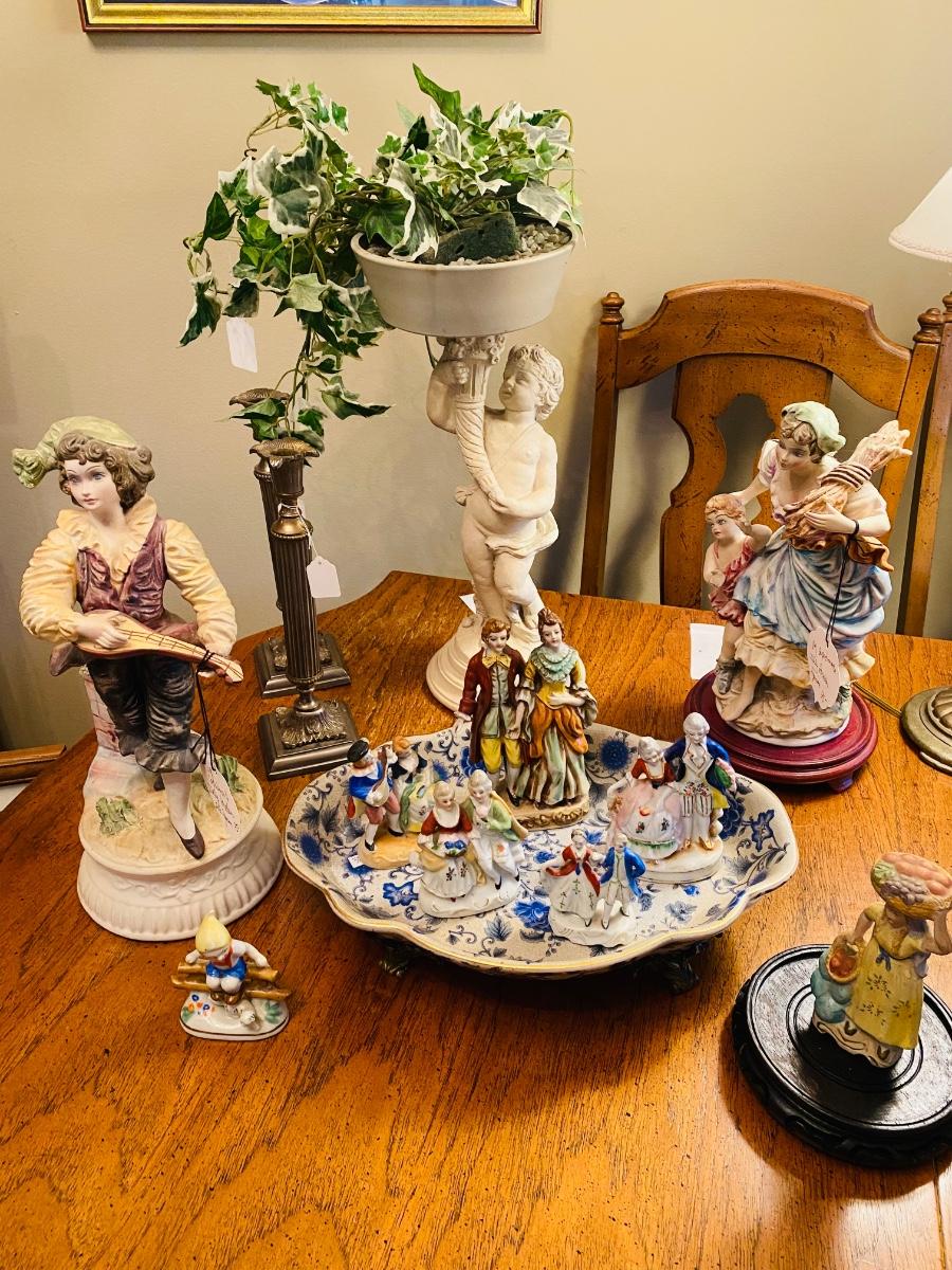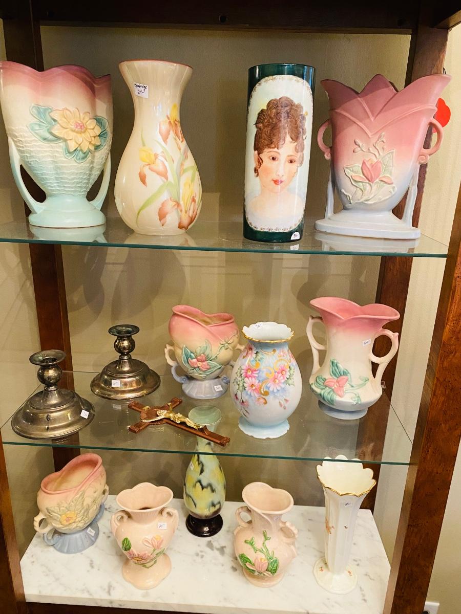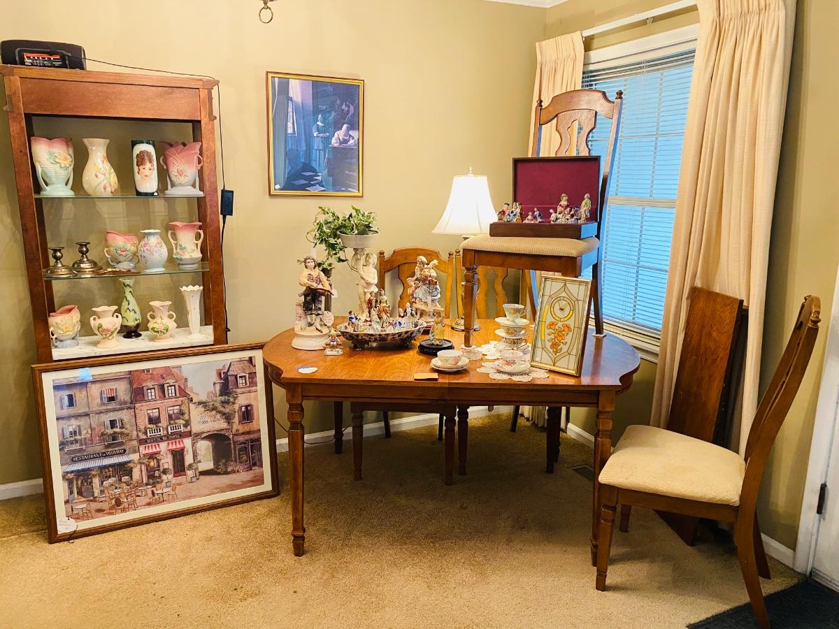 Lot 1: Dining Table, Marble Display Shelf, Collector Vases & More