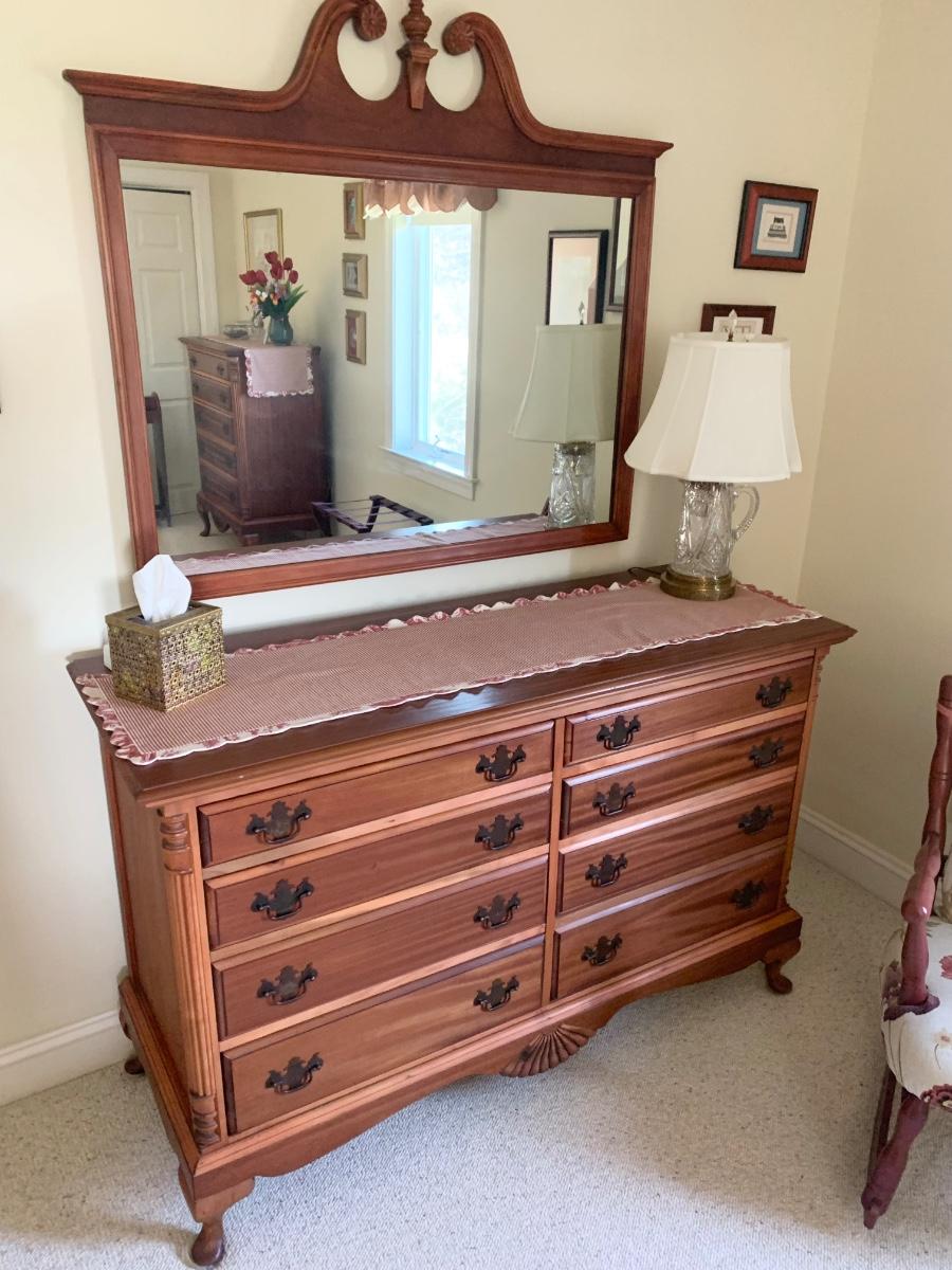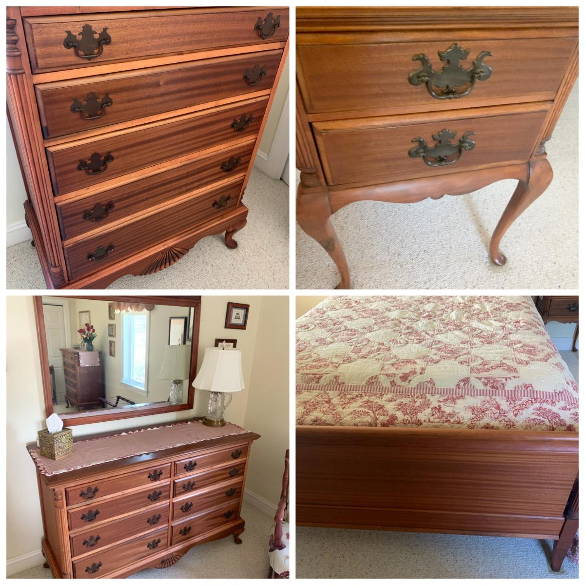 Entire set in spectacular condition. We are also including the pillows & bedding. All other items shown on furniture sold in separate lots. Bedroom set is located on second floor. Buying as is, as found in this CLEAN Estate. See MANY PHOTOS for content, condition, and measurements. NEVER a Buyer's Premium or Credit Card Fee added to your bid. Located in upstairs bedroom. Shipping available on items marked as such. Bid early to avoid any potential internet traffic near action close. Keep checking back right up until auction week as we continue to catalog this nice estate!