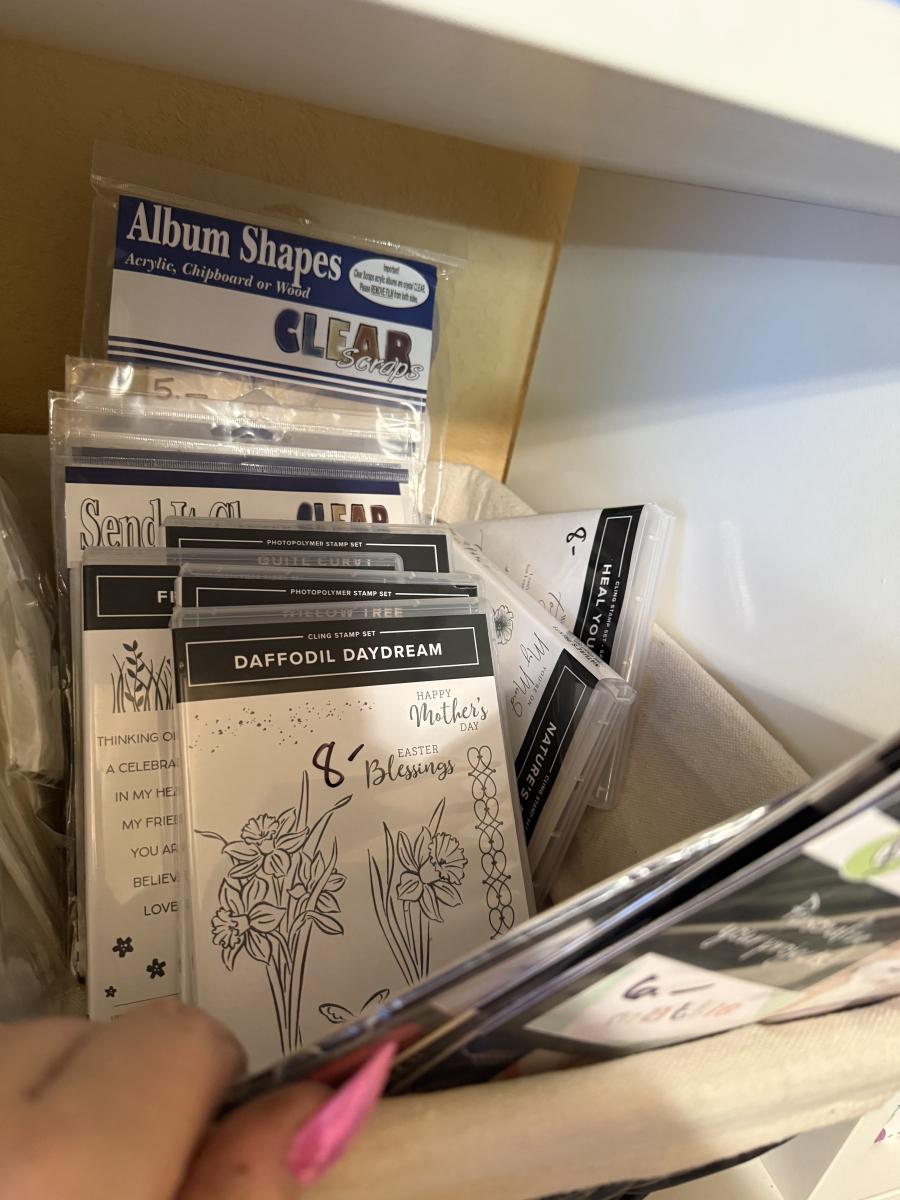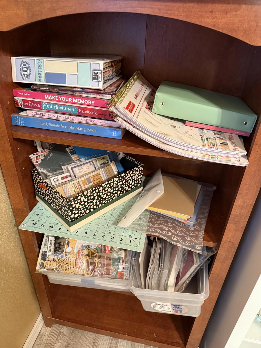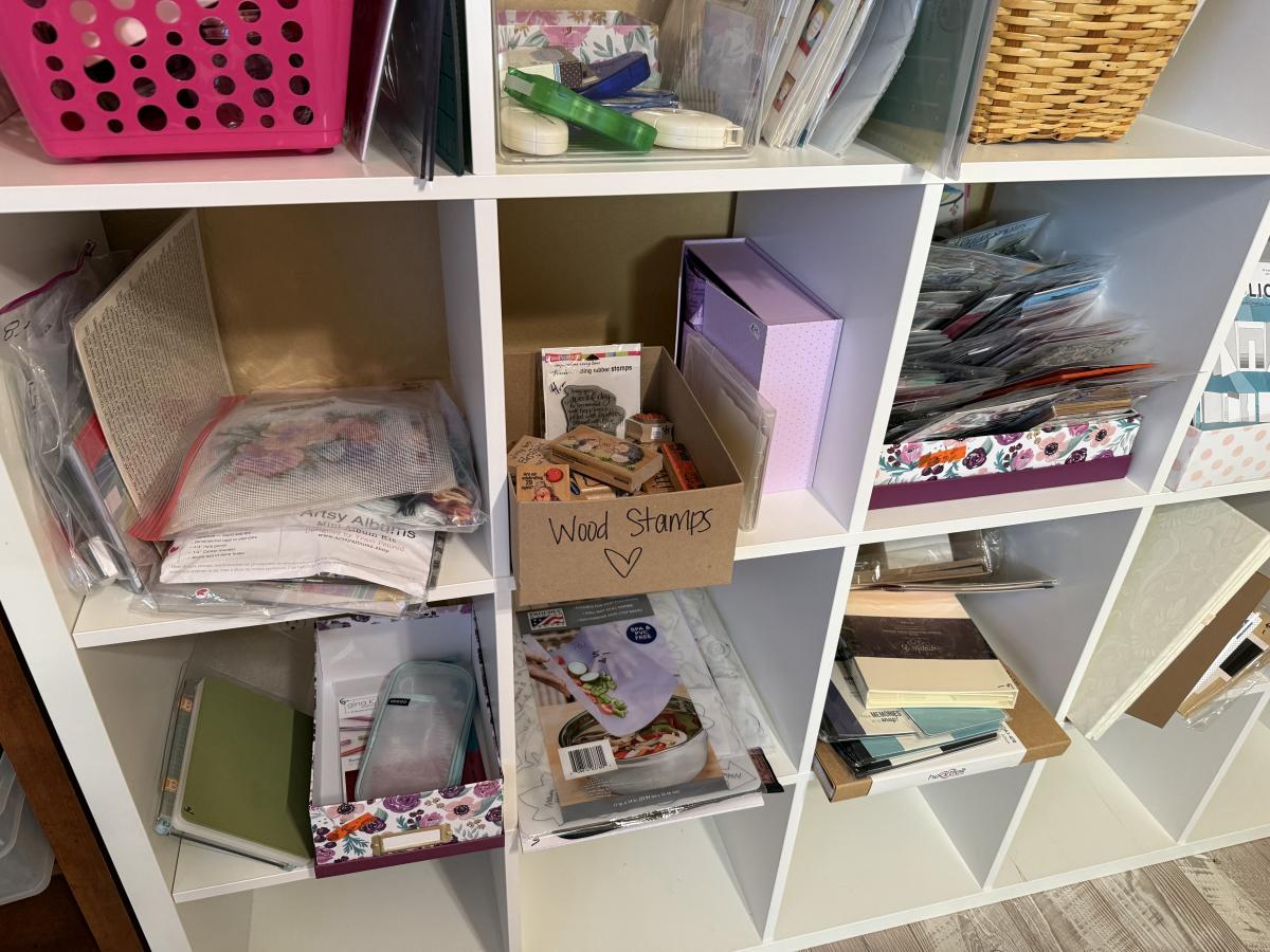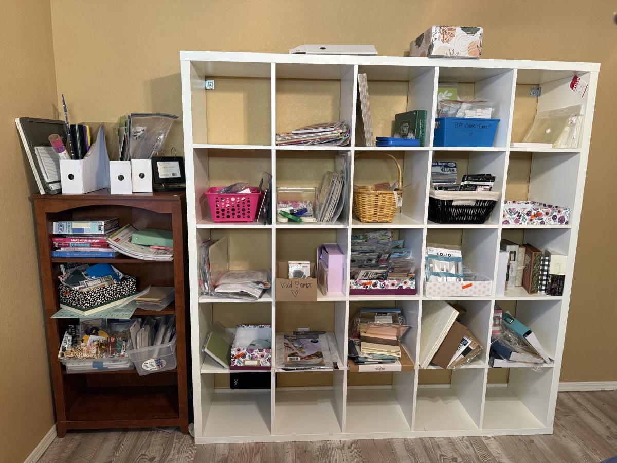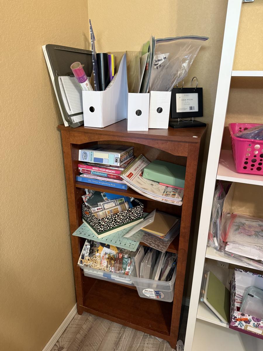 Lot 1: Craft Room / Center Wall Selection & Brown Wood Shelf