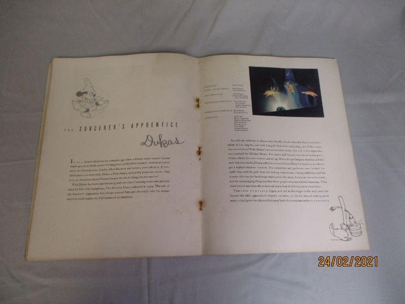 This is a behind the scenes book about the Disney movie Fantasia. There is a tear in the bottom spine and the book needs some light cleaning, but the pages are all there and there isn't any writing.