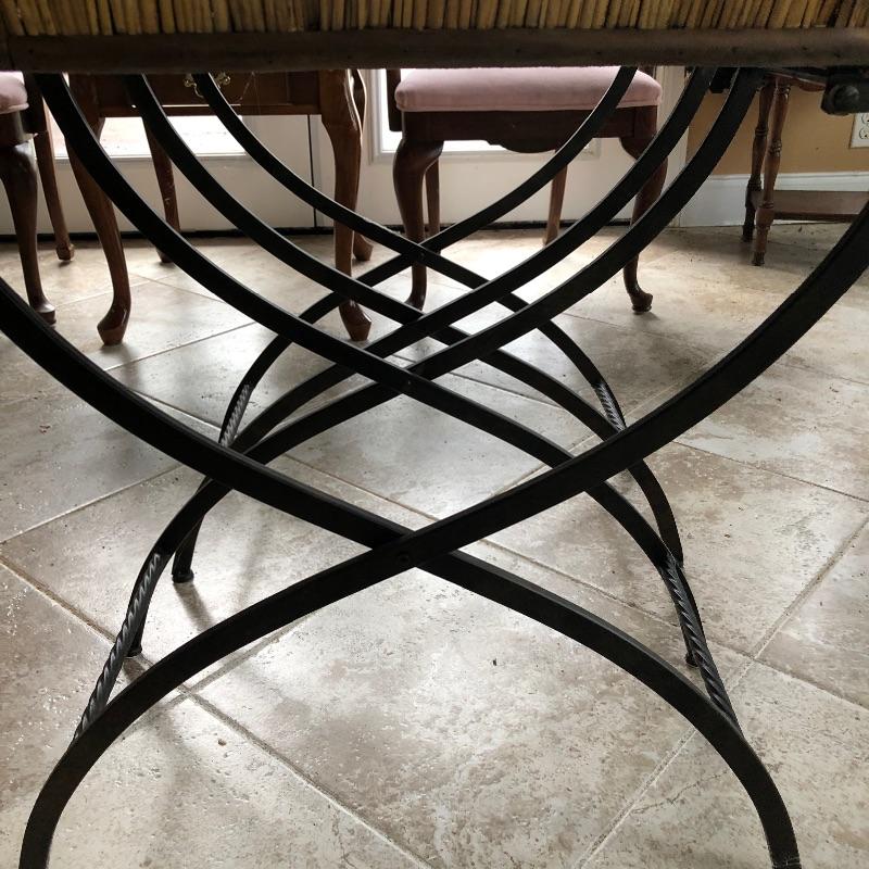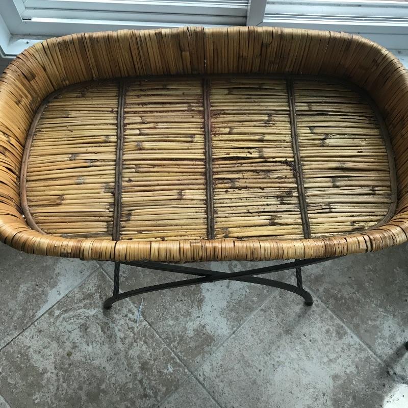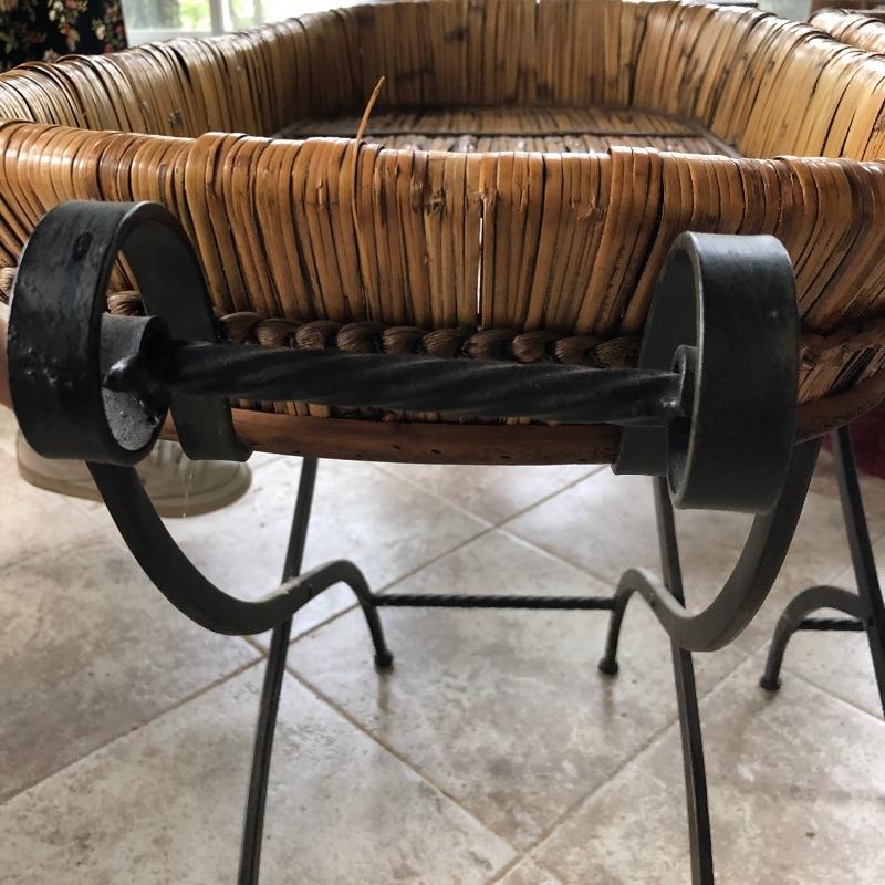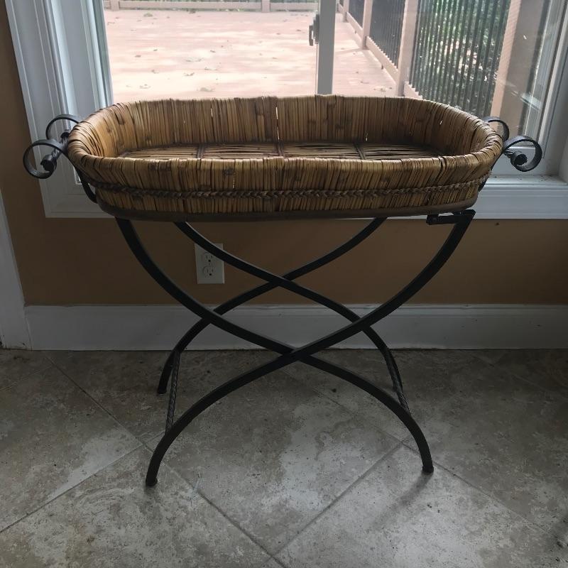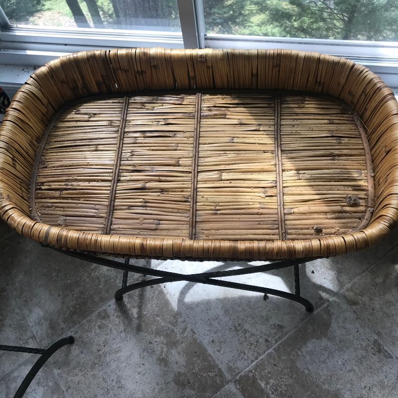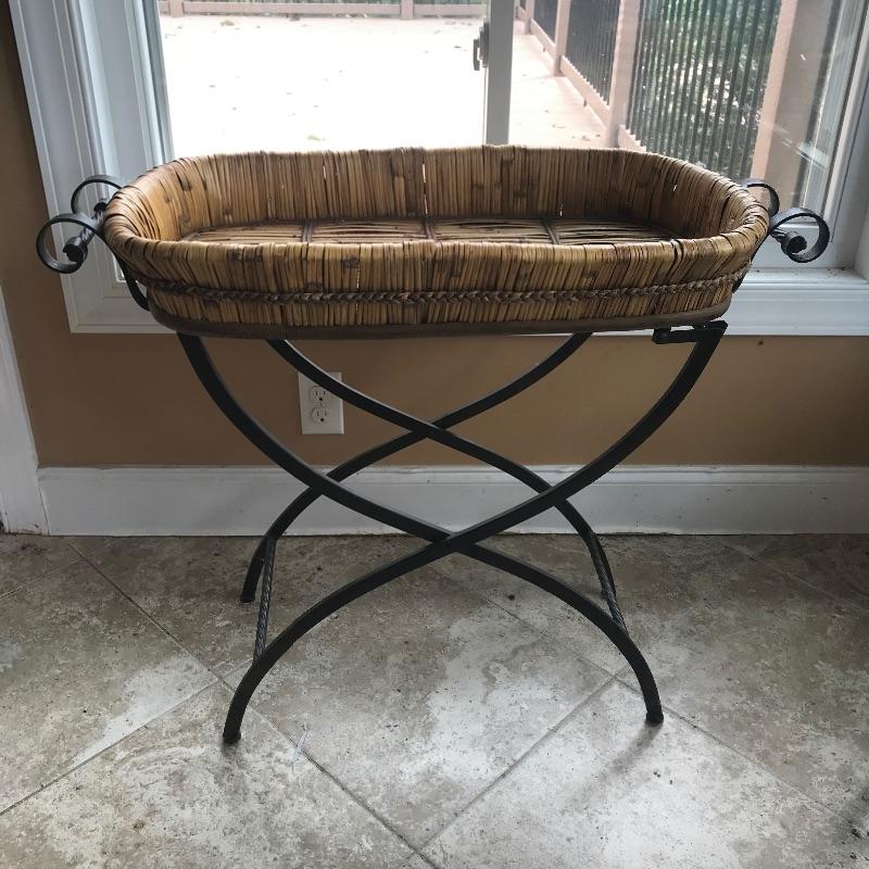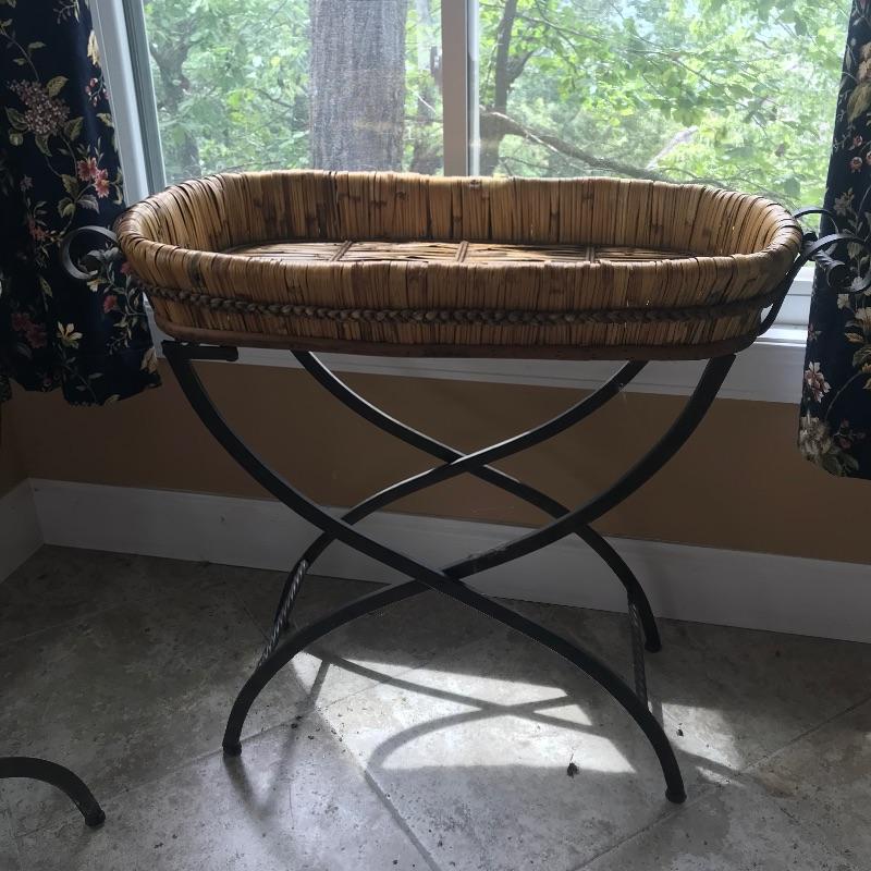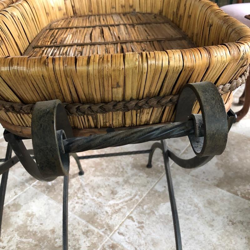 Looking for a place to display your plants? This lot has got you covered! This lot includes two flat baskets resting on light weight metal stands. One basket and tray measures about 33.5" x 28" x 16.5". The stands show a nice criss-cross design. They are fixed into place and do not fold up. Local pick up only.