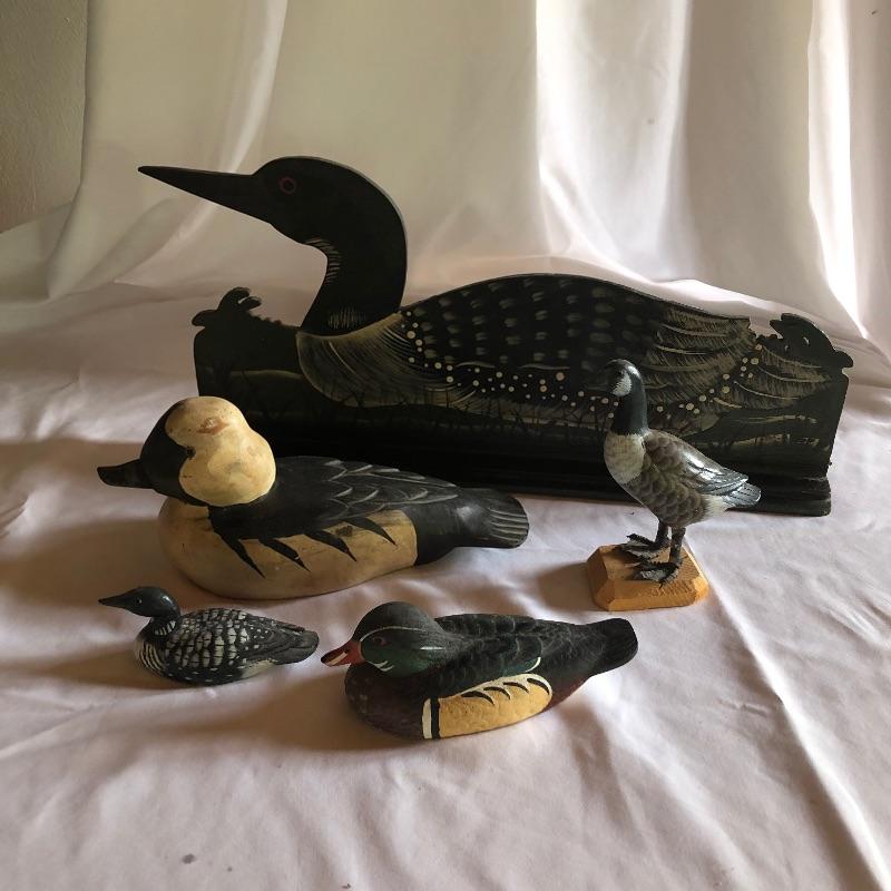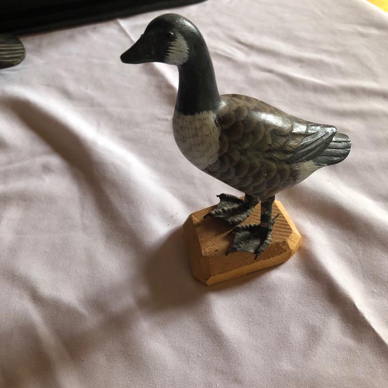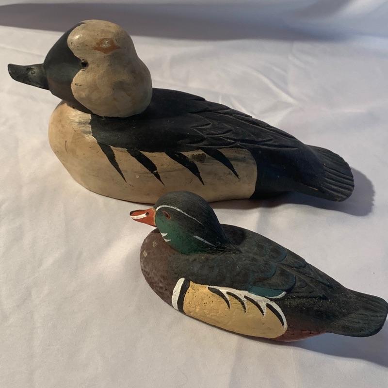 Are you an avid hunter, or just enjoy collecting duck decoys? This lot is for you! This lot contains five beautiful wooden ducks and geese, the largest (stand-up duck) measuring 17” x 6.5” x 2.5”. The mallard with the green head is signed, and the duck decoy with the white head has original glass eyes. Shipping available.