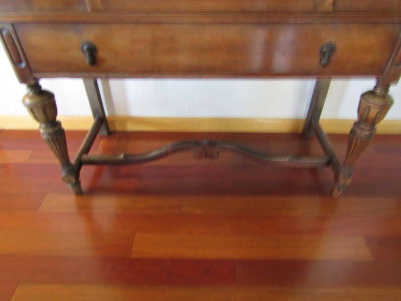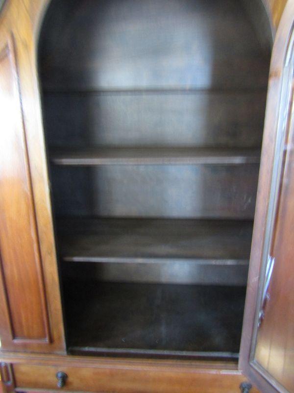 ANTIQUE CABINET WITH SHELVING AND A DRAWER.