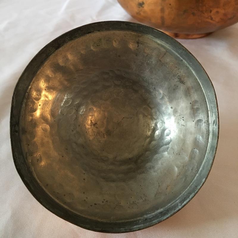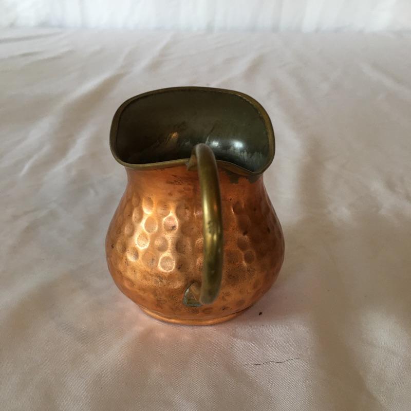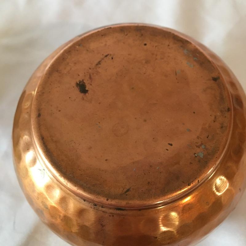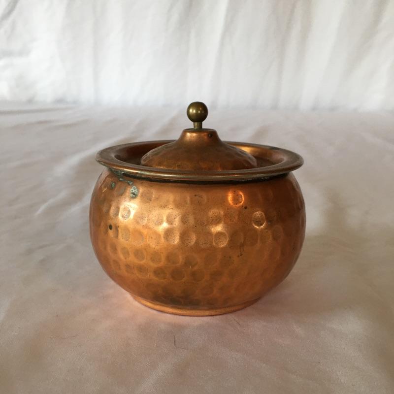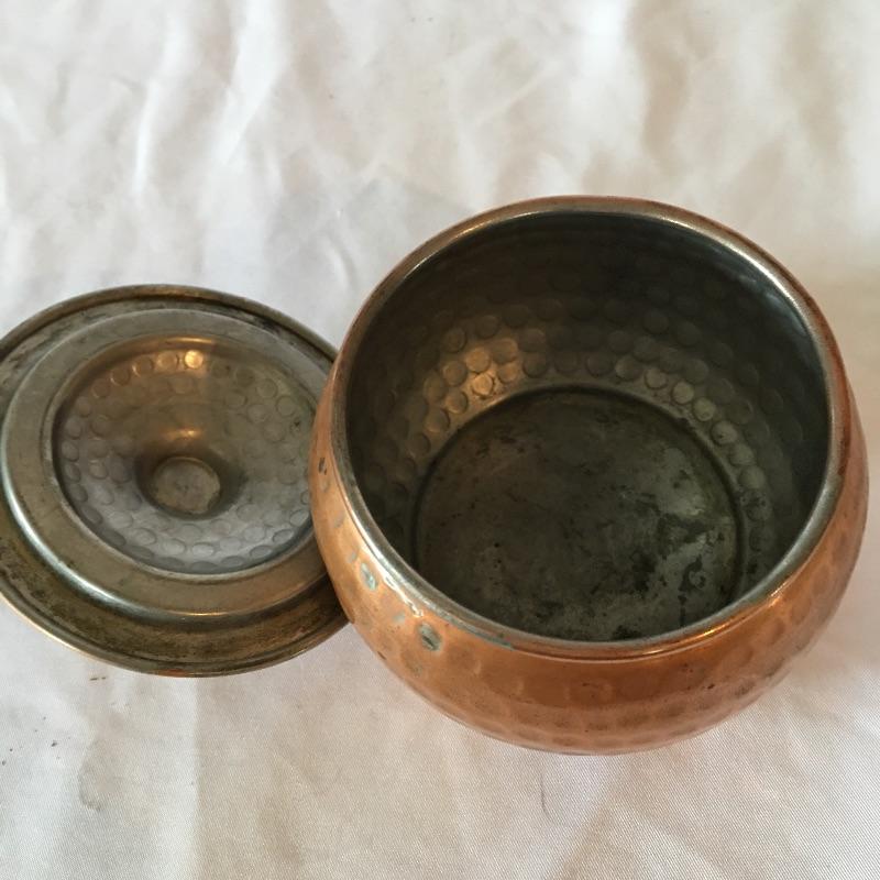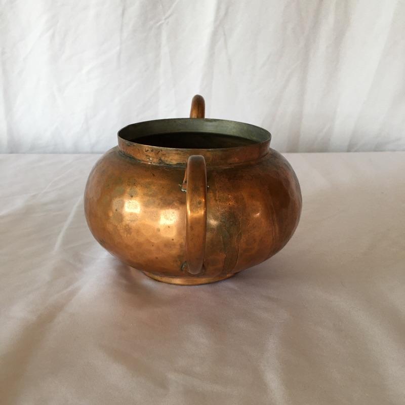 Stunning hammered copper tea set includes teapot with lid, sugar bowl with lid and creamer. All pieces are lined with tin. Get ready for a relaxing pot of tea with this stunning hammered copper tea set. Teapot measures 5.25” x 9” x 5.5”.