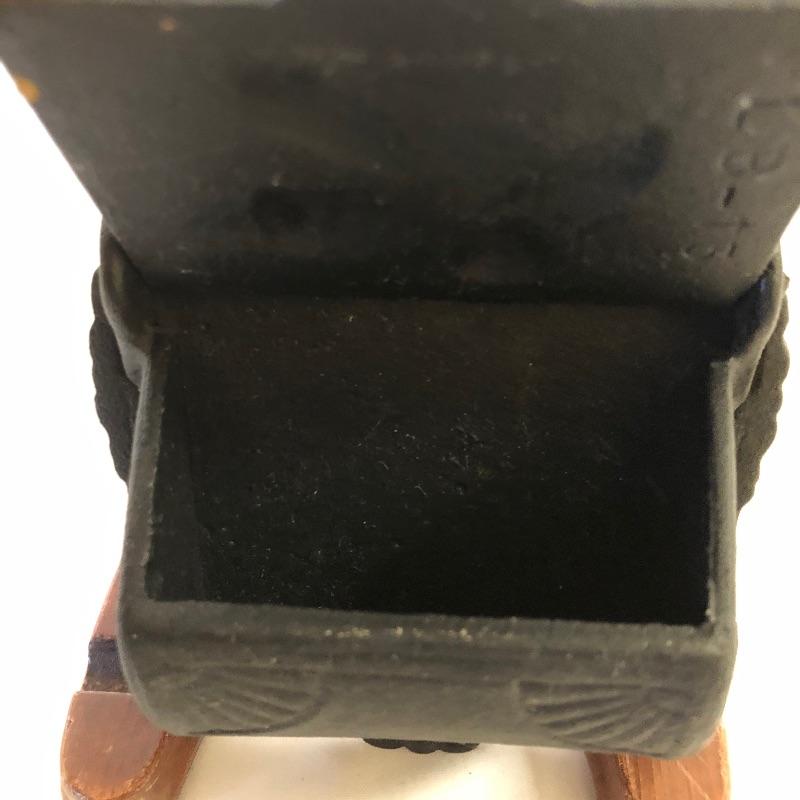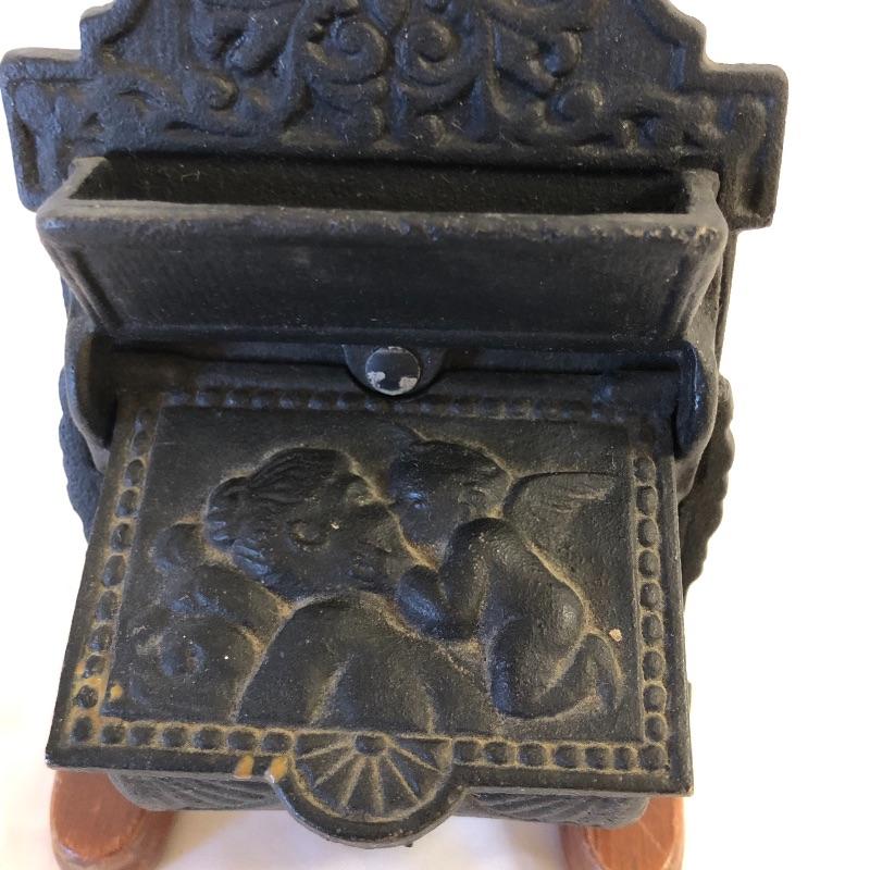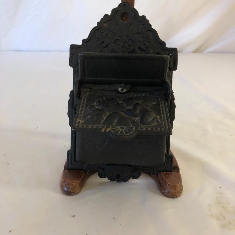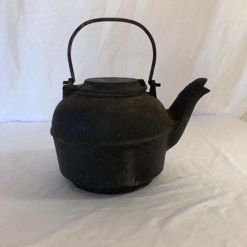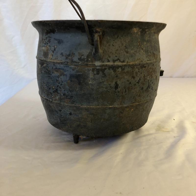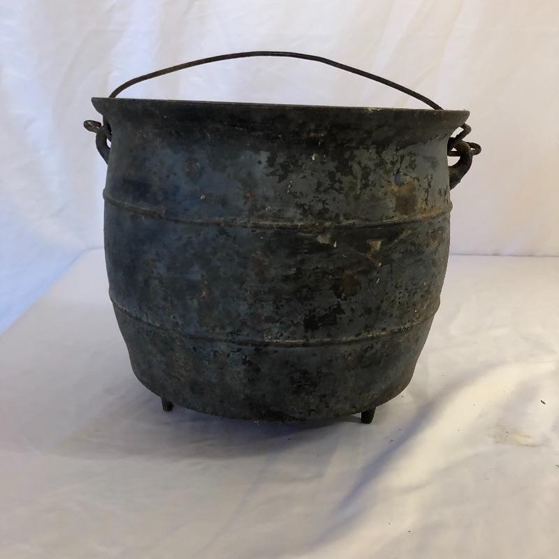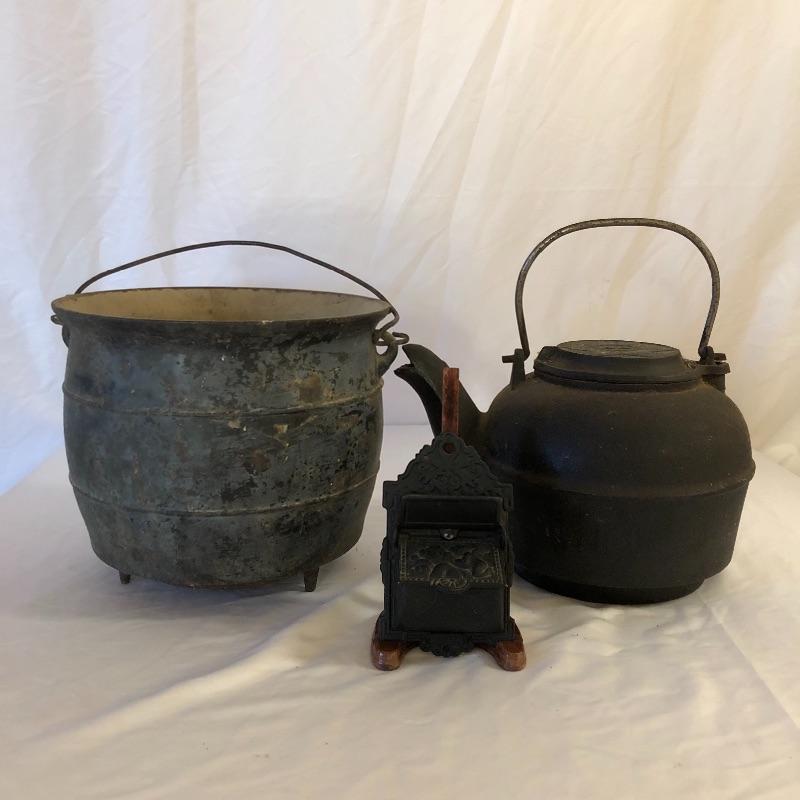 This trio of wood stove accessories includes match holder, a footed cauldron and a kettle. All three items are heavy metal. Get ready for winter with this handy trio of wood stove accessories. Cauldron measures 10.5”D x 9” tall.