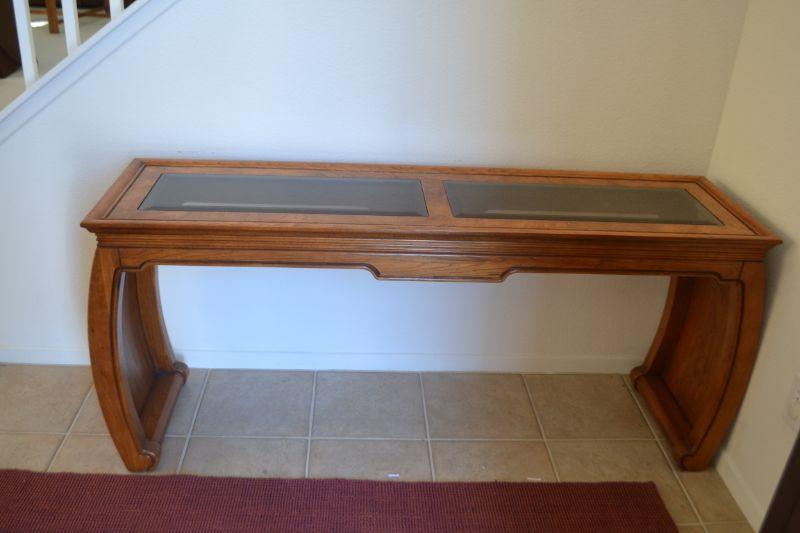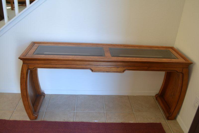 LOT 1 WOOD AND GLASS ENTRY TABLE