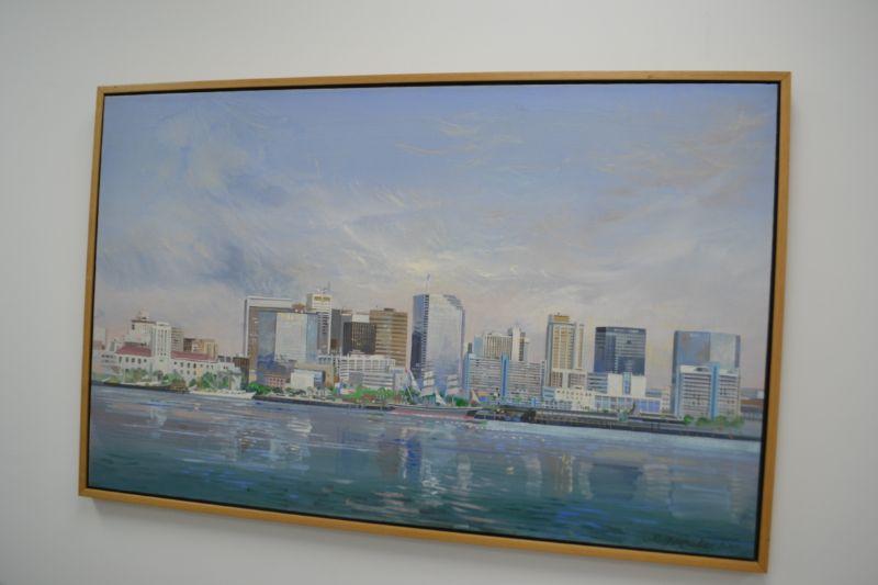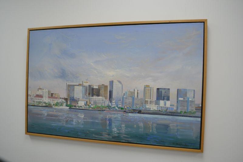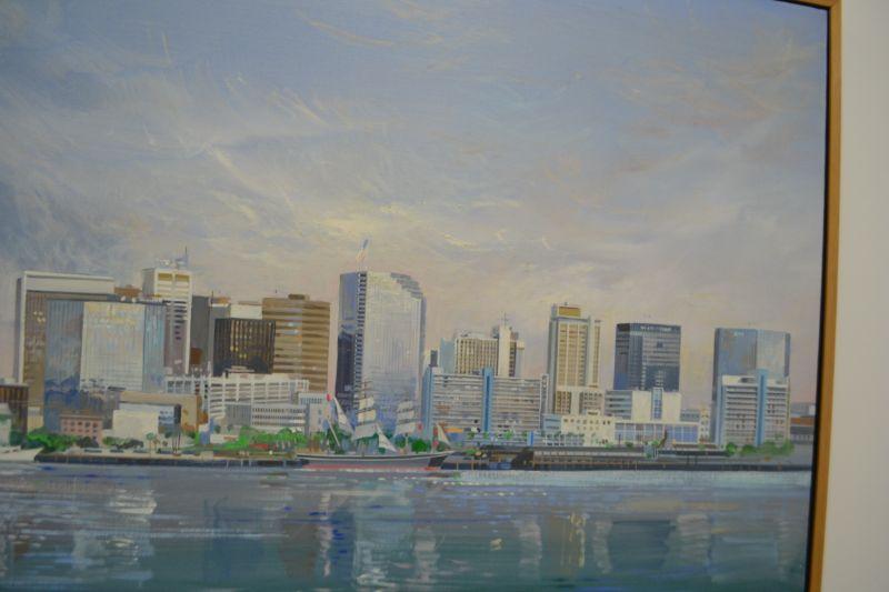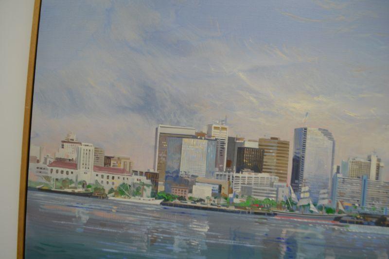 LOT 1  VINTAGE LARRY MANSKER OIL ON CANVAS SAN DIEGO SKYLINE SCENE