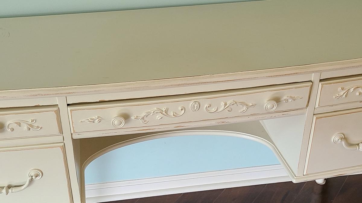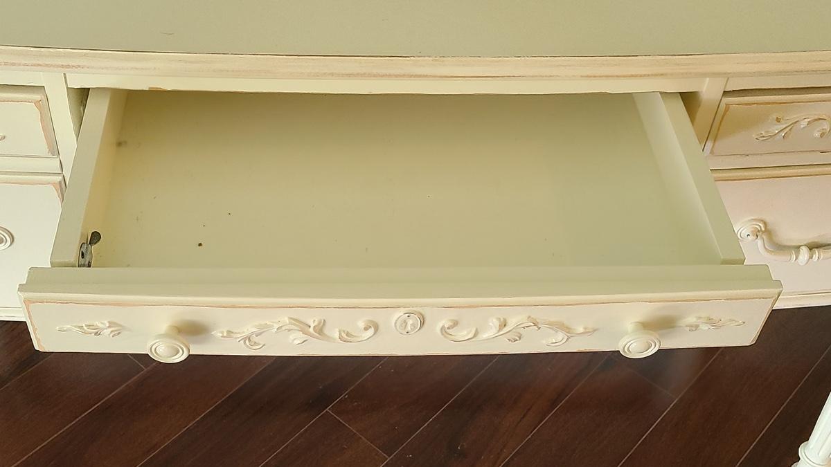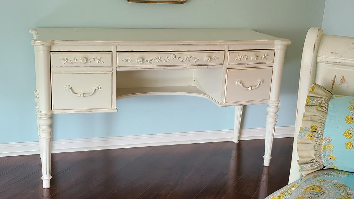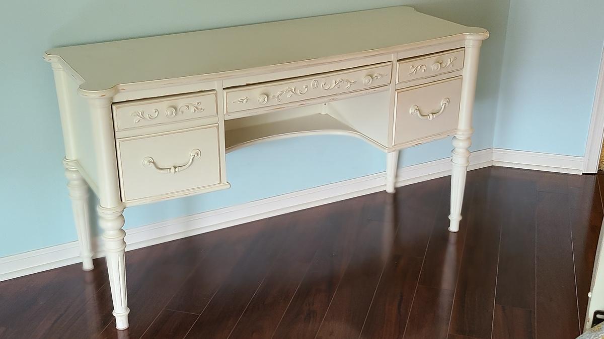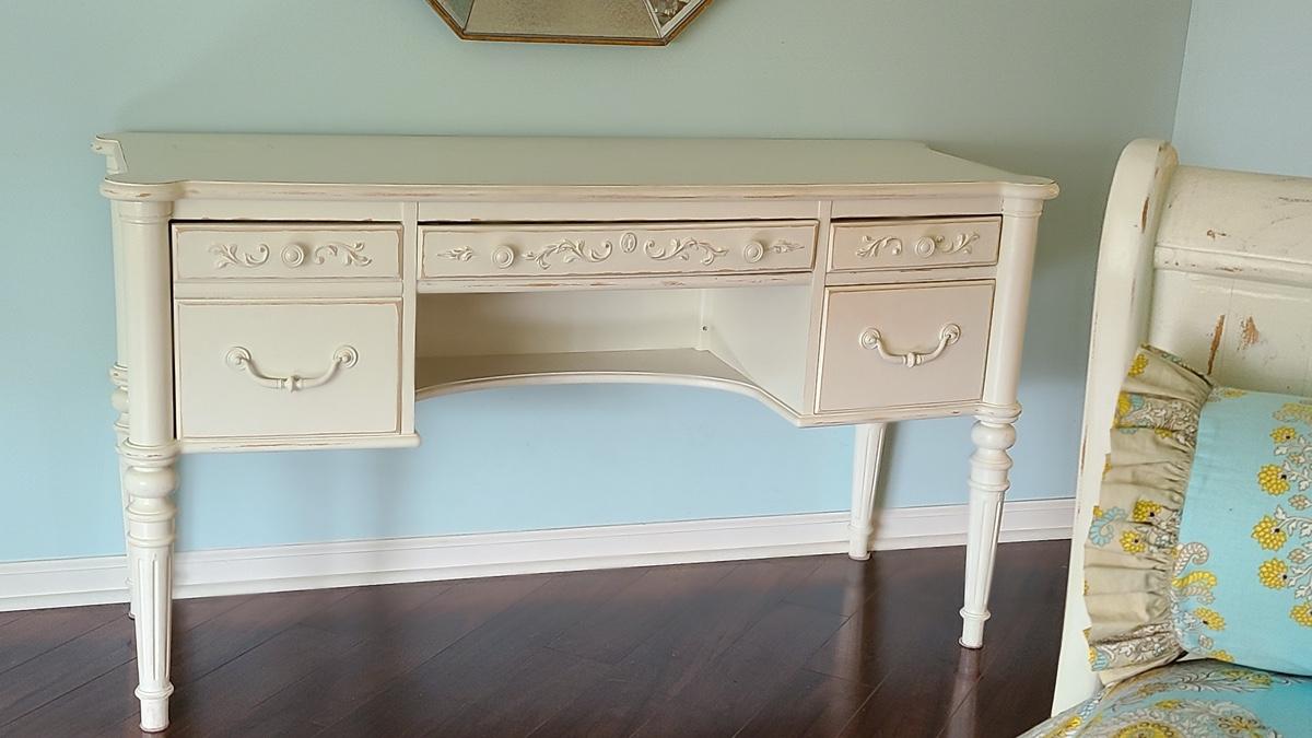 Lovely Vanity table or small desk. Please see all pictures for content of the lot, condition of the lot, and measurements if taken. Pictures are the best representation of the items listed and items are untested unless indicated in description. Thank you for looking and have fun bidding!