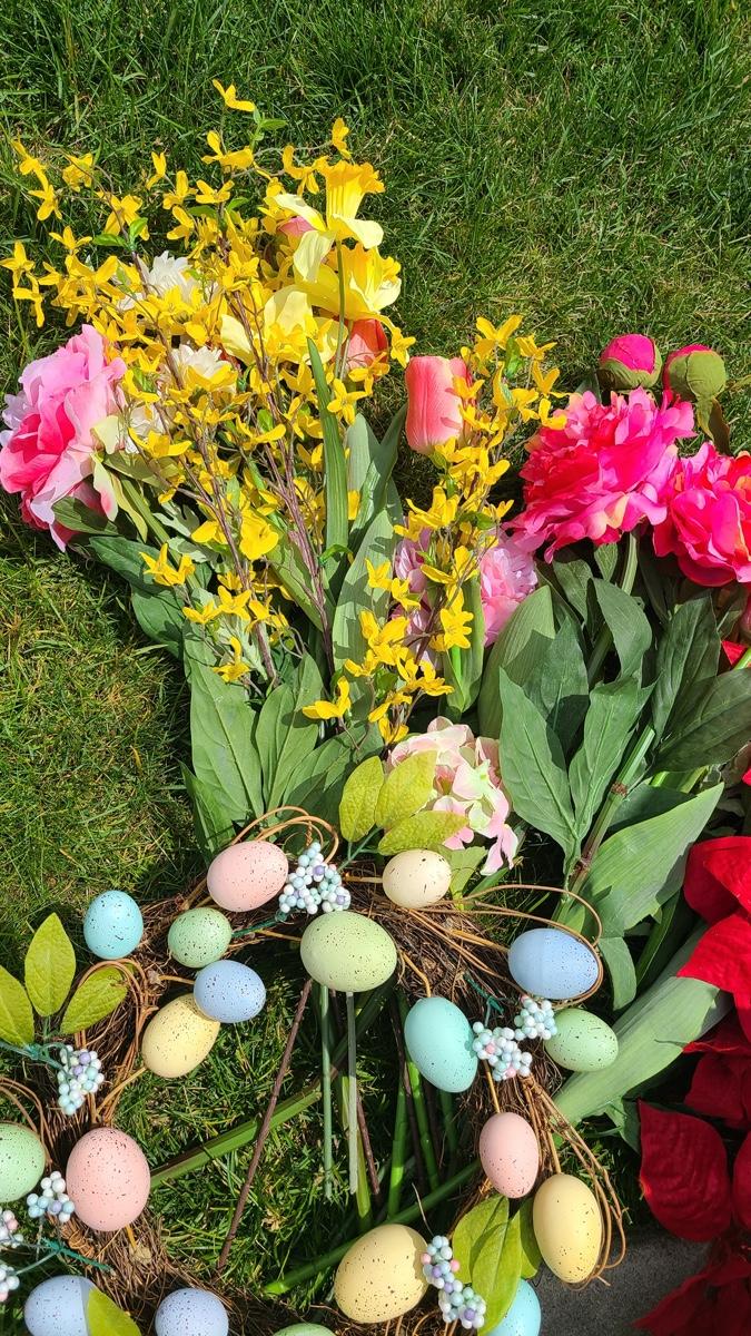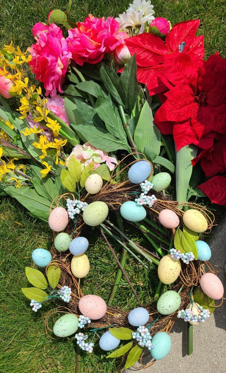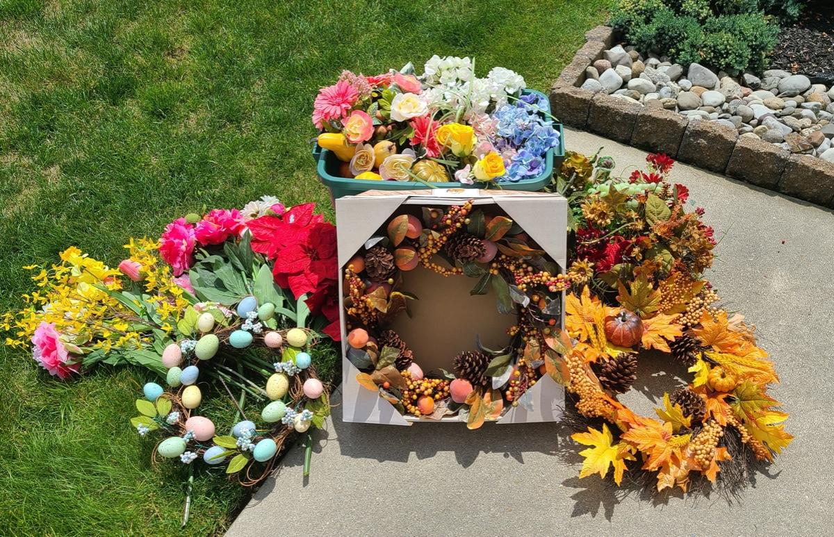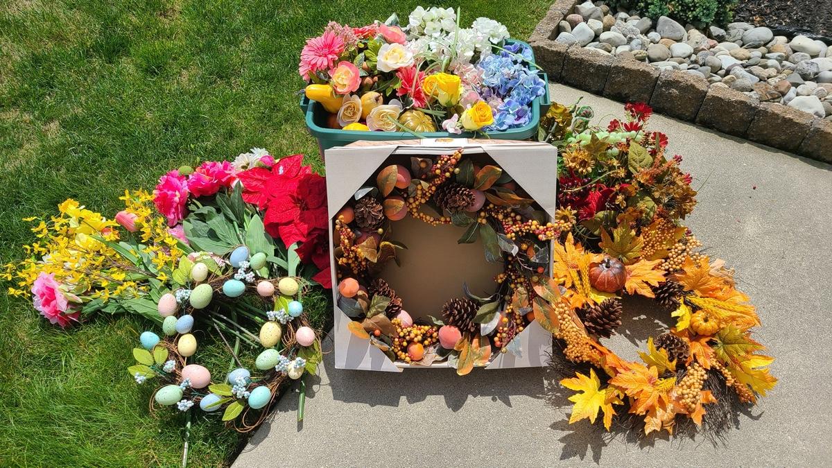 Lot 127: Holiday Wreaths, and Faux Flower Lot
