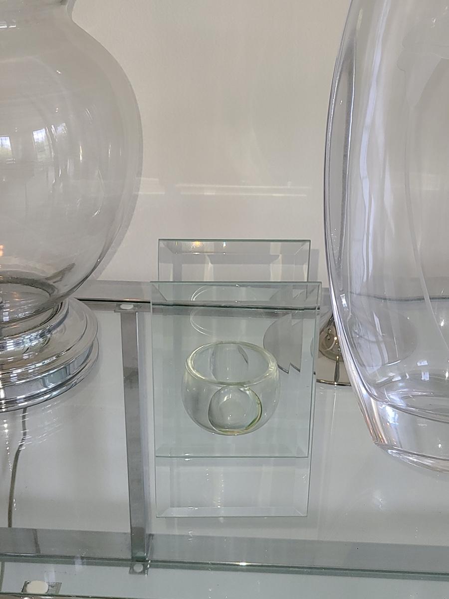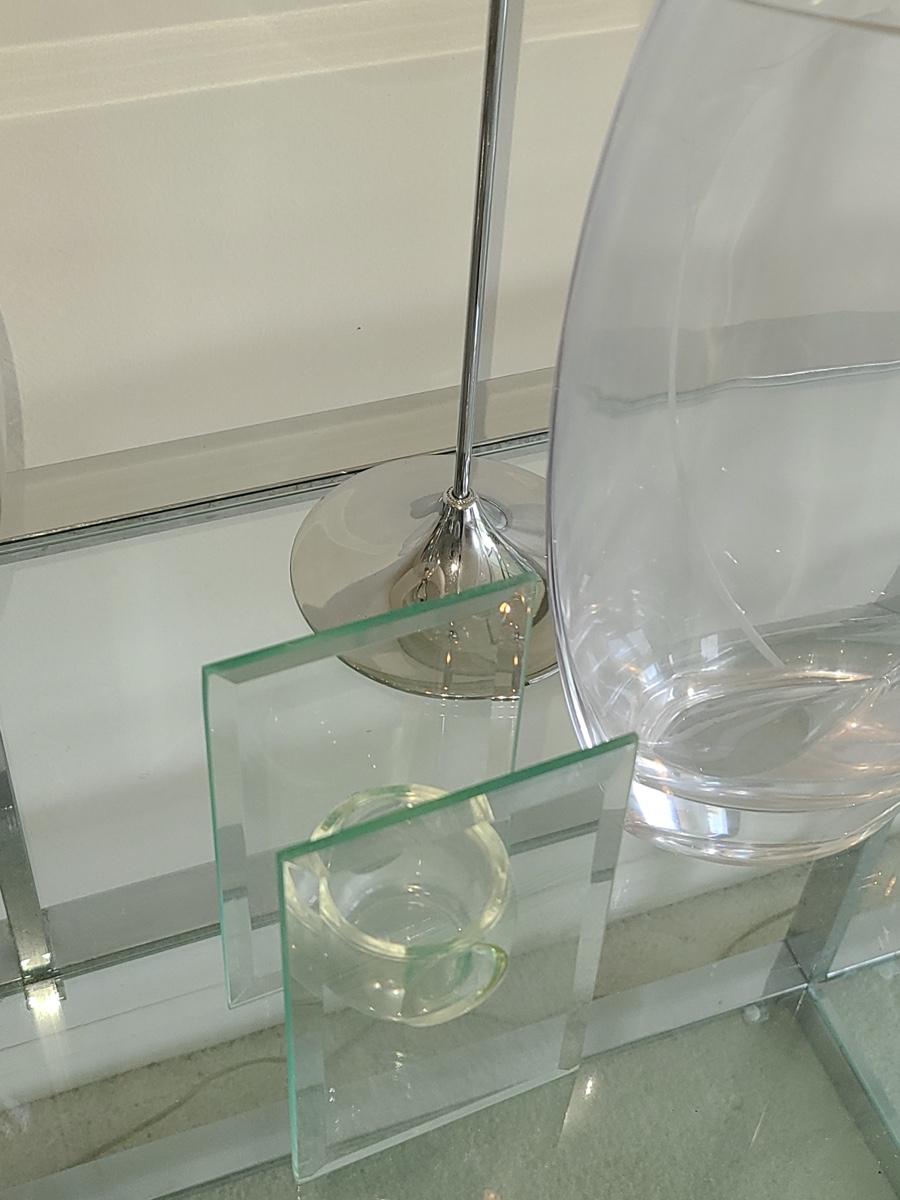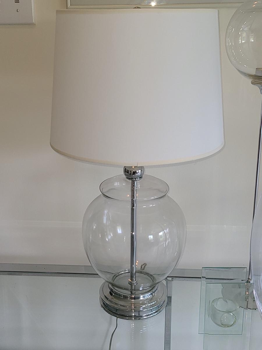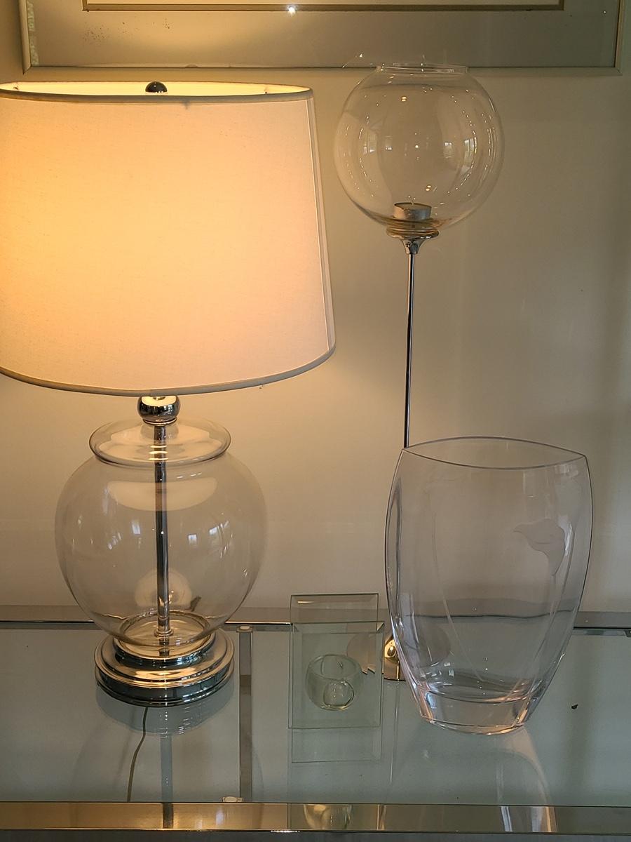 Lot 134: Home Accents: Chrome Based Lamp, Etched Glass Vase and More