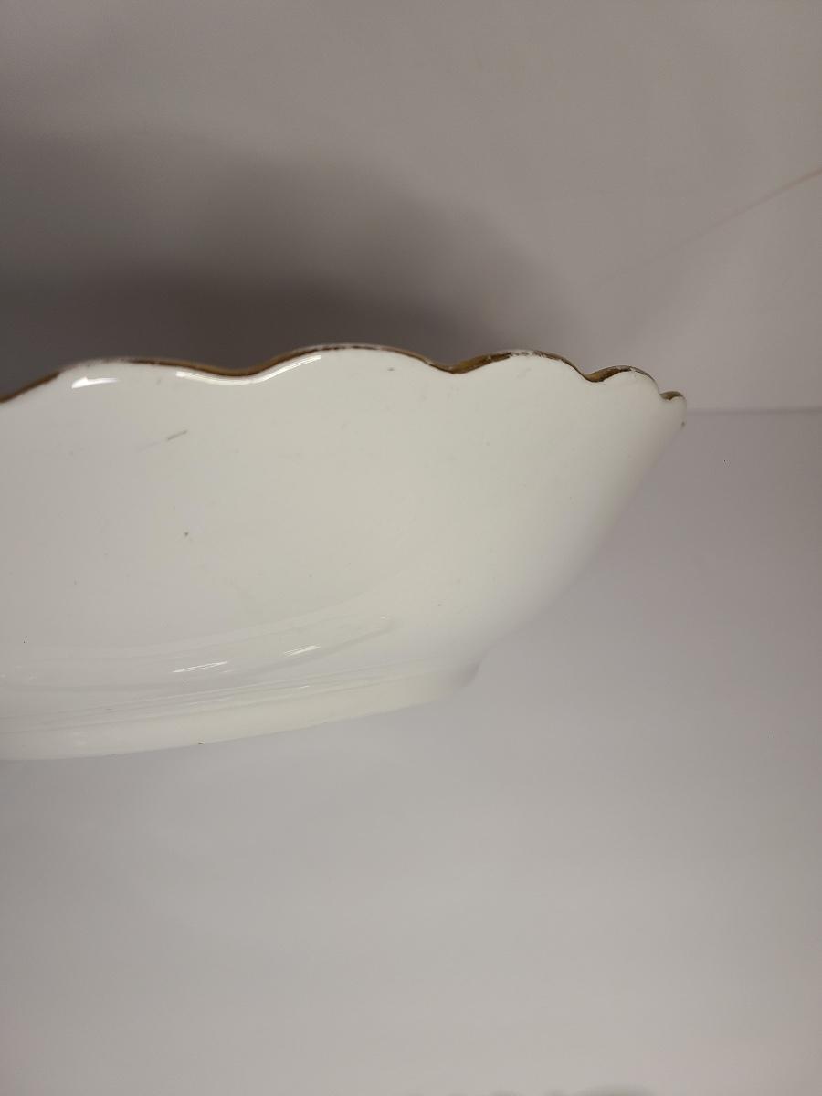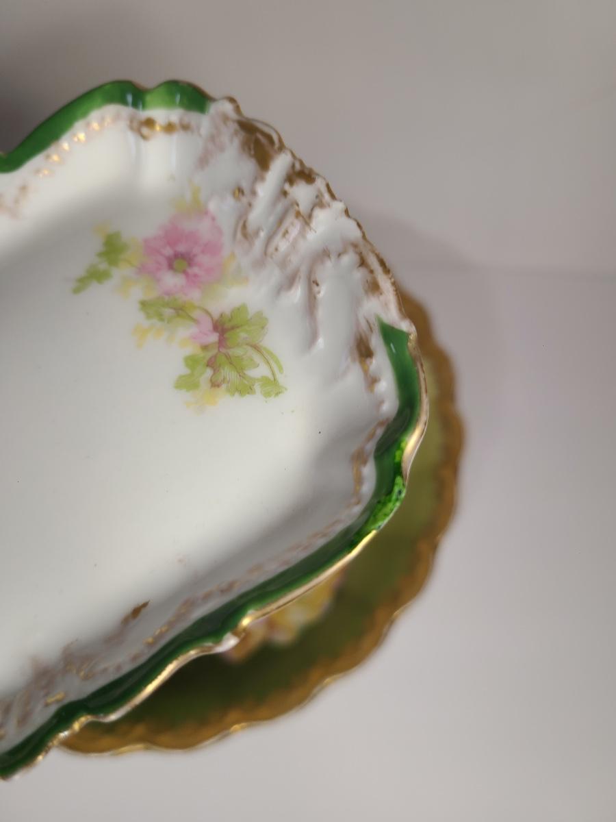 Hand painted Empire China bowl with gold rim and small rectangle Limoges France Vanity Tray with a tiny chip out of white on edge of plate. Did not notice until rim run with finger inspection. Felt it. Please see all pictures as they are the best representation of the items. The pictures show condition, measurements if taken, and what is included in the lot. Due to the large amount that we photograph and the time frame, we are not always able to take measurements. All items unless noted, are pre-owned and have been used. If you purchased furniture, you must bring help. We do not allow one person to carry large furniture out on their own. Bring help, tools and a truck for the safety of our client’s homes, and your personal safety. Any damages that result to the property including walls, and floors due to moving of the furniture will be charged to the buyer. Company policy. Thank you.