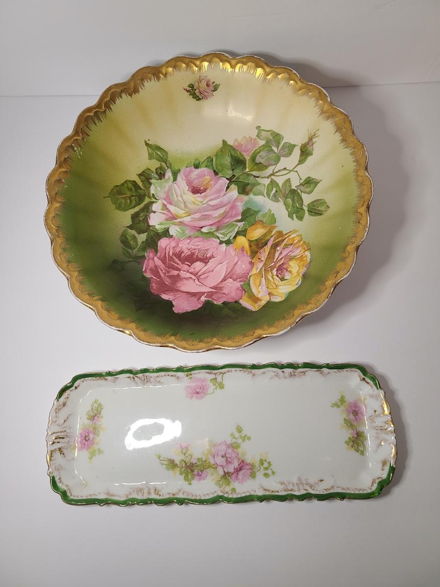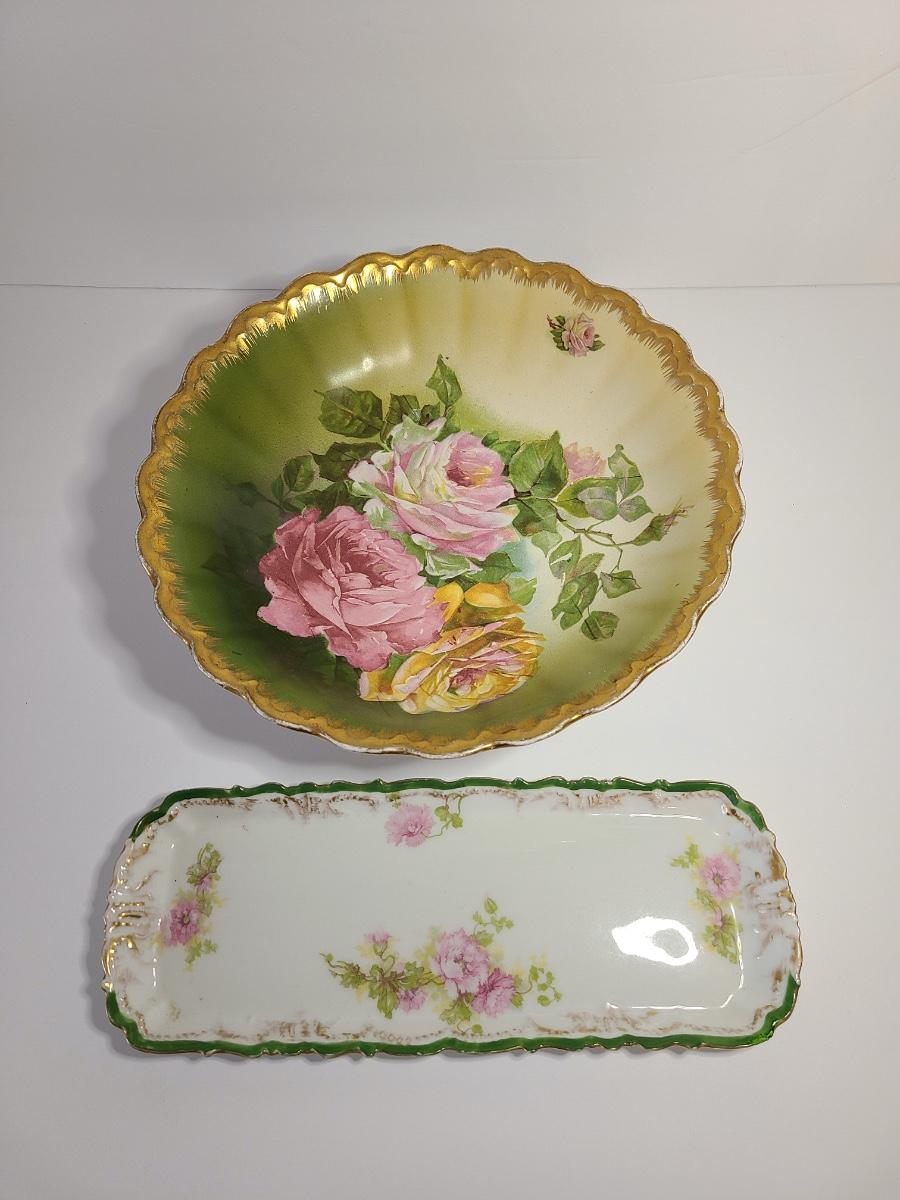 Lot 129: Antique Dainty Floral Bowl and Limoges Vanity Tray