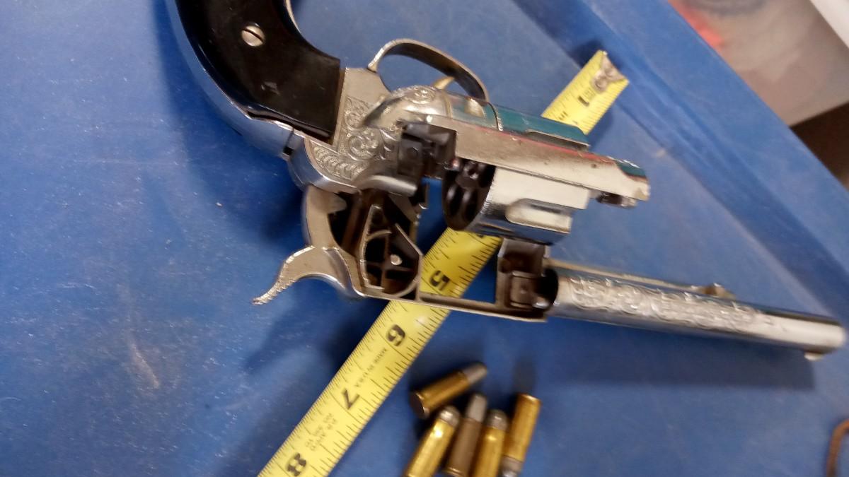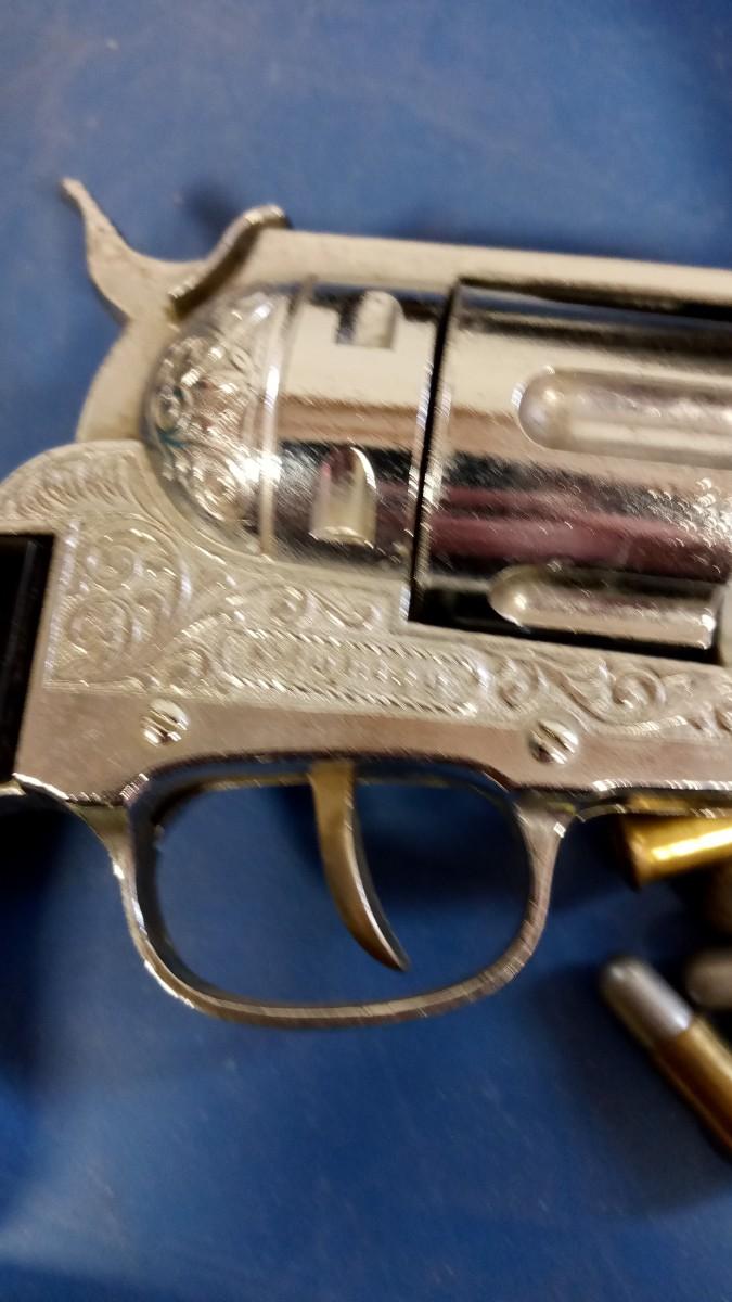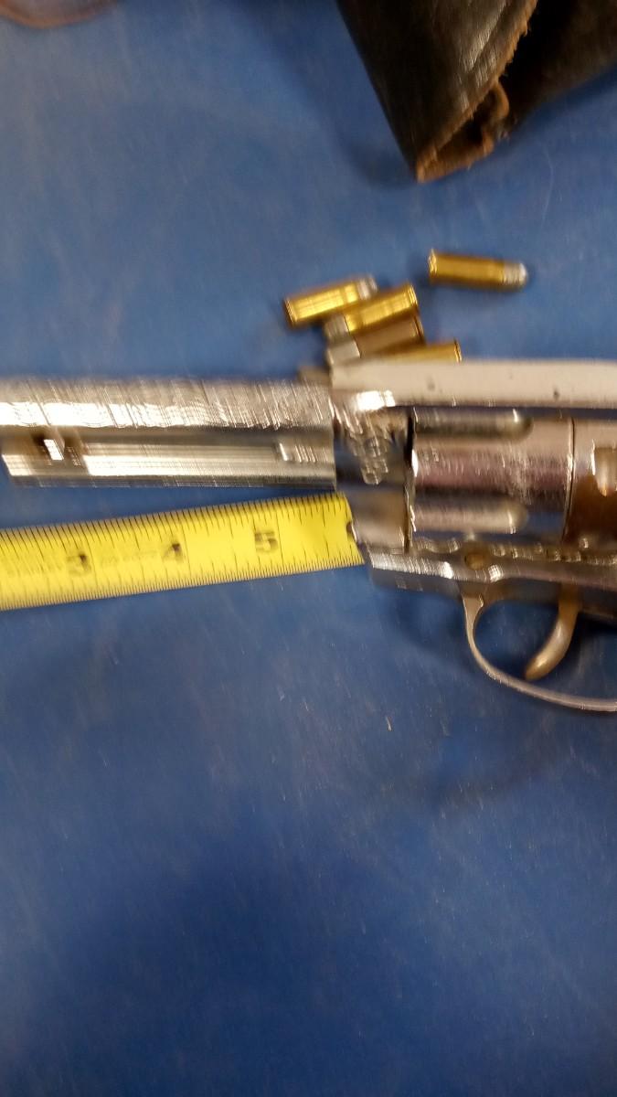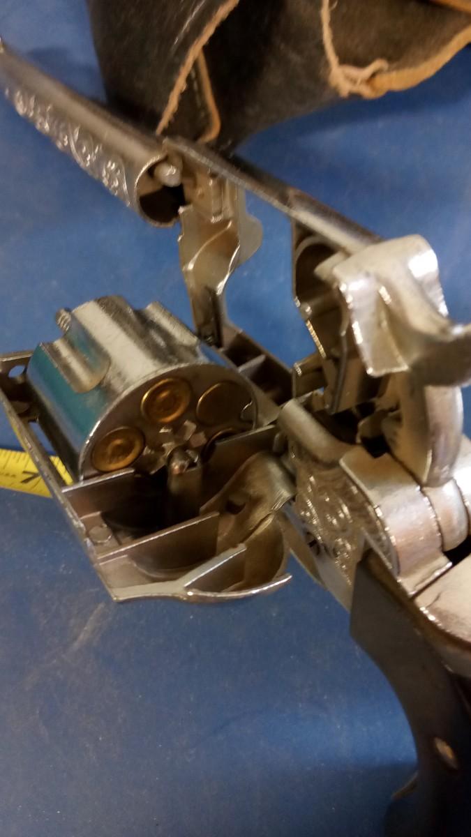SIX BULLETS IN GUN AND 11 MORE IN BELT GUN WORKS AND HOLSTER MARKED KLONDIKE