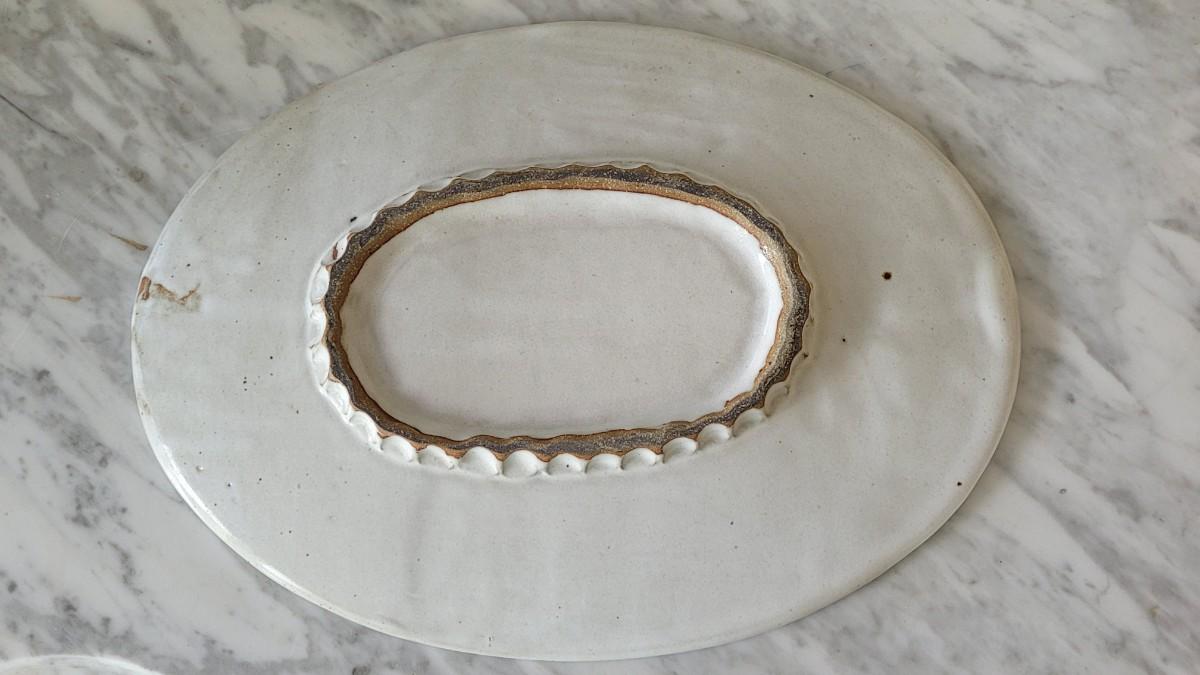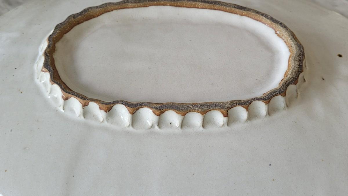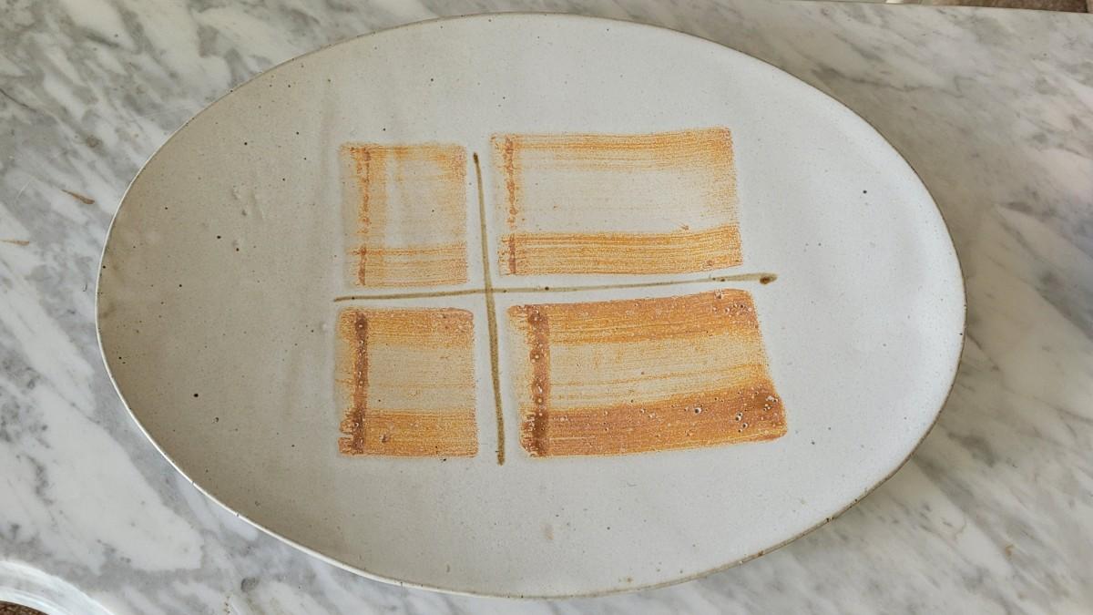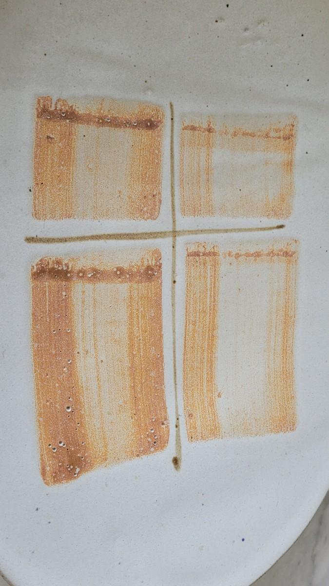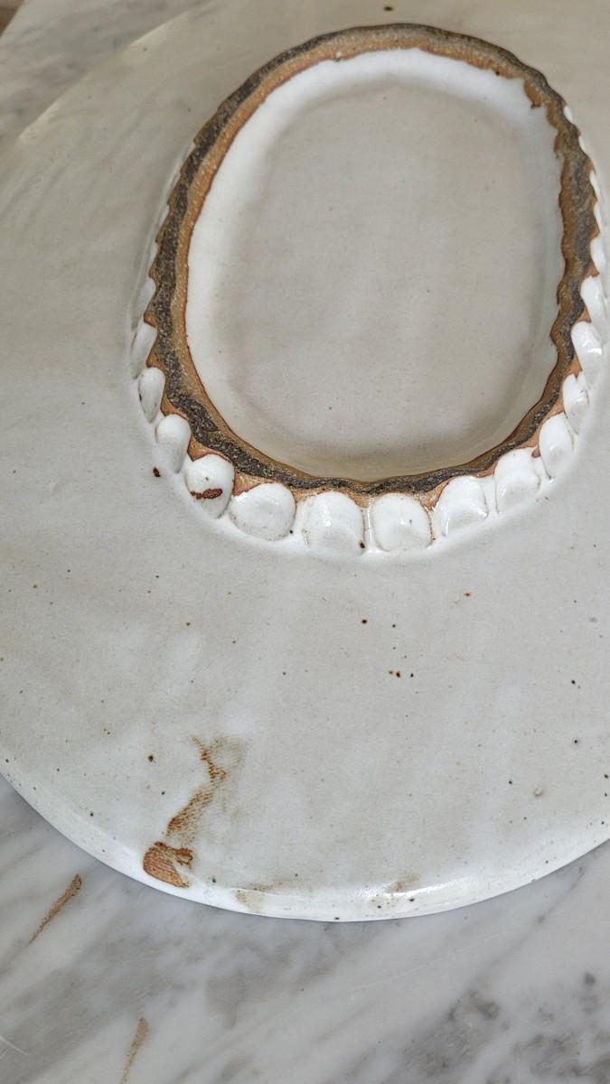 This beautiful piece is unsigned. There are not any chips or cracks. Looks better and person and really stands out in a room.