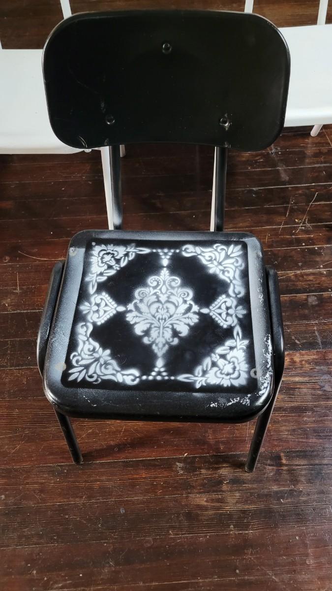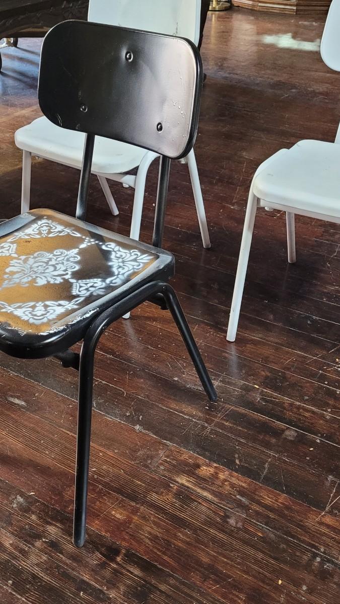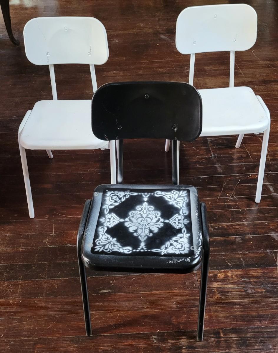 Lot 1: (3) Vintage Black & White Metal Chairs
