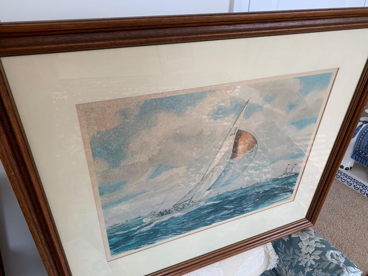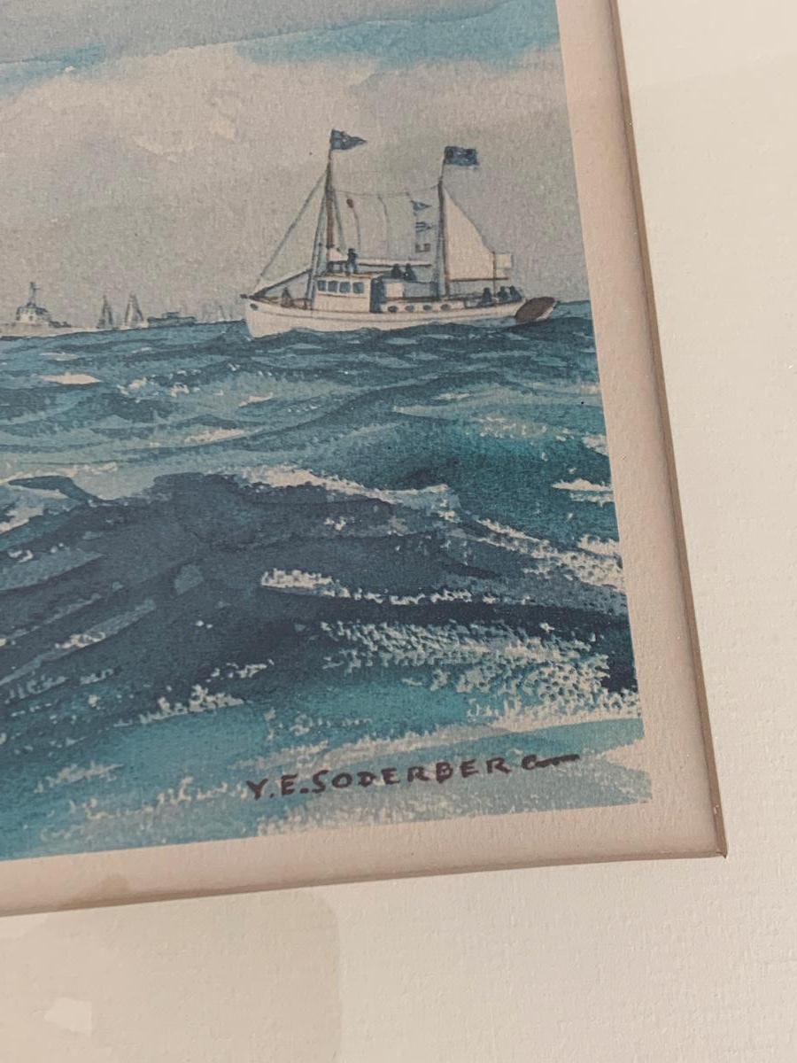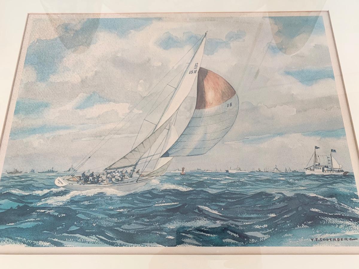 Y.E. Soderberg Nautical Sailing Watercolor Art Framed YNGVE EDWARD SODERBERG