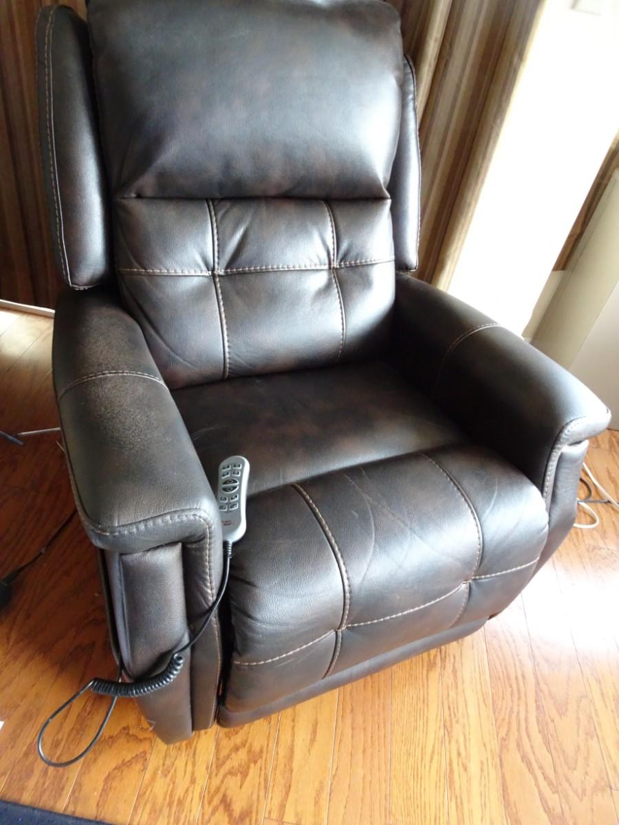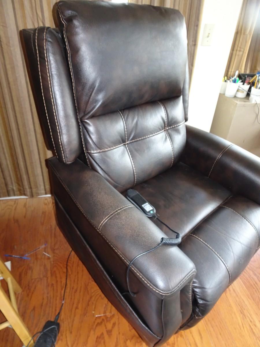 CHAIR HAS SOME WEAR MARKS, BUT STILL IN GOOD SHAPE AND POWER LIFT AND RECLINE FUNCTIONS WORK GREAT