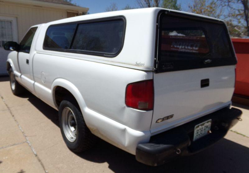 1999 CHEVY S 10 LONG BED TRUCK WITH TOPPER/SHELL, RUNS GREAT!