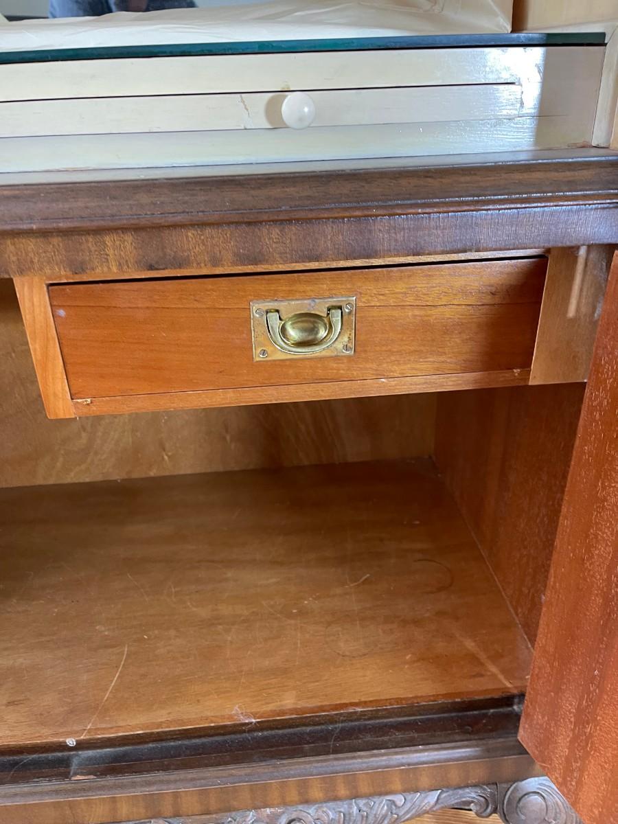 Bottom part, also closes with the same key, has a small draw and storage for all your liquor.