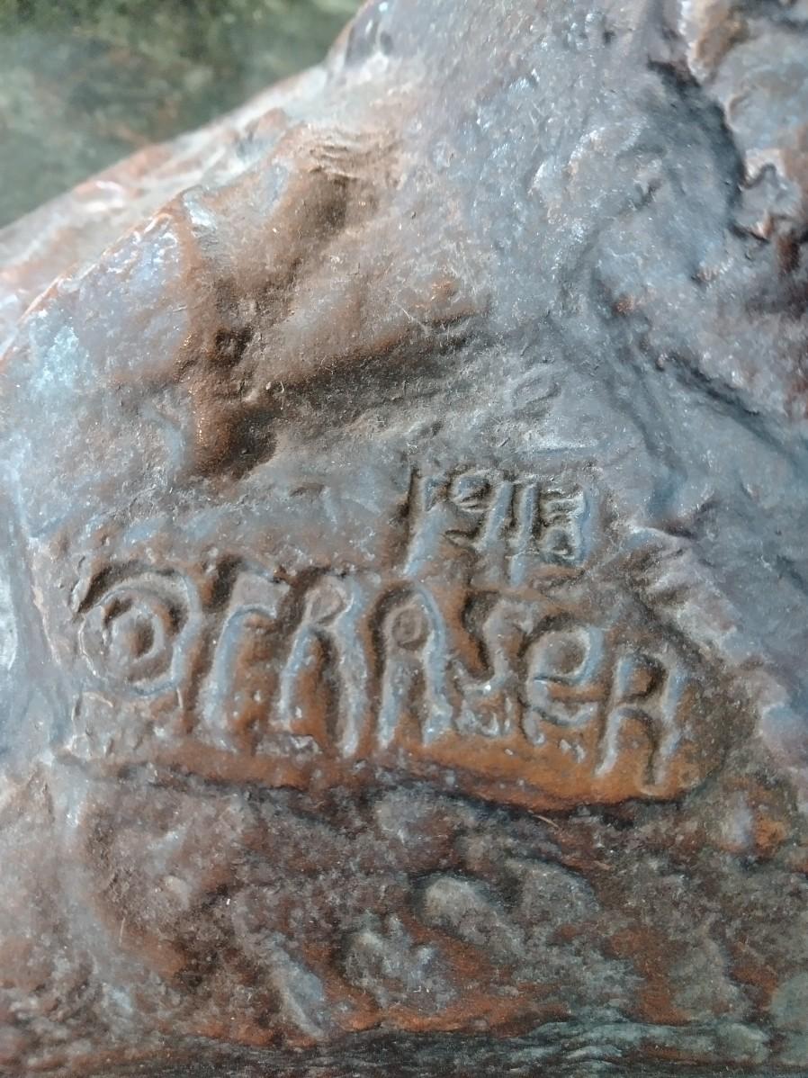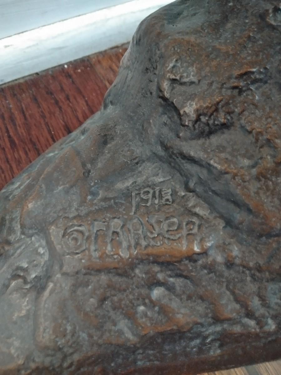20" X 21" BRONZE STATUE "END OF THE TRAIL" SIGNED, 1918 ©FRASER