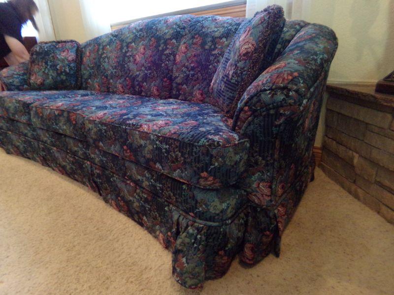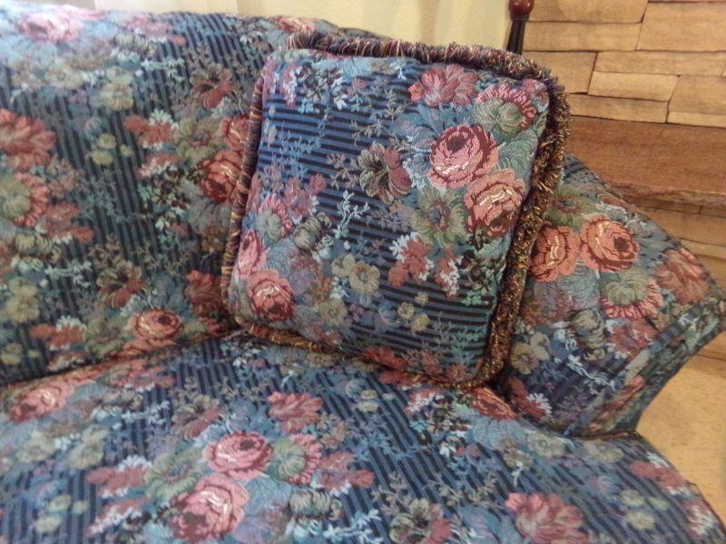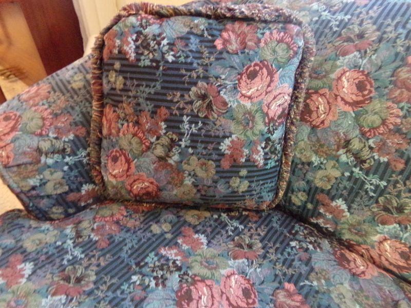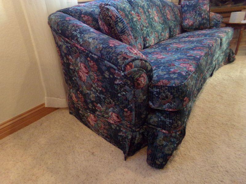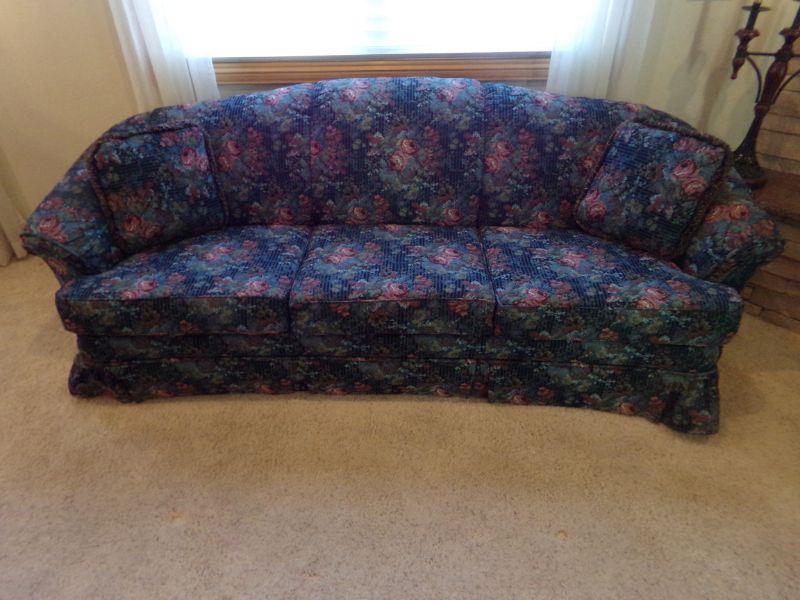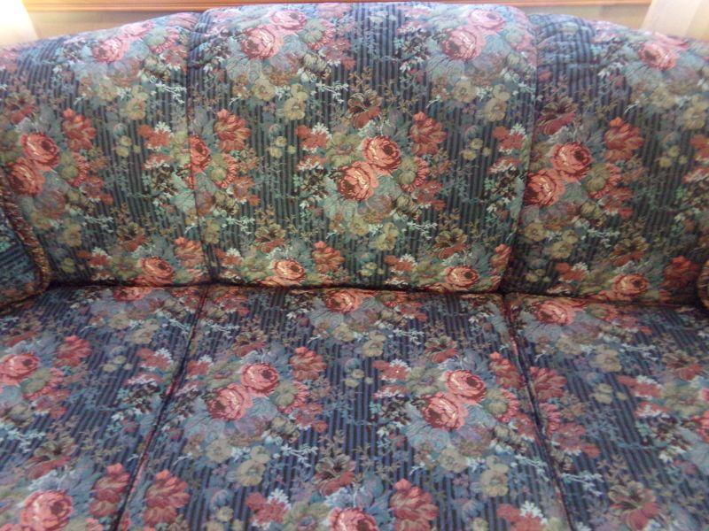 FLORAL COUCH FROM CHARLES CUSTOM FURNITURE IN VERY GOOD CONDITION. MEASURES 92" LONG.