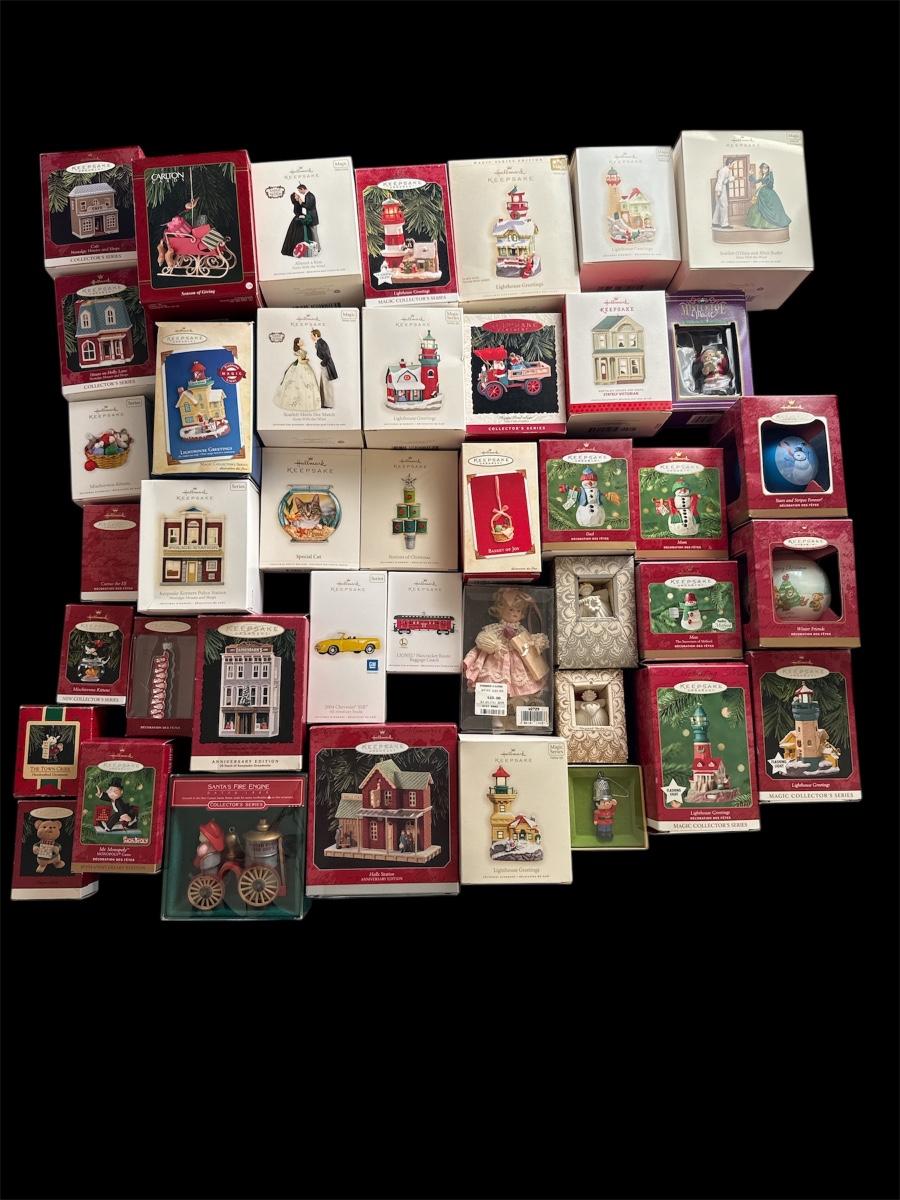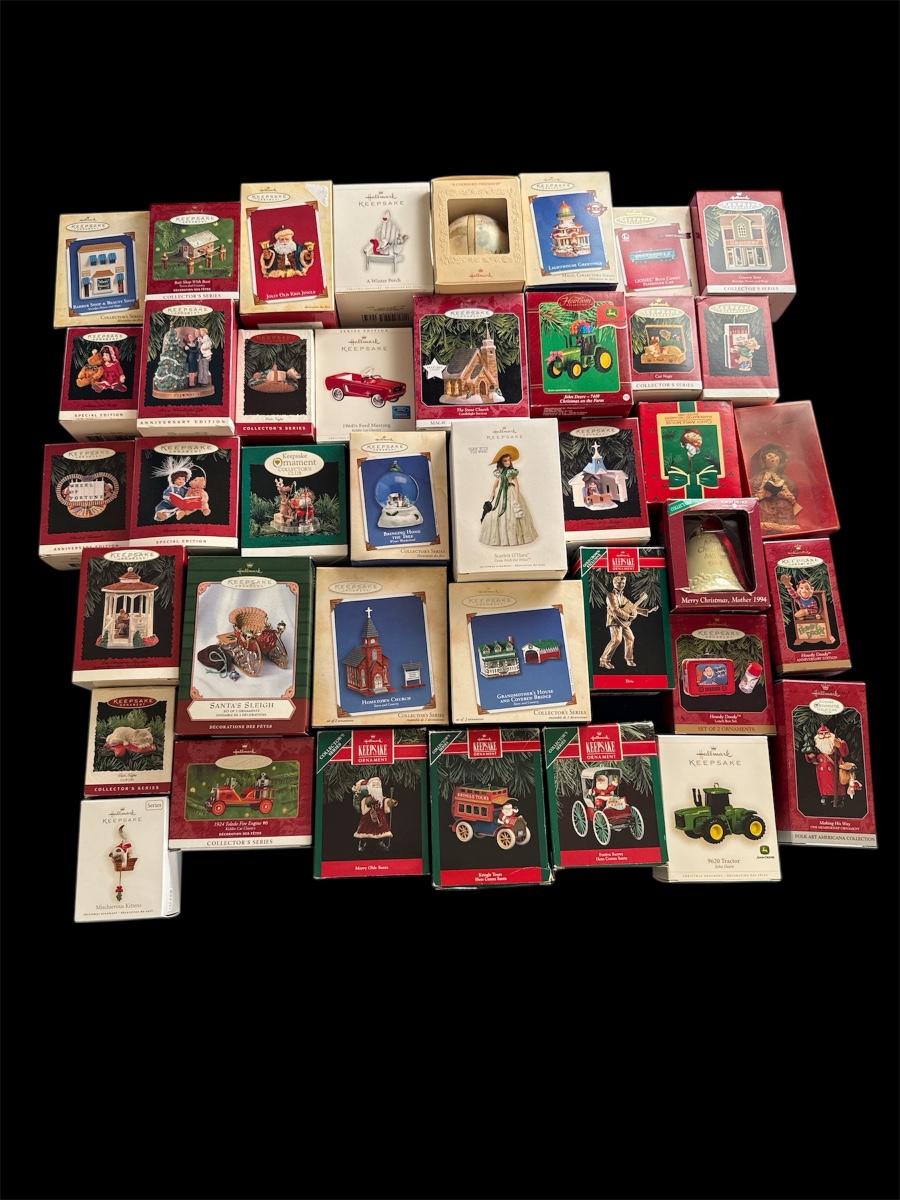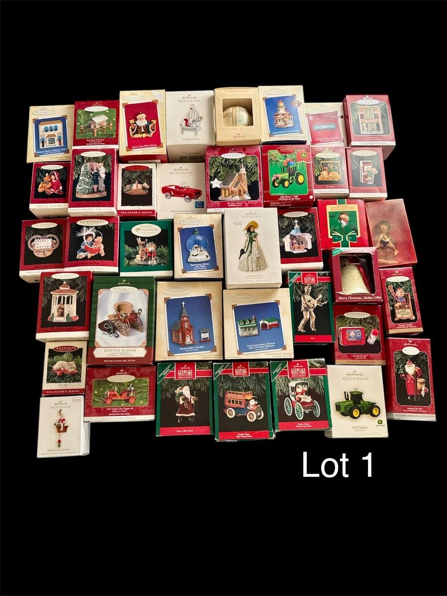 You will receive 82 Christmas ornaments. Some new, some used. All in boxes. All in excellent condition.