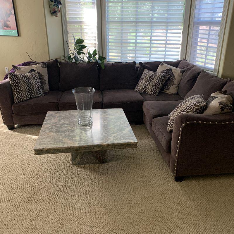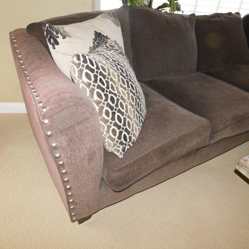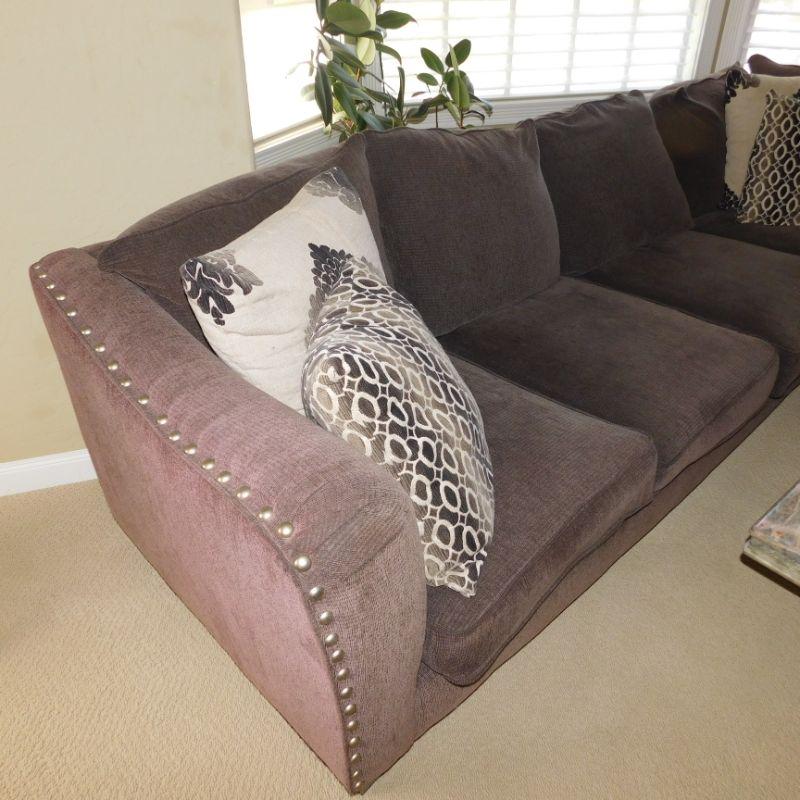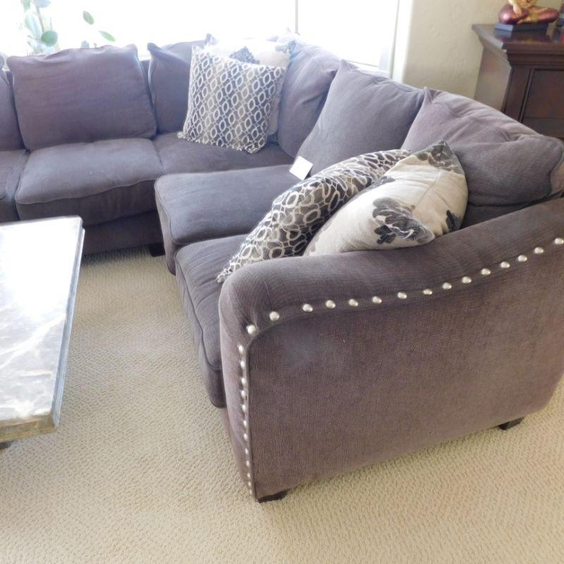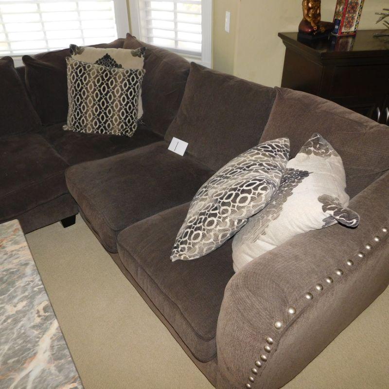 Lot 1 dark gray sectional sofa with four decorative pillows