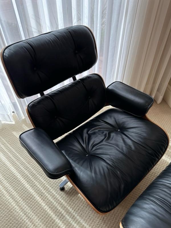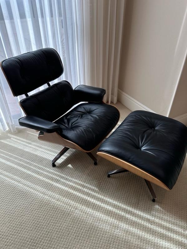 Lot 1 Eames Herman Miller Lounge Chair and Ottoman Genuine Leather Armchair