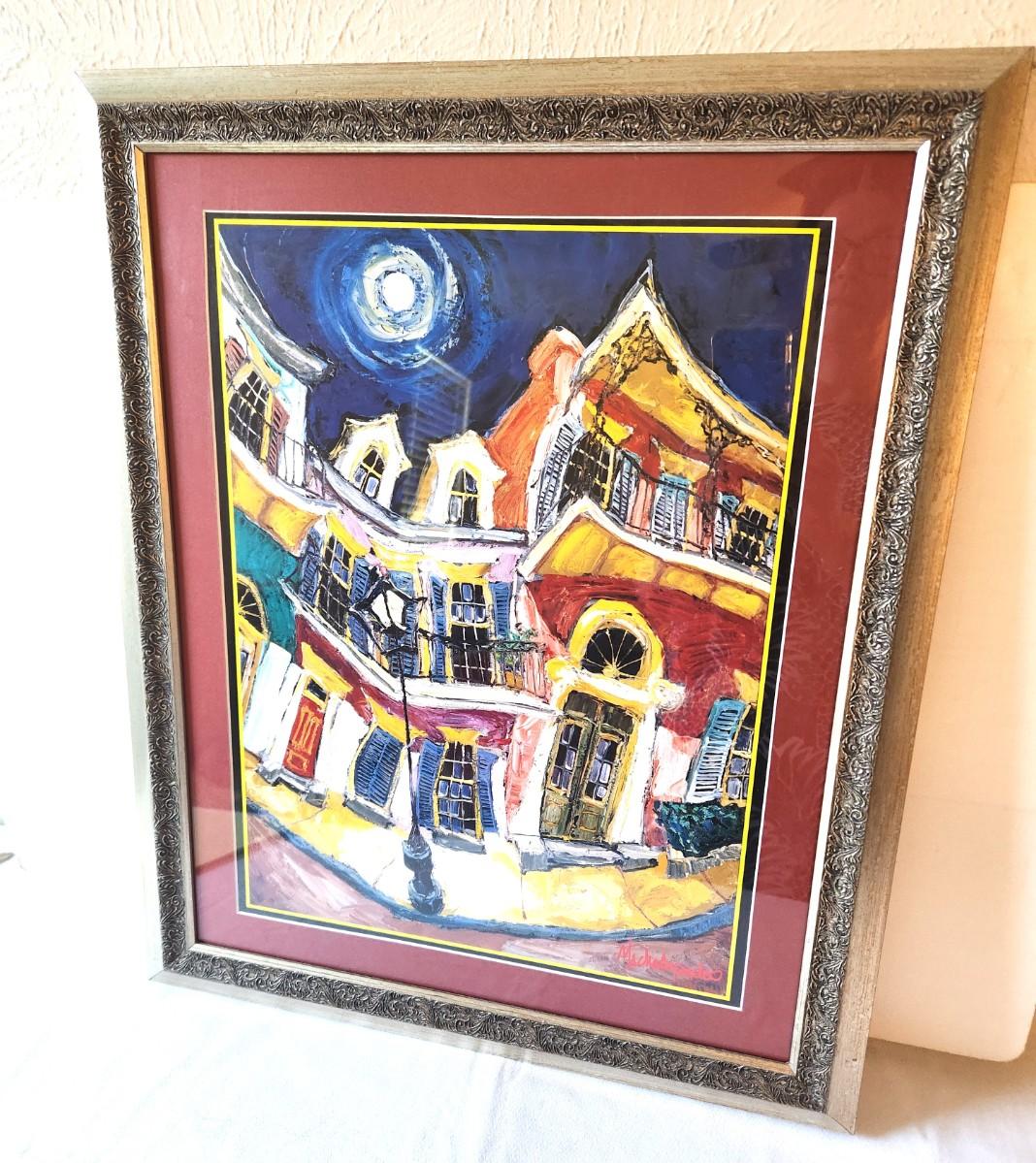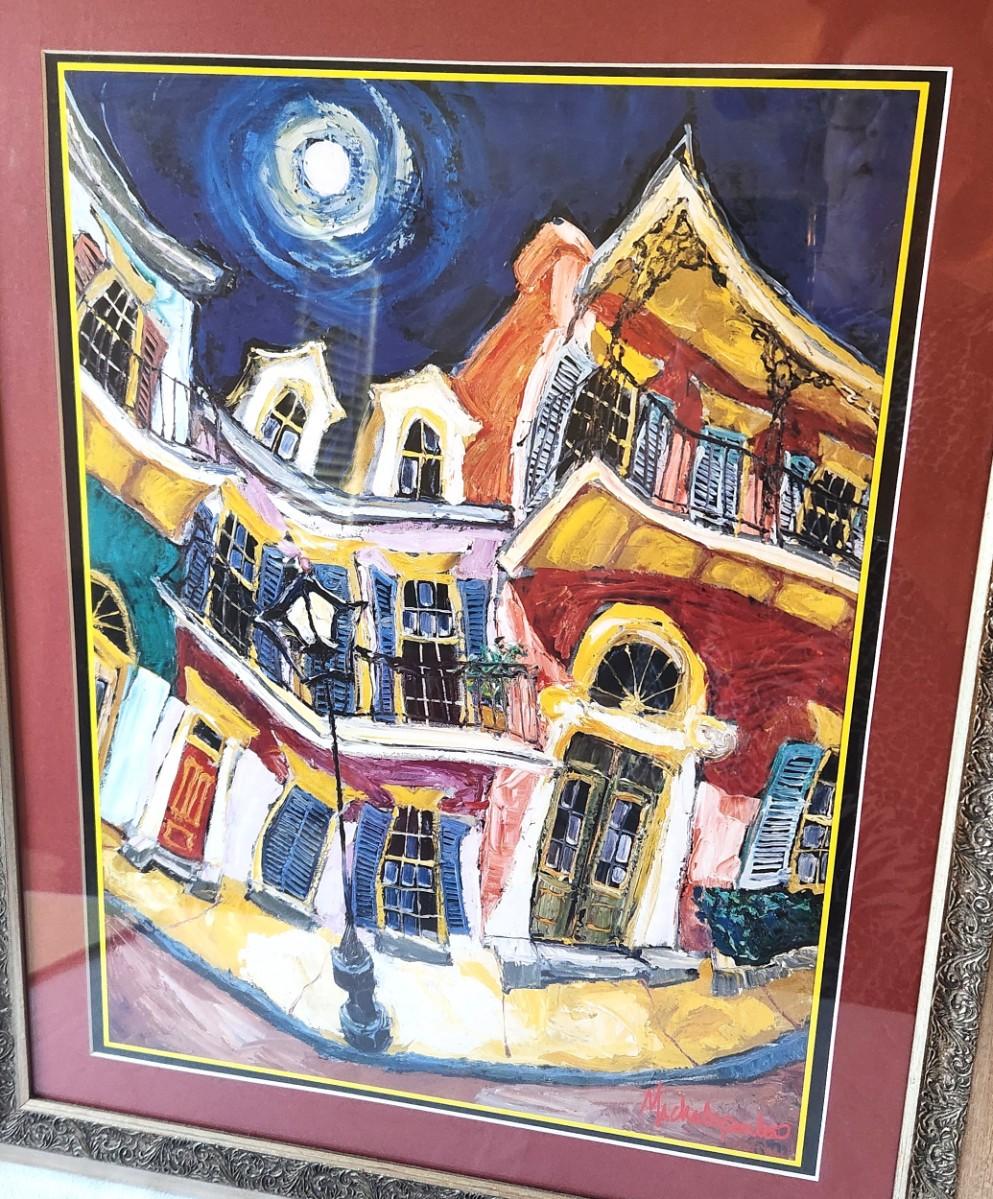 Framed and matted Michelopoulas print - French Quarter home. 19" x 23". Good condition.