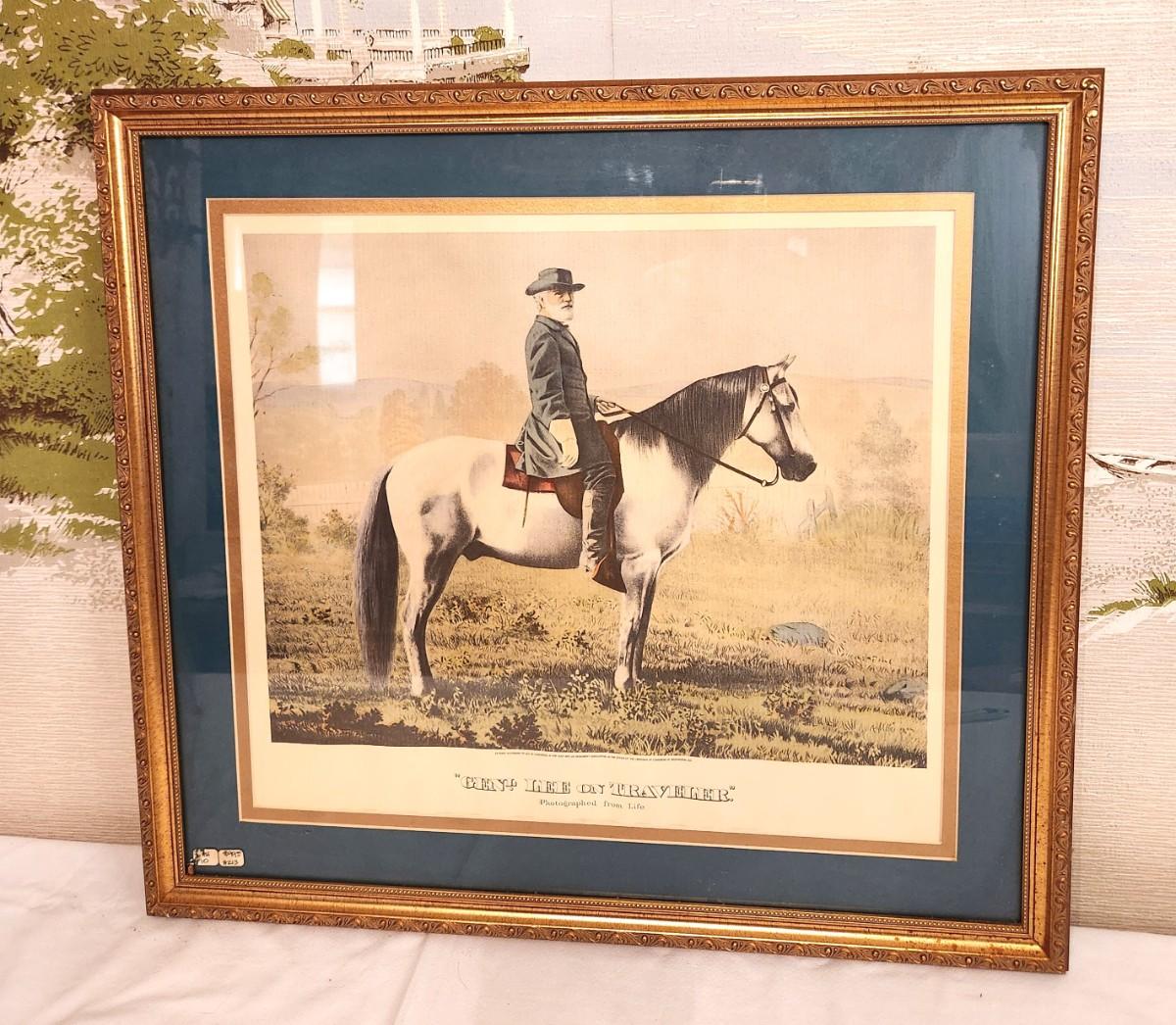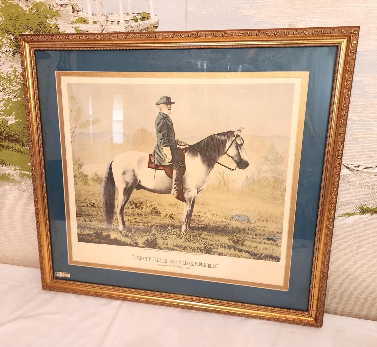 Nice framed print of General Robert E. Lee and his horse Traveller - double mat. Clients had a lot of framed prints in their shop - many with Civil War themes - and some of them will be offered in this sale.
