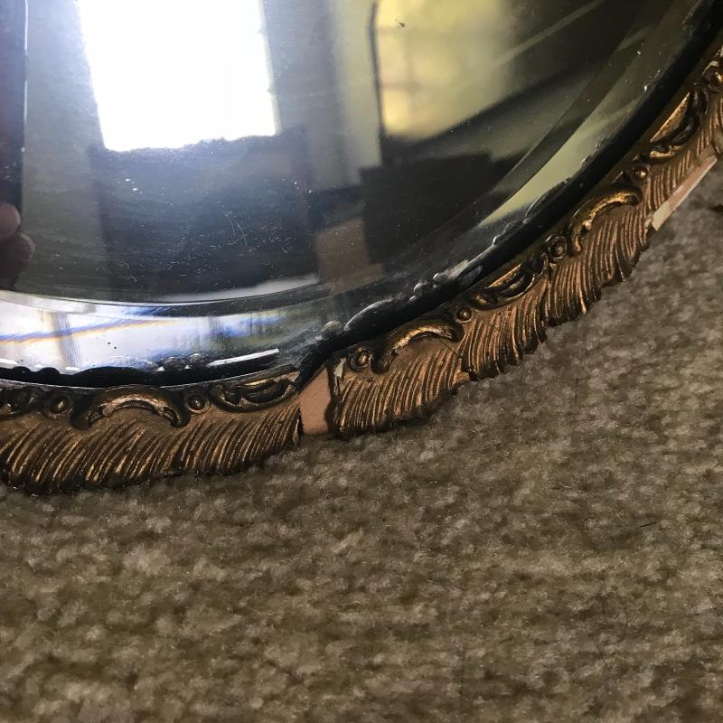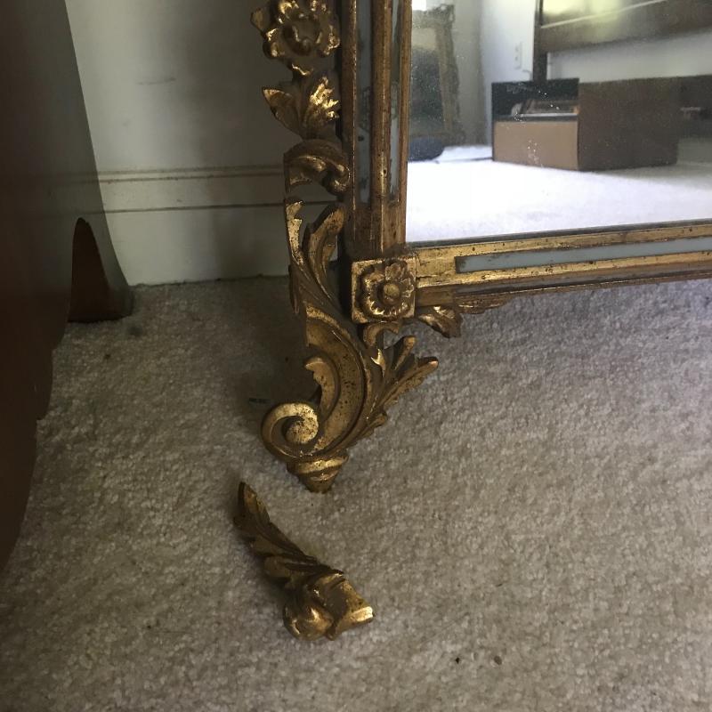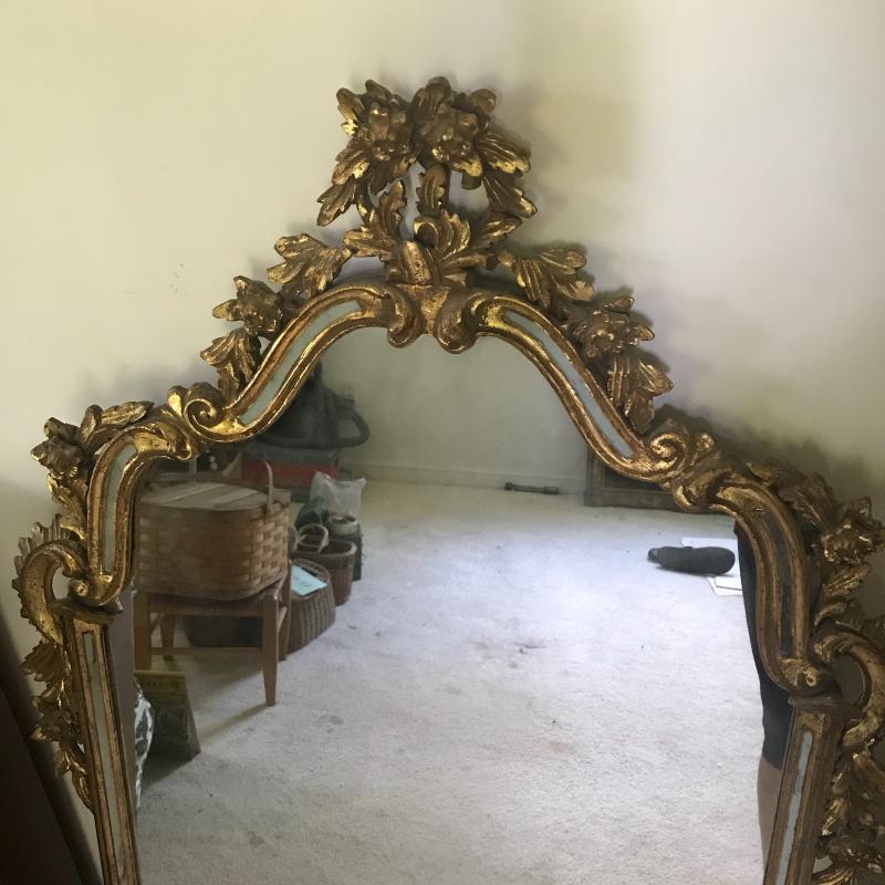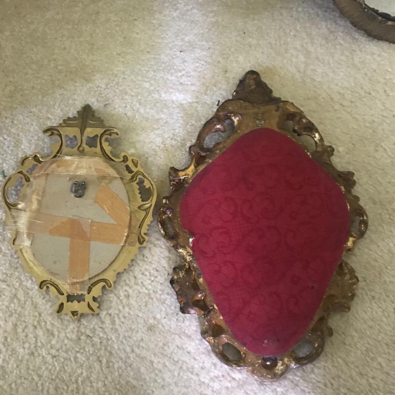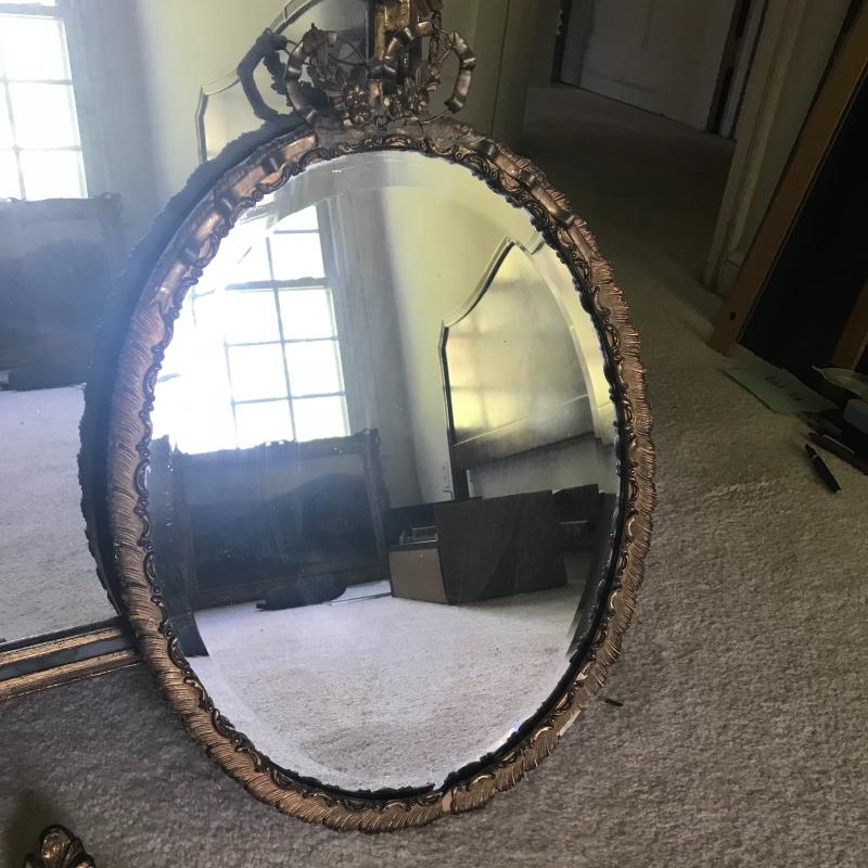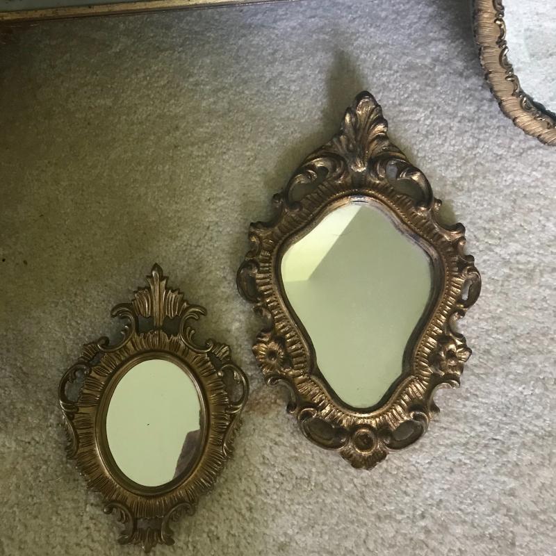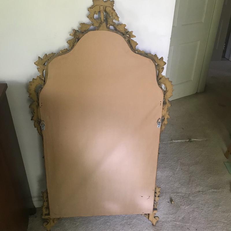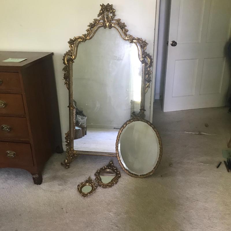 4 wood mirror in gold. Some chipped pieces, see pix. Largest measures 28” x52.5”. No shipping.