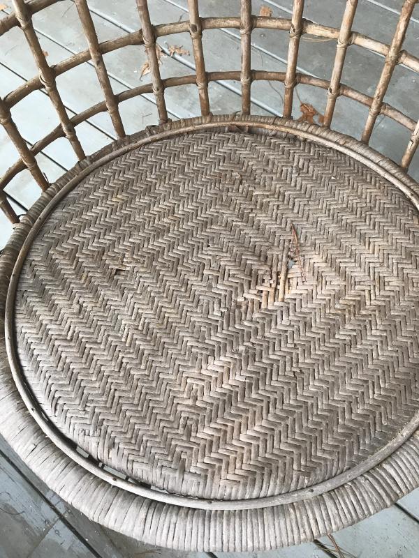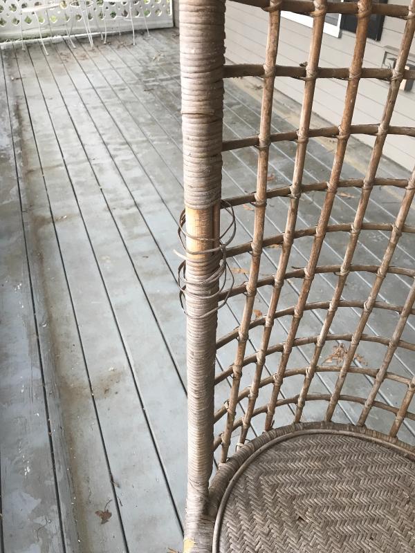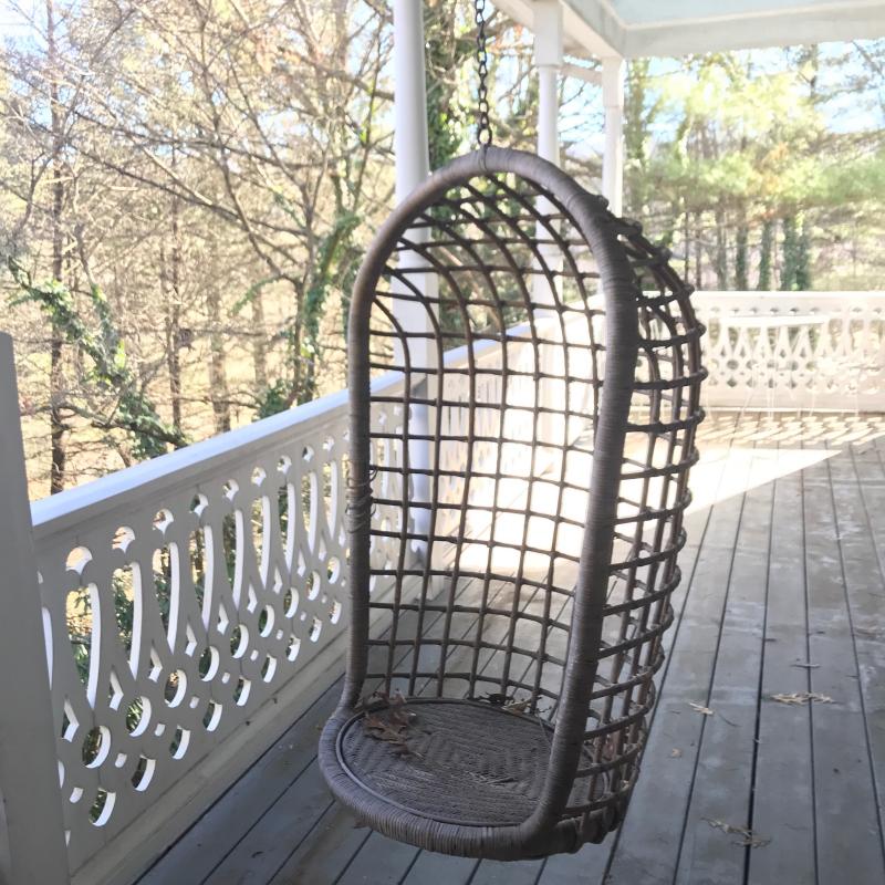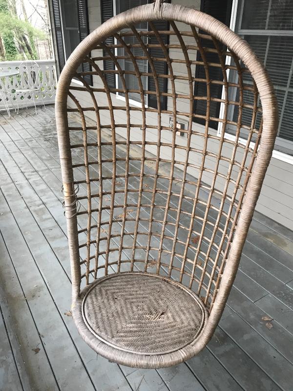 Gorgeous Hanging Seat for Porch. Made of wicker/rattan. Seat may need a little reinforcing. Basket measures 42” x27” x22”. This lot is available for local pick up in Flat Rock, NC only.
