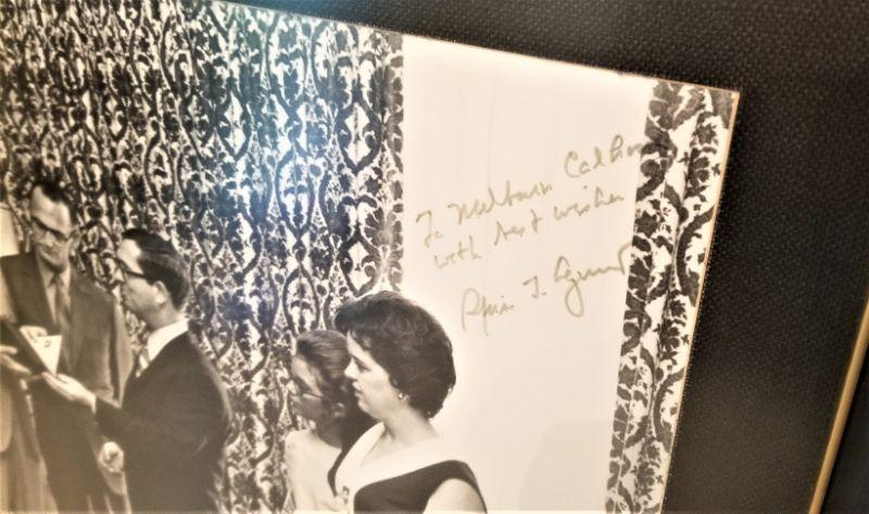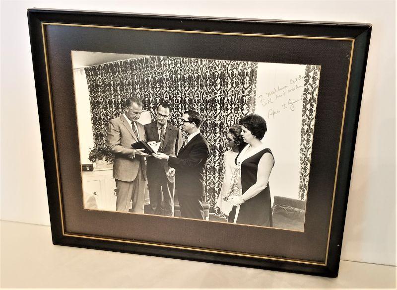 In=person photo and autograph - signed to Milburn Calhoun from Spiro Agnew, Vice President of the United States. Photo pictures Vice President Agnew and Dr. Calhoun and members of his family. Measures 17.25" x 14.5"
