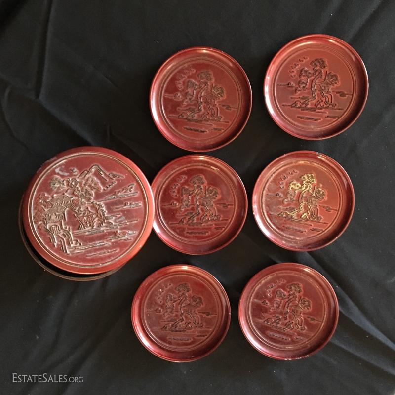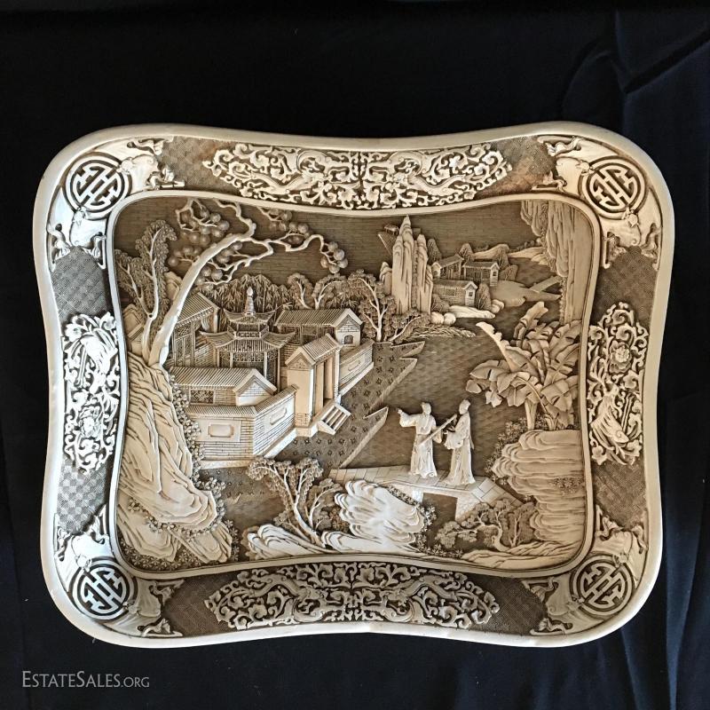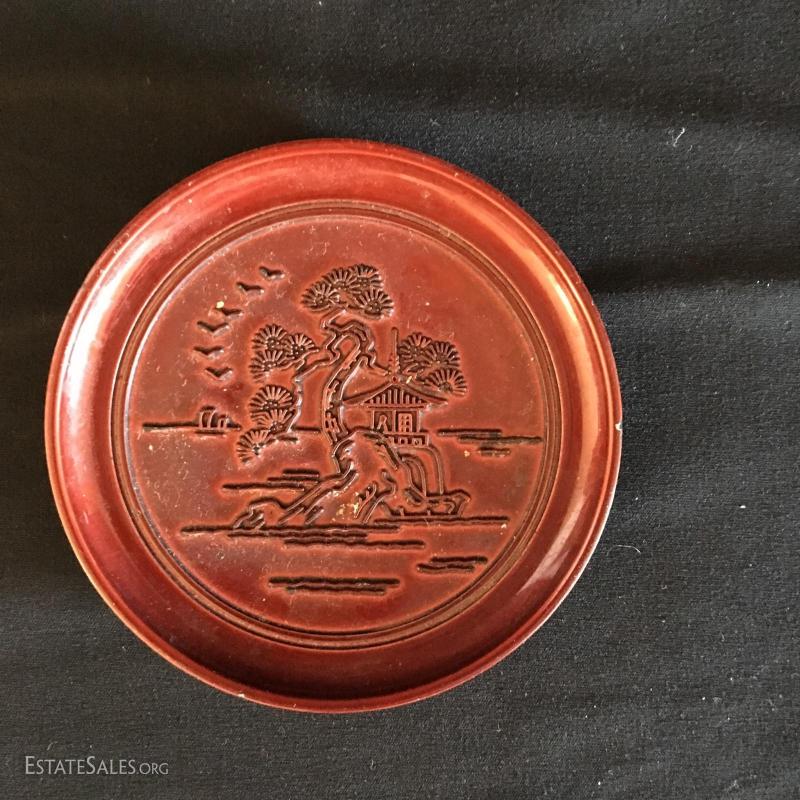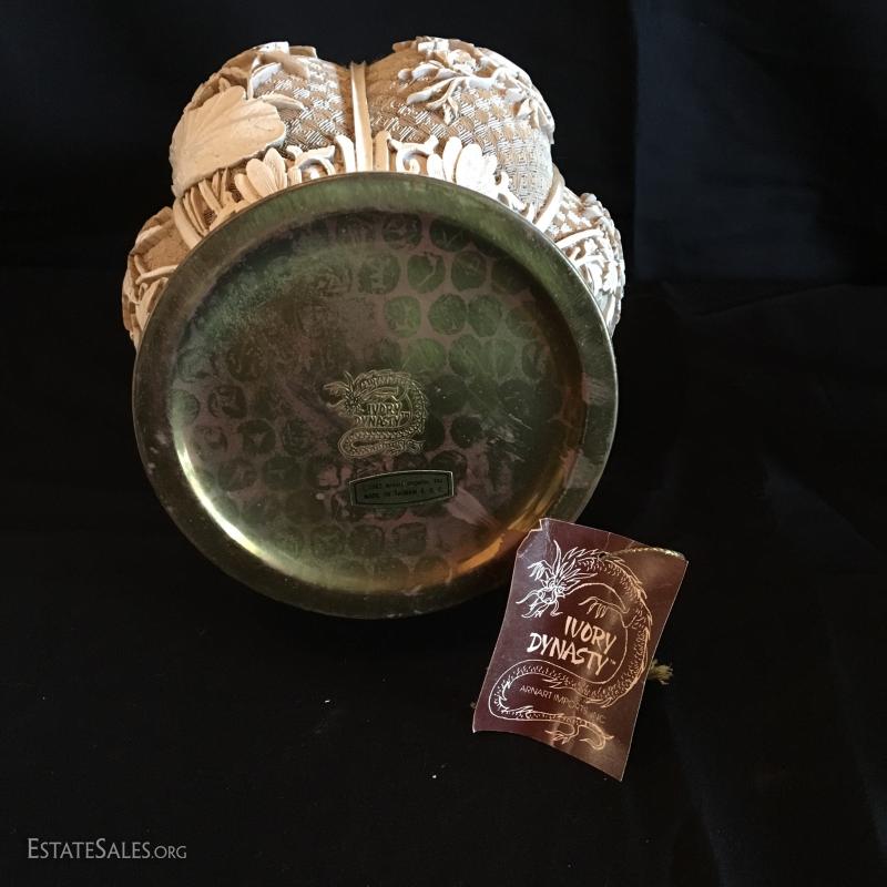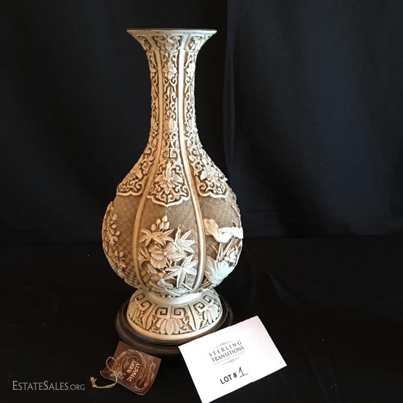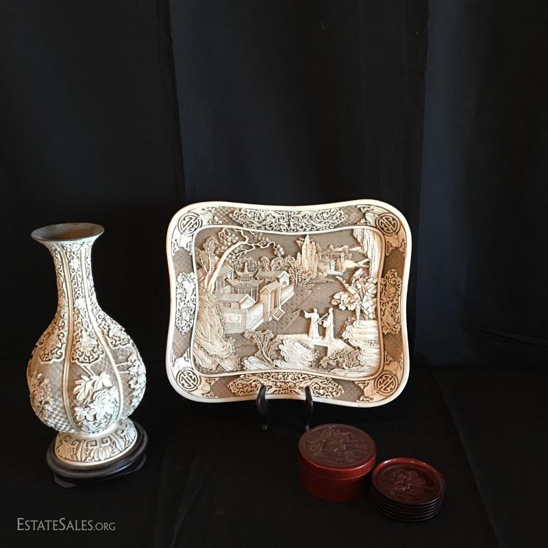 Carved Plate and Vase by Arnat Imports, Inc. Vase comes with wood base.