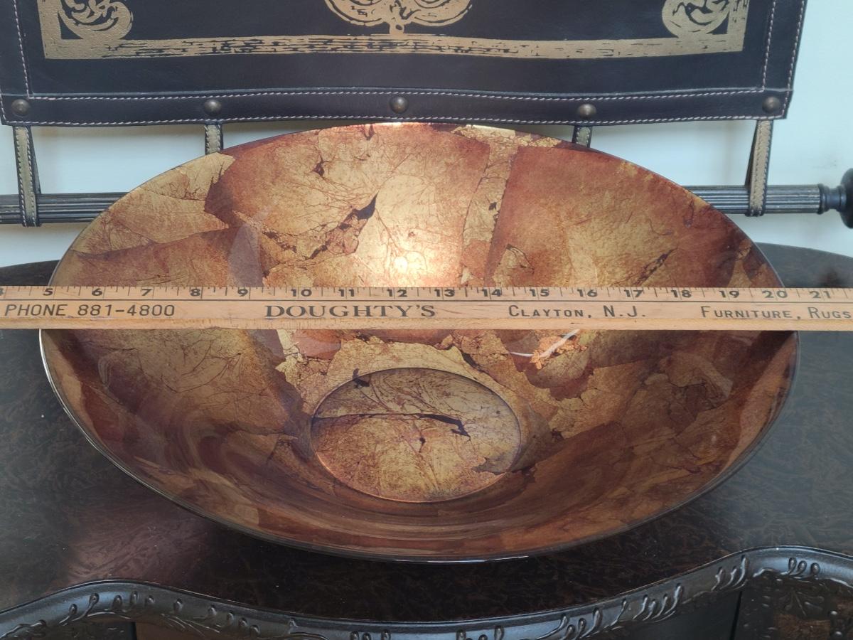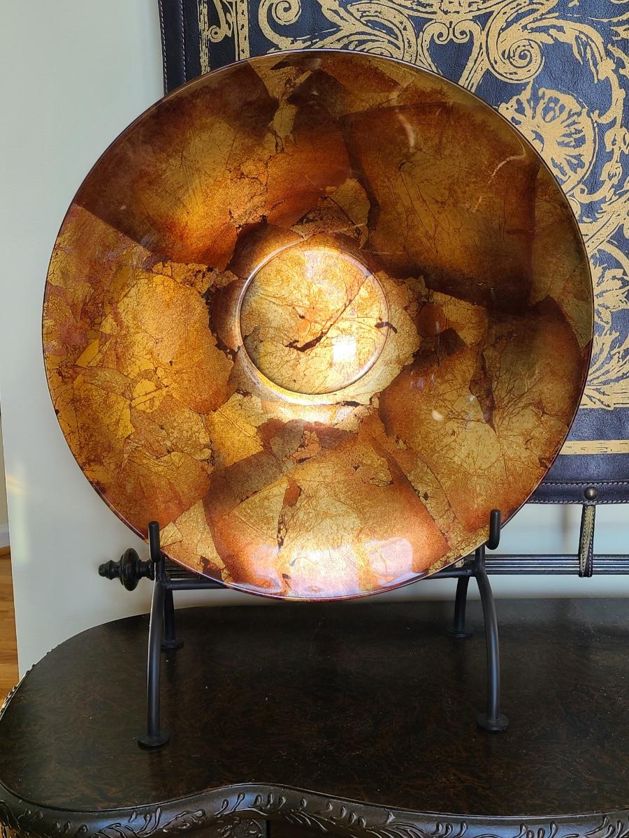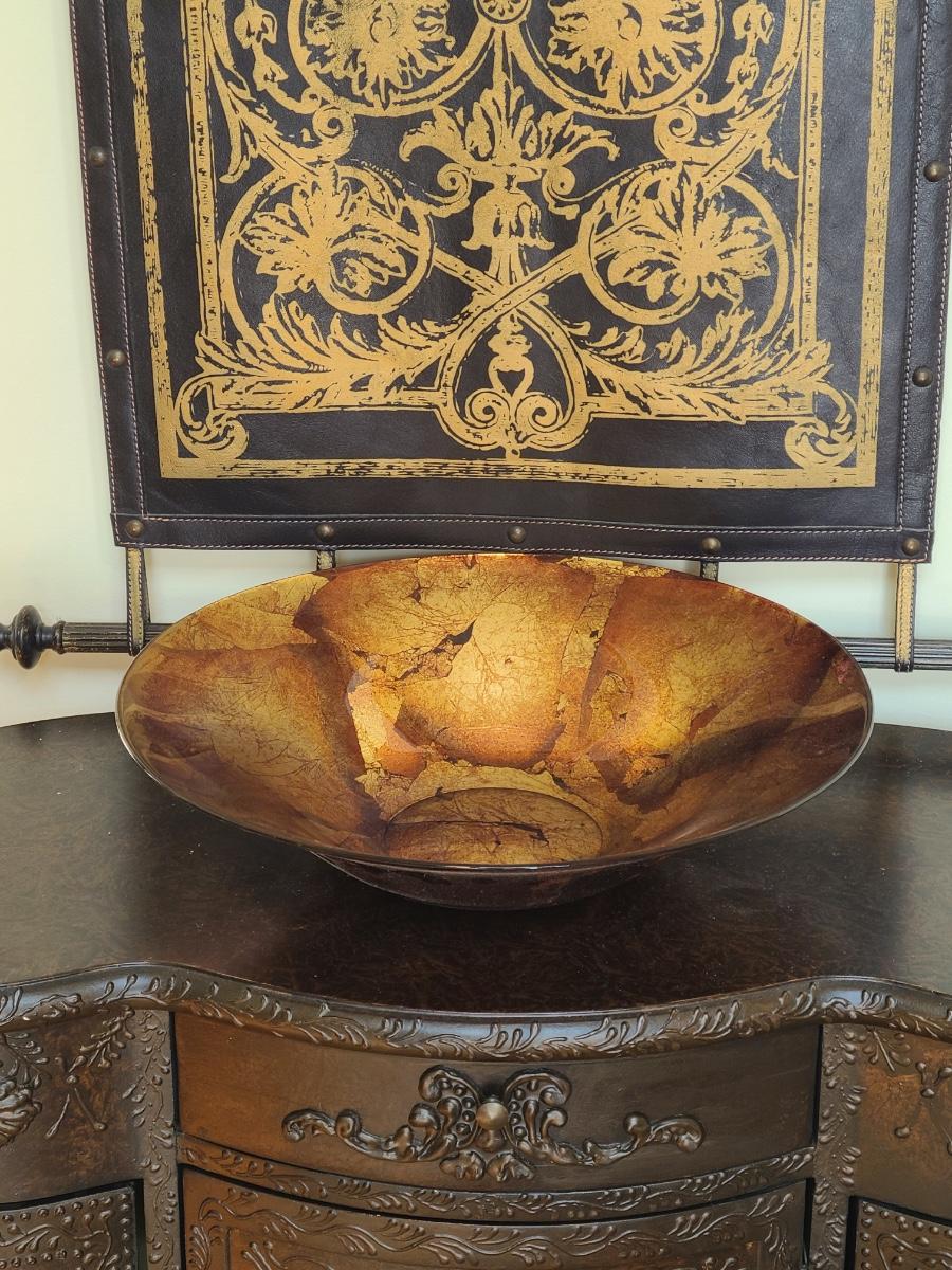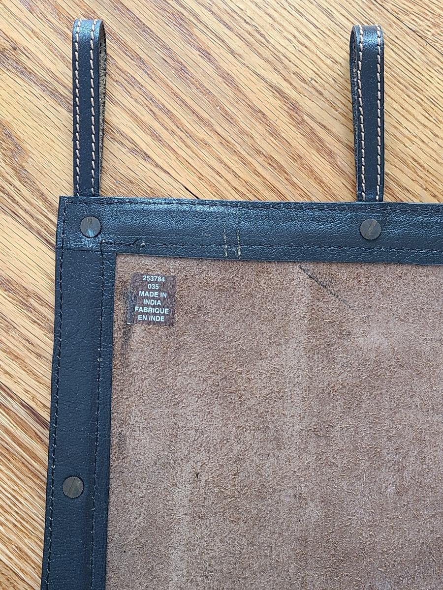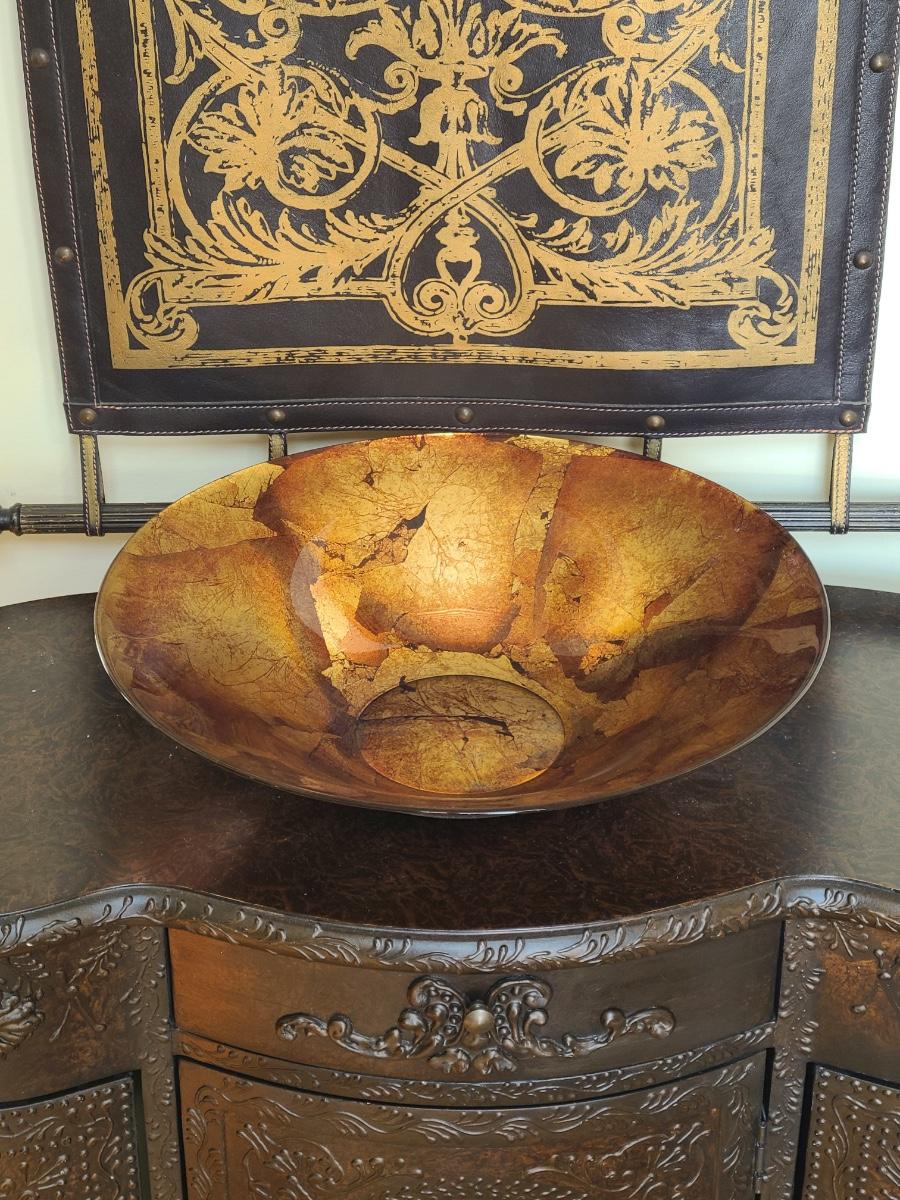 This looks to be a leather painted wall hanging with gold accents. It comes with the brackets. It measures 47 inches long and the brackets at top are 31 inches wide and at the bottom, 26 inches wide. Lovely wall decor for any room in the home. Please see all pictures as they are the best representation of the items. The pictures show condition, measurements if taken, and what is included in the lot. Due to the large amount that we photograph and the time frame, we are not always able to take measurements. All items unless noted, are pre-owned and have been used. If you purchased furniture, you must bring help. We do not allow one person to carry large furniture out on their own. Bring help, tools and a truck for the safety of our client’s homes, and your personal safety. Any damages that result to the property including walls, and floors due to moving of the furniture will be charged to the buyer. Company policy. Thank you.