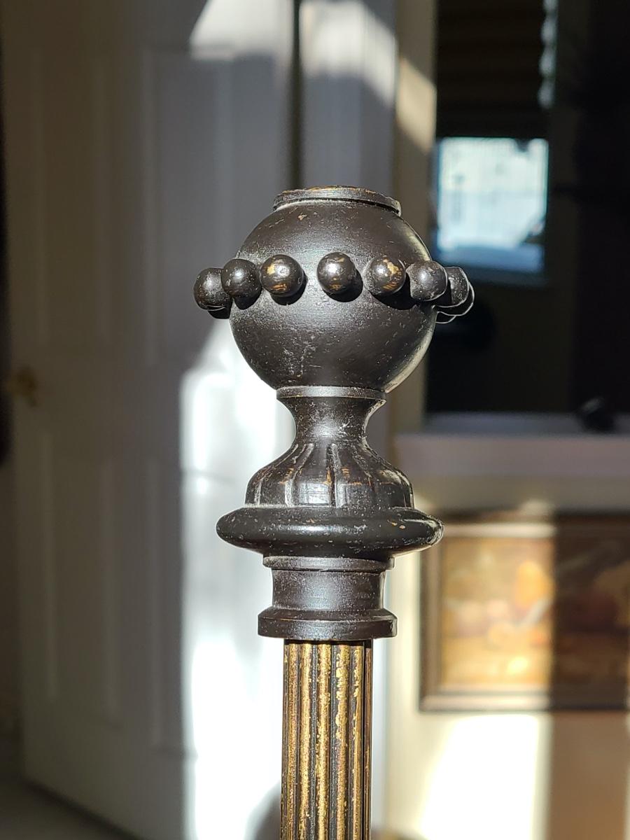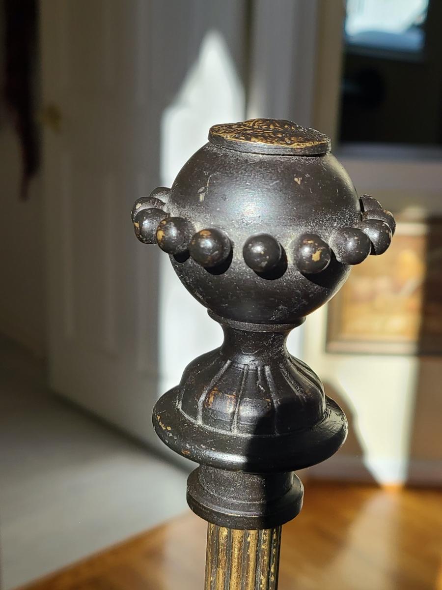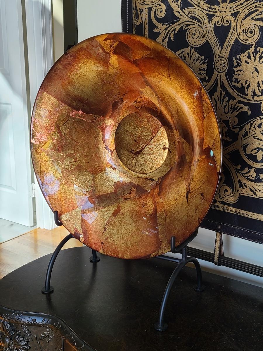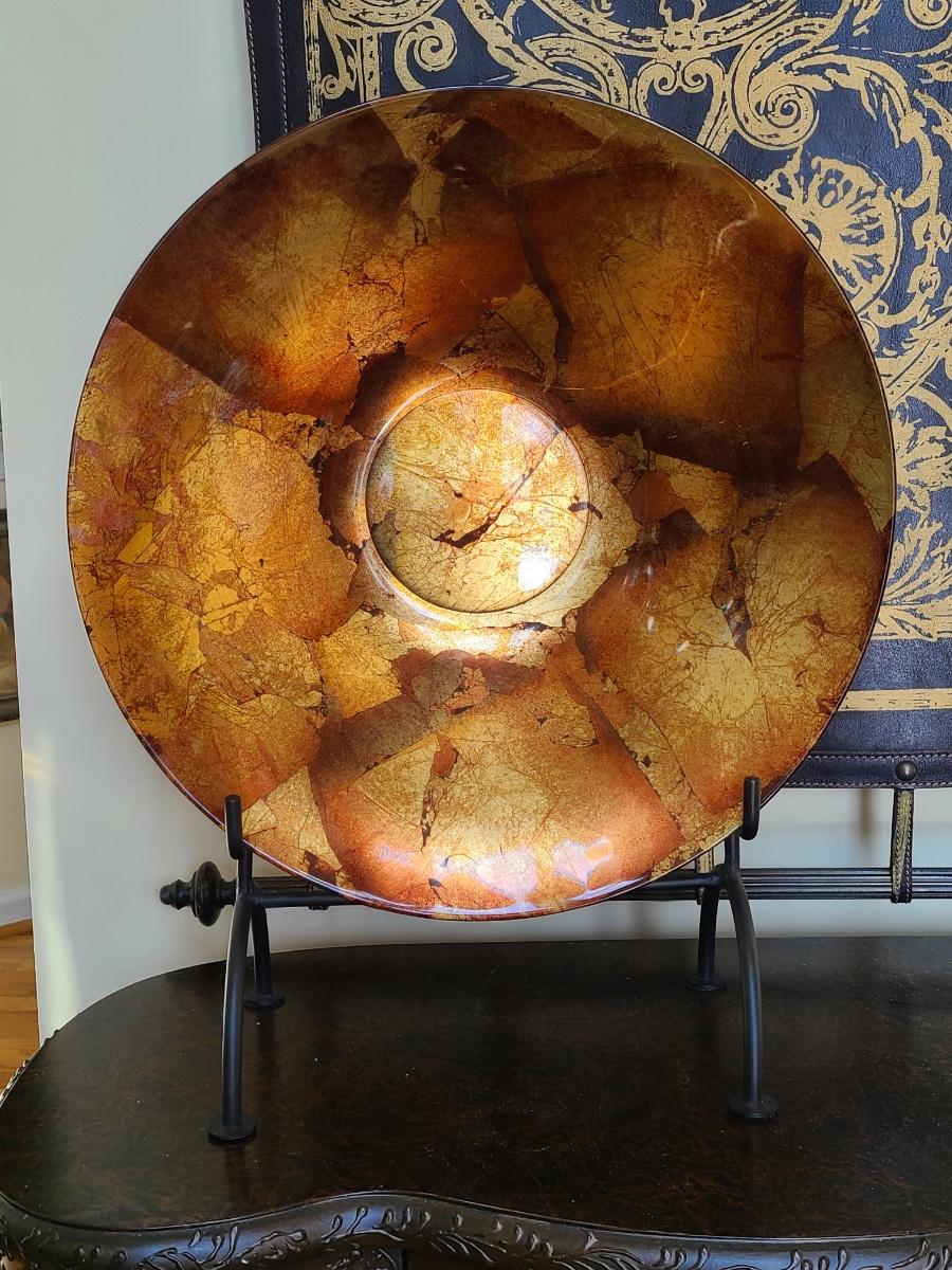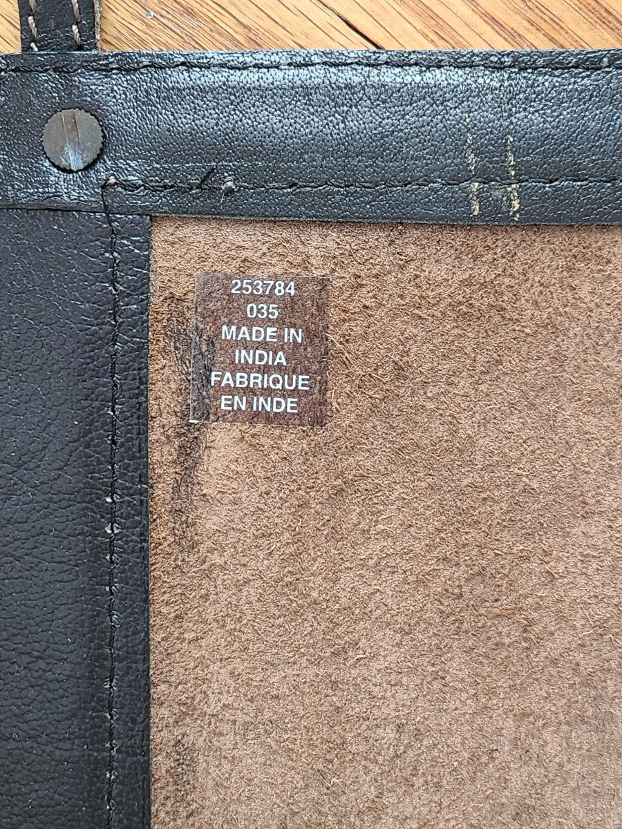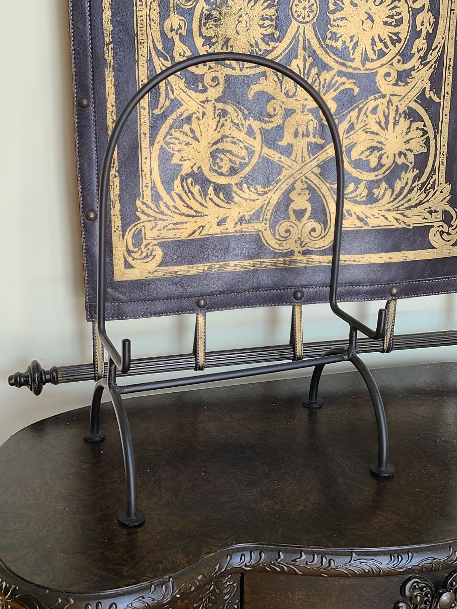 This looks to be a leather painted wall hanging with gold accents. It comes with the brackets. It measures 47 inches long and the brackets at top are 31 inches wide and at the bottom, 26 inches wide. Lovely wall decor for any room in the home. Please see all pictures as they are the best representation of the items. The pictures show condition, measurements if taken, and what is included in the lot. Due to the large amount that we photograph and the time frame, we are not always able to take measurements. All items unless noted, are pre-owned and have been used. If you purchased furniture, you must bring help. We do not allow one person to carry large furniture out on their own. Bring help, tools and a truck for the safety of our client’s homes, and your personal safety. Any damages that result to the property including walls, and floors due to moving of the furniture will be charged to the buyer. Company policy. Thank you.