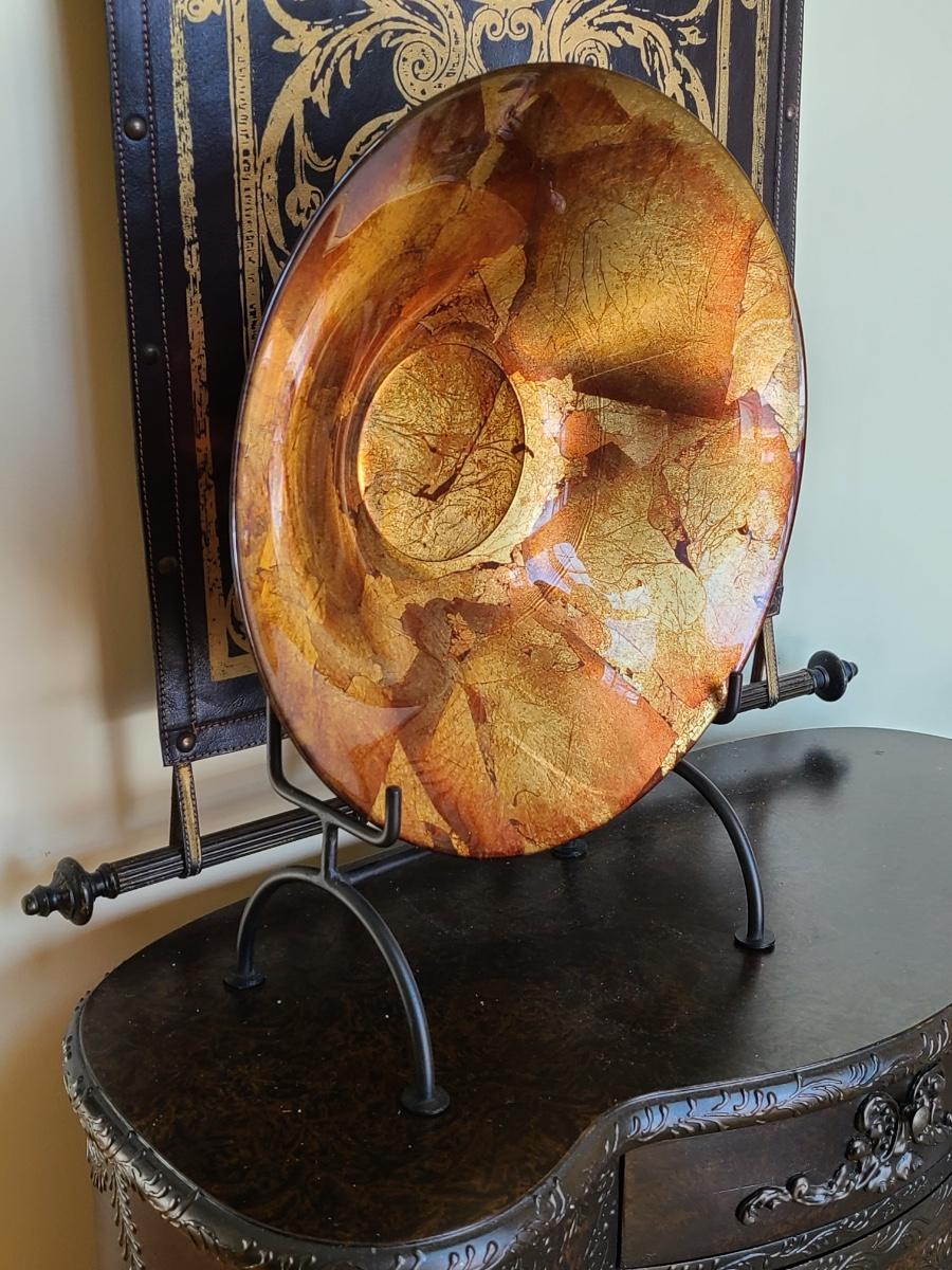 Lot 1: Leather Wall Hanging, Brackets, and Decorative Bowl/ Stand