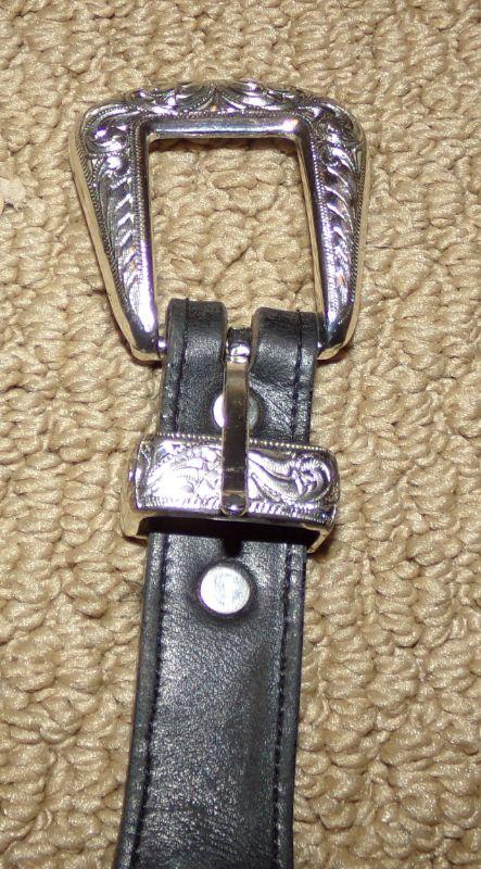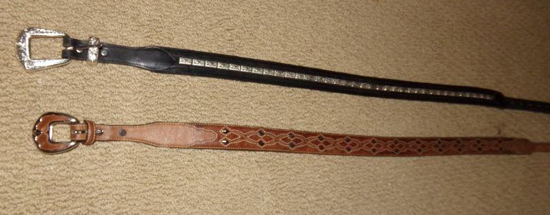 1 BROWN (TONY LAMA) SIZE 36 AND 1 BLACK (NADIM) SIZE 34 LEATHER BELTS WITH EMBELLISHMENTS