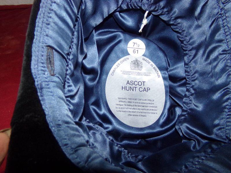 BLUE VELVET WITH SILK BLUE LINING ASCOT HUNT-CAP SIZE 7 ½ (MADE IN BRITAIN)
