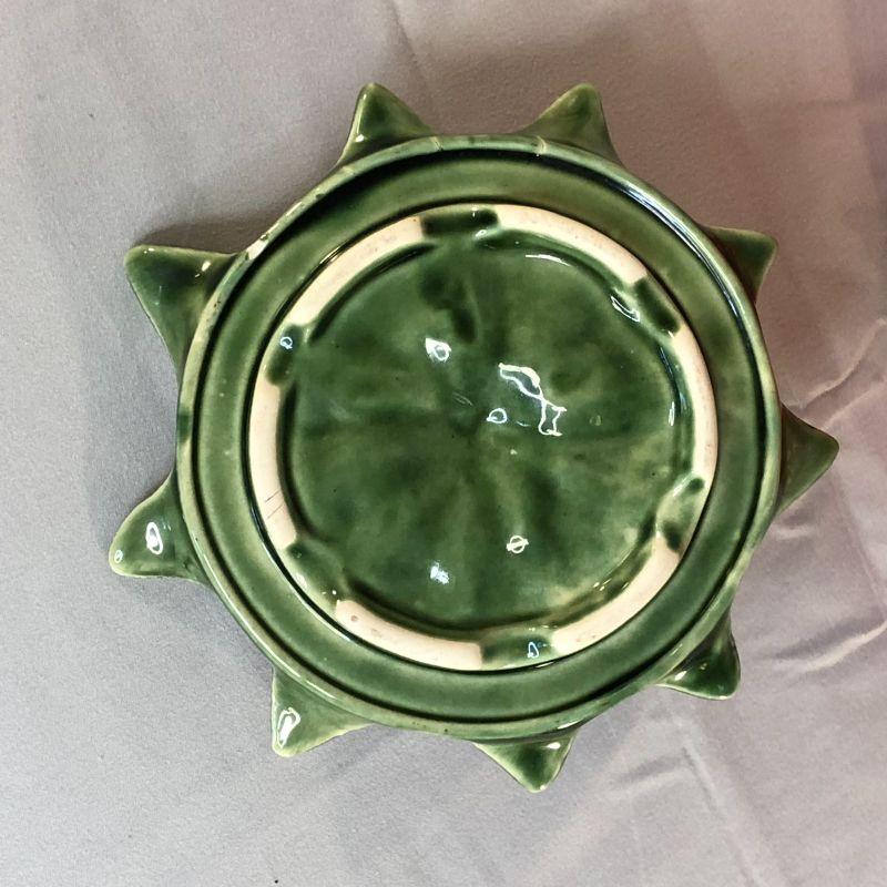 This cookie jar is in excellent condition. I did not find any chips, cracks, or paint loss. There are some tiny pinprick size paint spots on the rim where the lid sits, but that's it. This cookie jar is pristine! It is approximately 10.25" with the lid on.