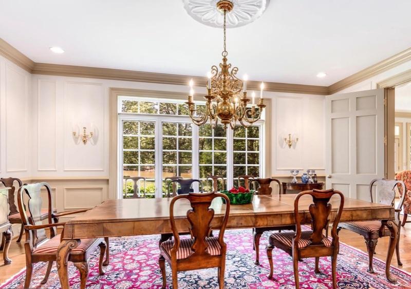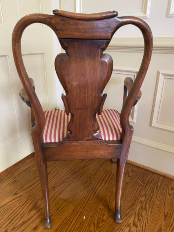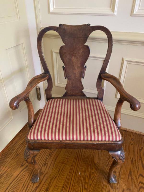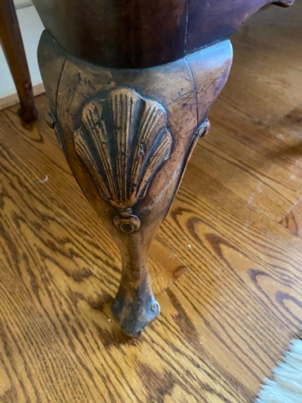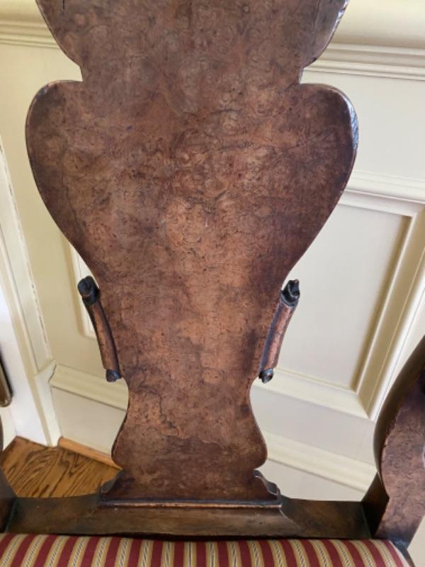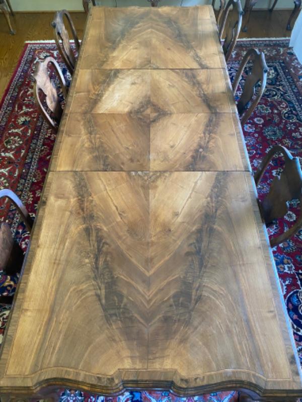 Lot # 1 Antique Queen Anne Flame Veneer Top Dining Room Table with 8 Chairs