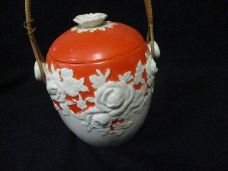 Lot 1 - Vintage Chinoiserie Ceramic Vessel with Wicker Handle