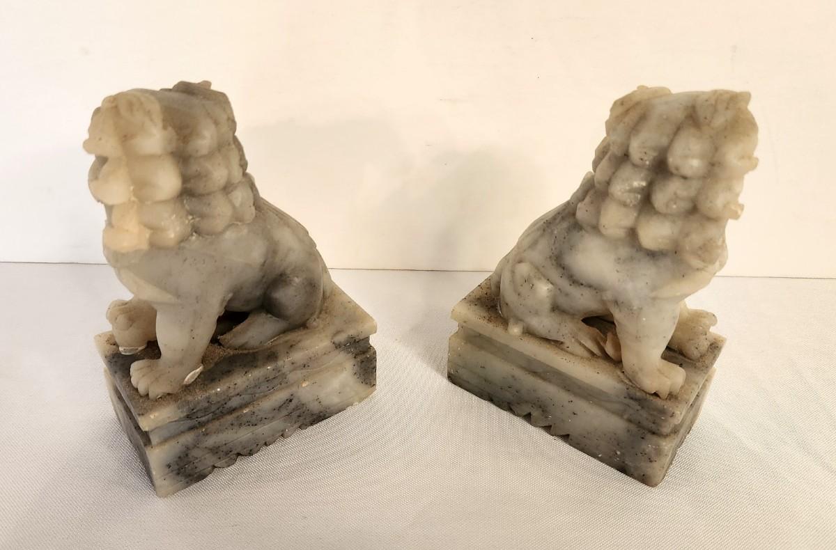 Nice pair of classic carved stone Foo Lions - each 5.5" tall, vintage condition.