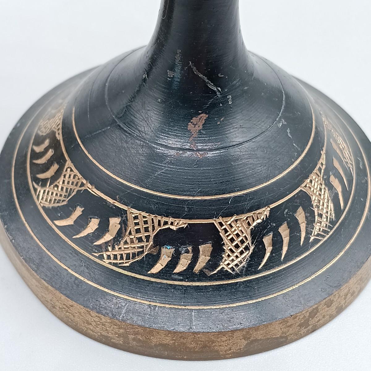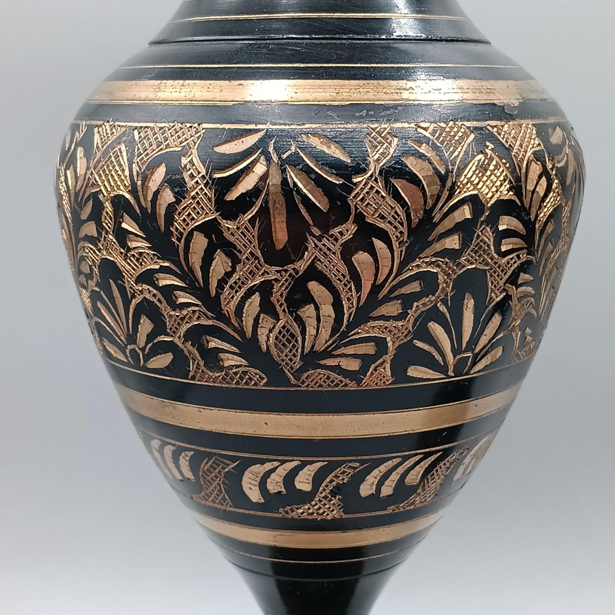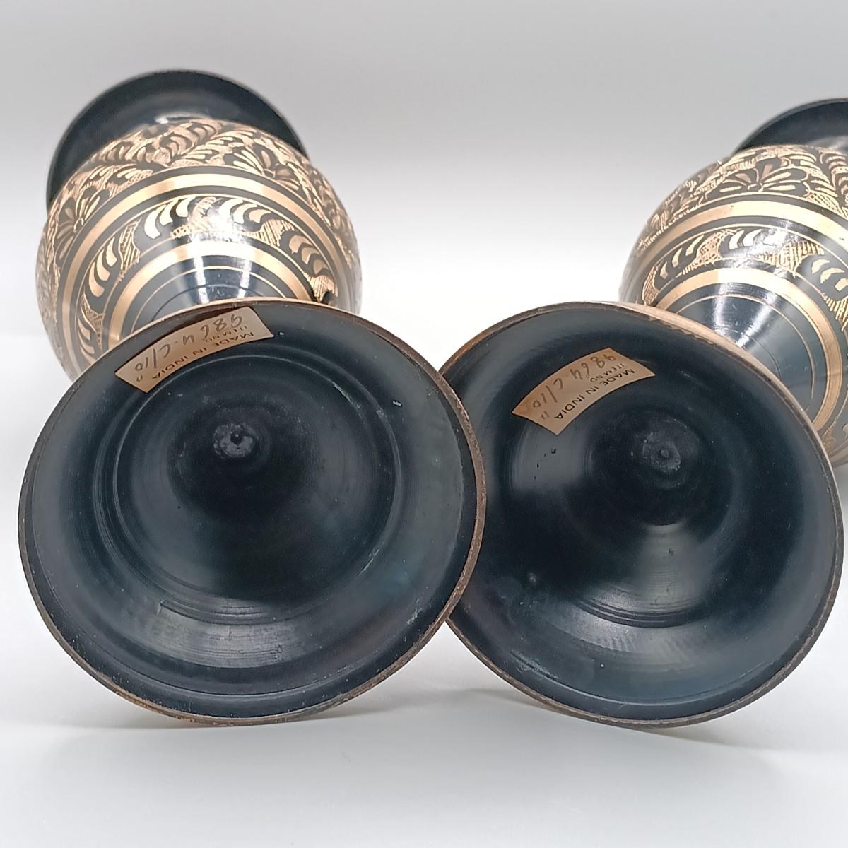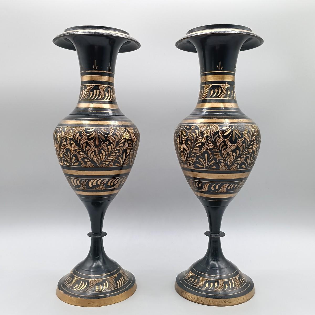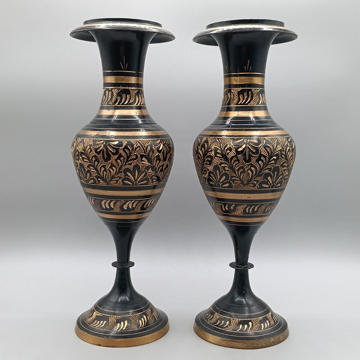 LOT 1: Pair of Vintage Indian Etched Black Brass Vases