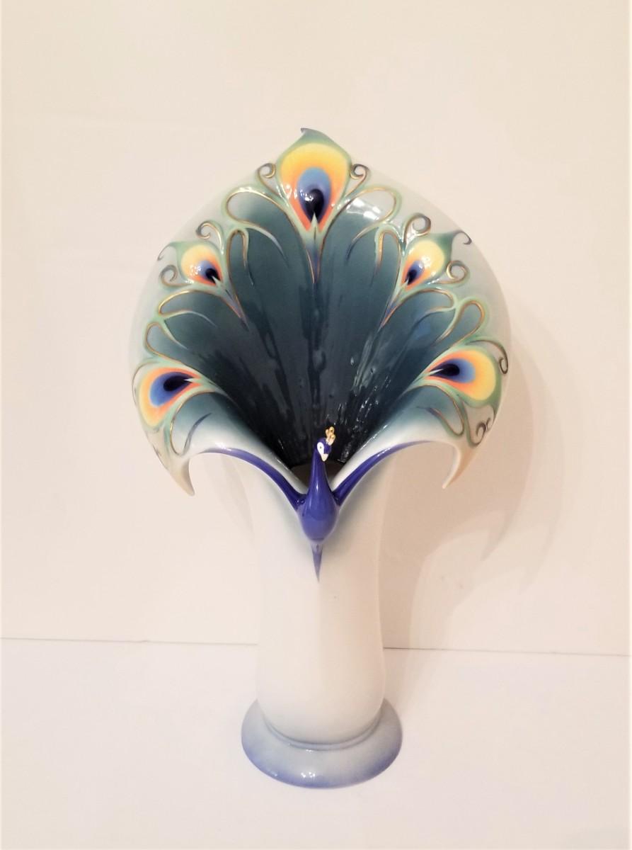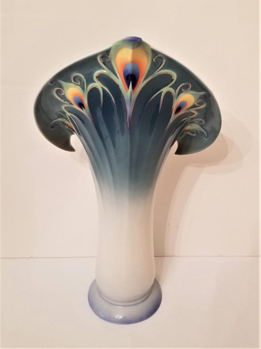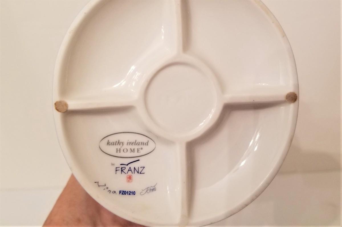 This lovely vase has an "art glass" look. It's contemporary, by Kathy Ireland Home. Great condition. Stands 14" tall at tallest point.