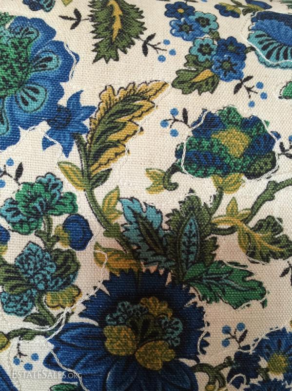 Blue and Green Floral Fabric on front and back. Slight imperfections. See photos for details. Sold as is.