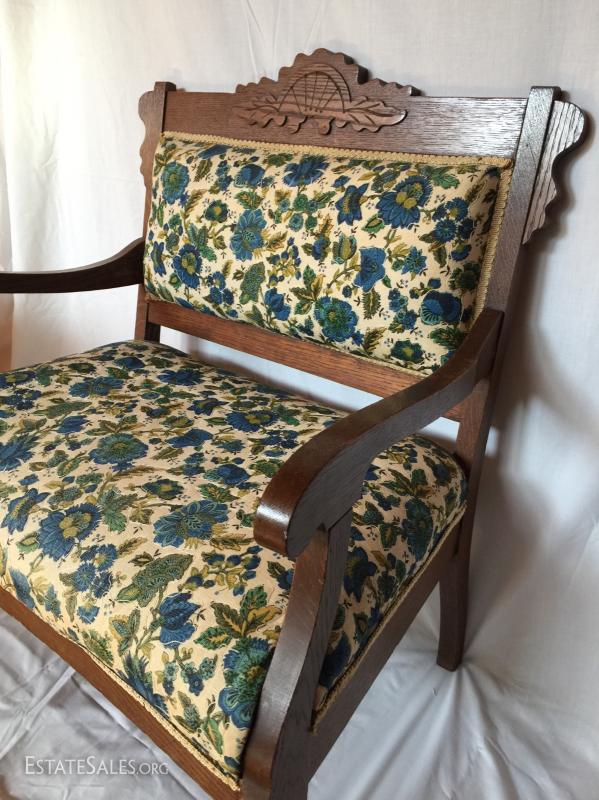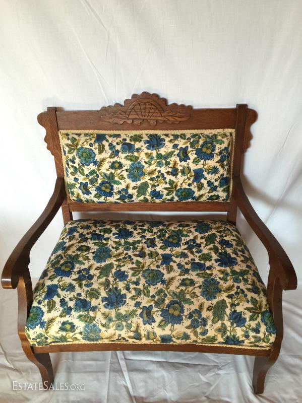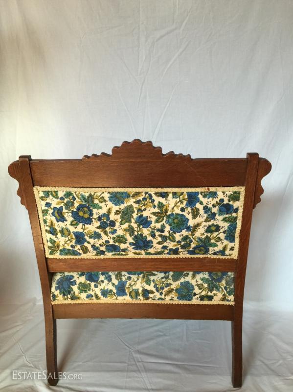 Lot 1 - Petite Wooden Settee with Floral Fabric