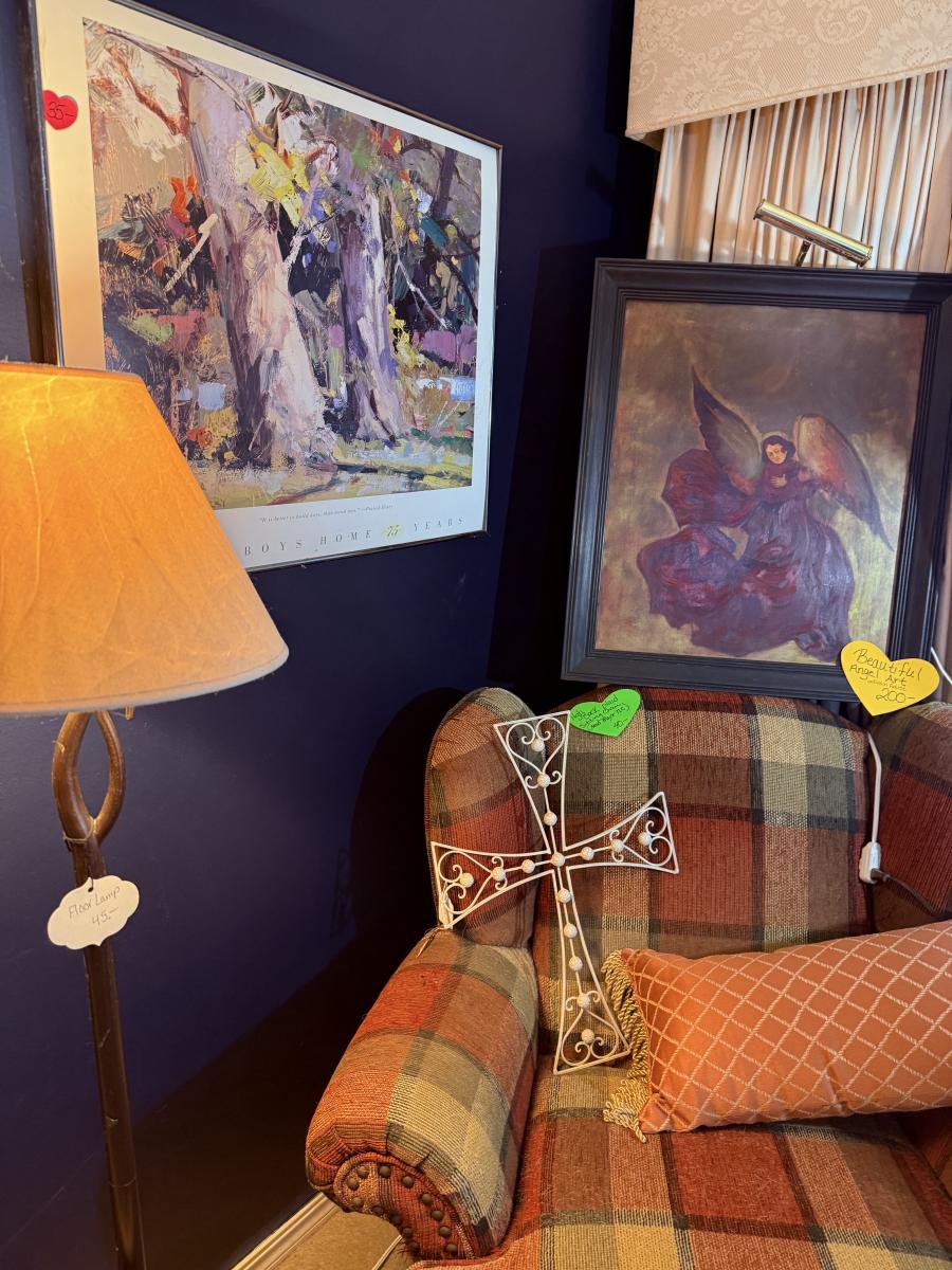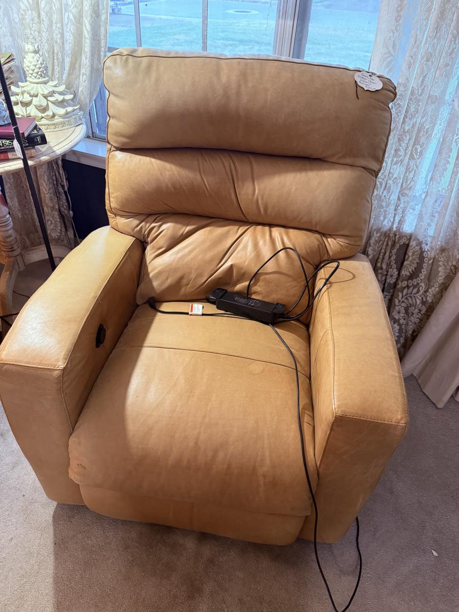 Lot 1: Plaid Chair, Leather Recliner, Art & More